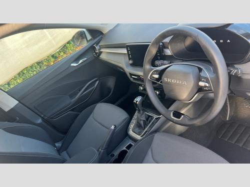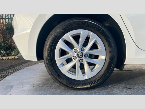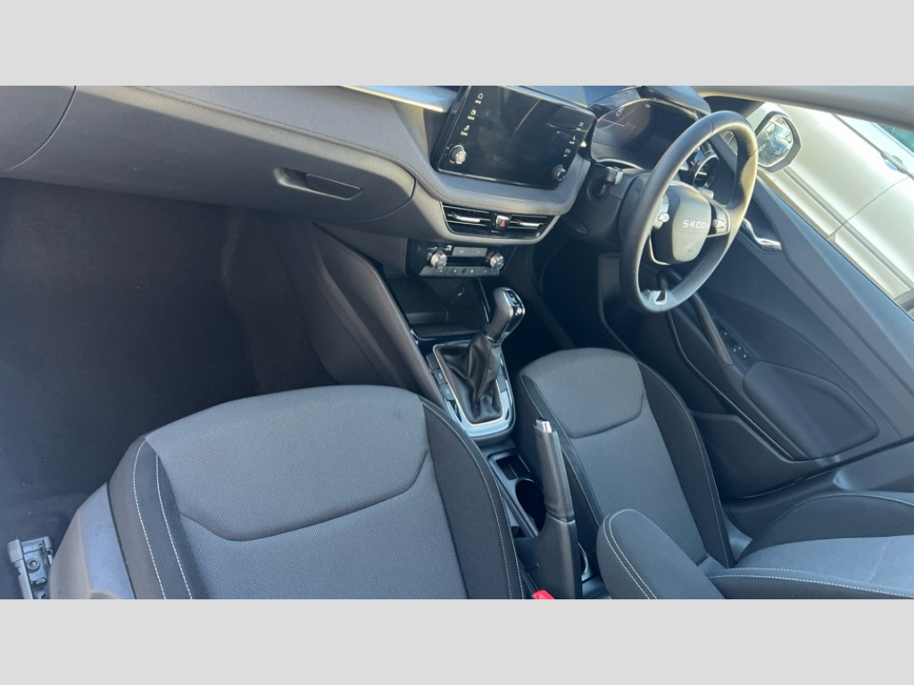 Skoda Fabia 1.0 TSI 116 SE Edition 5dr DSG 8" Digital instrument display, Advanced driver attention and drowsiness monitor, Bluetooth connection, Electromechanical power steering, Exterior temperature gauge, Service interval indicator, Traffic sign recognition, Wireless SmartLink for Apple CarPlay and Android Auto, 6 Speakers (4 in front and 2 in rear), 8.25" Skoda infotainment touchscreen display, Auxiliary socket for external MP3 player, DAB digital radio reception, Auto dimming rear view mirror, Body colour door mirrors, Body coloured bumpers, Door mirror integrated indicators, Front and rear electric windows, Front window wiper intermittent control, Headlight range control - Automatic, Ice scraper in fuel cap, LED 3rd brake light, LED daytime running lights with coming and leaving home feature, LED rear lights, Rear LED fog light, Rear side wing doors, Rear window wiper with washing nozzles, Roof mounted spoiler, SKODA tailgate lettering in chrome, Unique dark chrome design logo on alloy wheels, 2 reading lights in front and 2 reading lights in rear, 3 rear headrests, Backrest split and folding, Central console with removable cup holder and storage box, Chrome handbrake release button, Dual zone air conditioning with climatronic electronic control, Fabric upholstery, Front centre armrest, Gearshift knob/handle in leather, Grain satin black interior door handles, Hand brake lever handle in leather, Height adjustable front headrests, Height adjustable front seats, Height adjustable steering wheel, ISOFIX and TopTether anchorage points to the outer rear seats, ISOFIX and TopTether on the front passenger seat, Luggage compartment lighting, Manually adjustable lumbar support in front seats, Pollen filter, Rear seat bench unsplit, Single front passenger seat, Skoda lettering on steering wheel, Storm grey headlining, Sun visors with mirror and airbag label on passenger side, Textile floor mats, Ticket holder, Umbrella in drivers door, 3-point height adjustable front seats belts with pretensioner and force limiter, Automatic warning lights in case of crash, Driver and passengers airbag with switch off function, e-Call+, ESC including ABS, MSR, ASR, EDS, HBA and XDS, Front and rear seat belt warning, FRONT ASSIST (AEB City and AEB Inter Urban), Front side airbags, Head airbags, Hill hold control, One tone horn, Pedestrian protection, Three rear 3-points safety seat belts with pretensioner and force limiter including stop function for outer rear seat belts, Tyre pressure monitoring system, Anti-theft alarm system including immobiliser, interior monitoring, backup horn, and towing protection, Central locking with radio remote control, interior controls, SAFE function and 2 foldable keys, Black painted air vents, Grain satin black central console cover, Metallic grey upper decorative trim, Satin black door and side trim panel in front, Textile Kota grey lower decorative inserts, Anti-theft wheel bolts protection, Super-low rolling resistance tyres