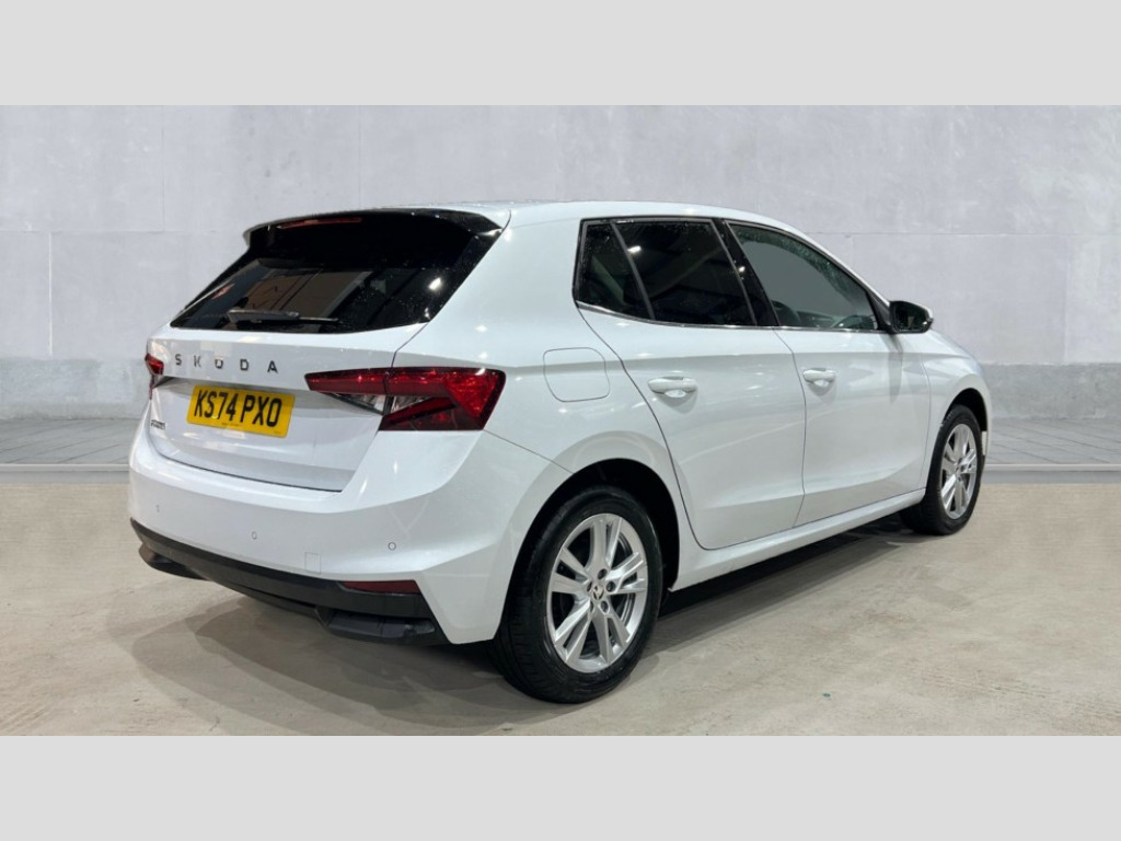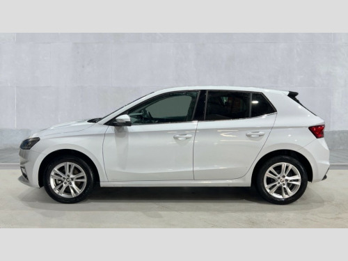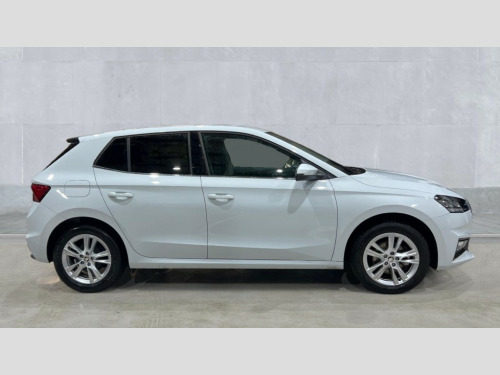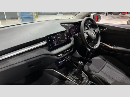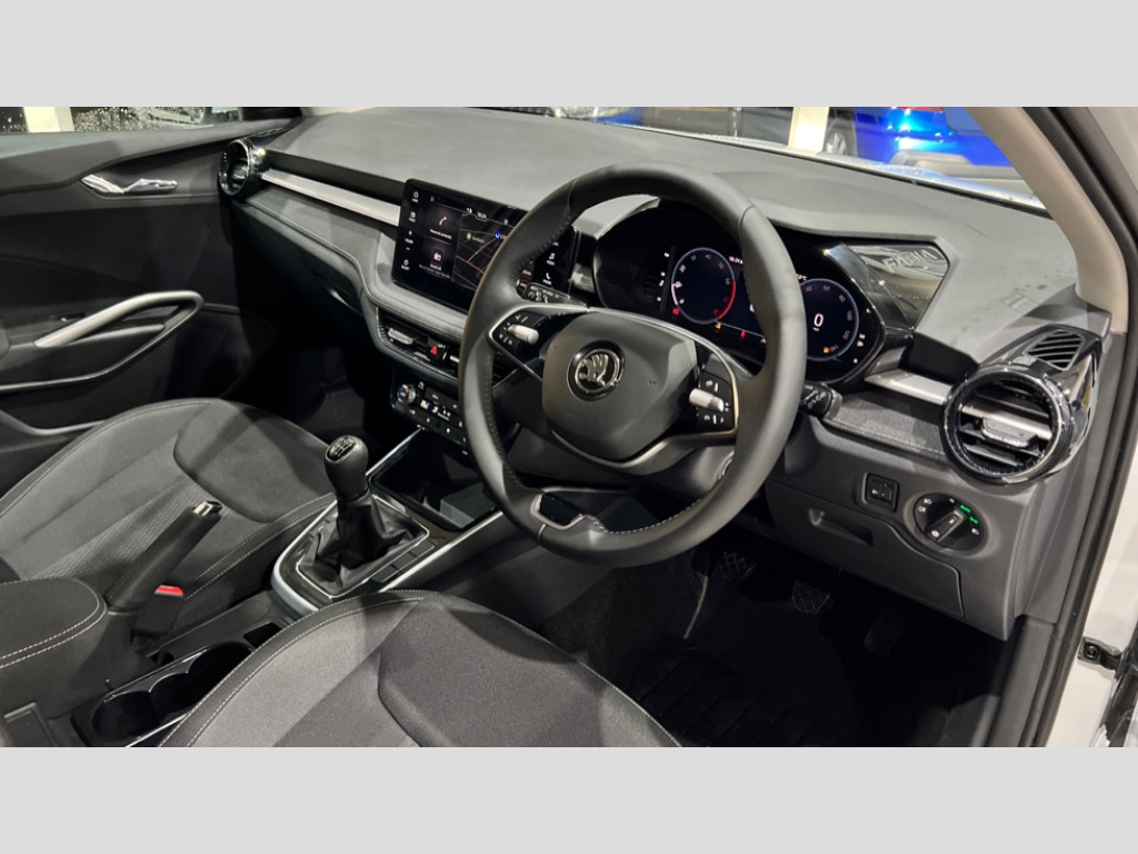Skoda Fabia 1.0 TSI 116 SE L 5dr Advanced driver attention and drowsiness monitor, Bluetooth connection, Electromechanical power steering, Exterior temperature gauge, Service interval indicator, Traffic sign recognition, Virtual cockpit with 10.25" colour display, Wireless SmartLink for Apple CarPlay and Android Auto, 6 Speakers (4 in front and 2 in rear), 9.2" colour display skoda navigation system with voice control and web radio, Auxiliary socket for external MP3 player, DAB digital radio reception, Auto dimming rear view mirror, Body colour door mirrors, Body coloured bumpers, Chrome window surround, Door mirror integrated indicators, Front and rear electric windows, Front window wiper intermittent control, Headlight range control - Automatic, Ice scraper in fuel cap, LED daytime running lights with coming and leaving home feature, LED rear lights, Privacy glass, Rear LED fog light, Rear side wing doors, Rear window wiper with washing nozzles, Roof mounted spoiler, SKODA tailgate lettering in chrome, Third brake light, 2 reading lights in front and 2 reading lights in rear, 3 rear headrests, Backrest split and folding, Central console with removable cup holder and storage box, Chrome handbrake release button, Comfort seats, Door sills with fabia badging, Dual zone air conditioning with climatronic electronic control, Fabric upholstery, Front centre armrest, Gearshift knob/handle in leather, Hand brake lever handle in leather, Height adjustable front headrests, Height adjustable front seats, Height adjustable steering wheel, ISOFIX and TopTether anchorage points to the outer rear seats, ISOFIX and TopTether on the front passenger seat, Luggage compartment lighting, Manually adjustable lumbar support in front seats, Metallic grey interior door handles, Pollen filter, Rear seat bench unsplit, Single front passenger seat, Storm grey headlining, Sun visors with mirror and airbag label on passenger side, Textile floor mats, Ticket holder, Umbrella in drivers door, 3-point height adjustable front seats belts with pretensioner and force limiter, Automatic warning lights in case of crash, Driver and passengers airbag with switch off function, e-Call+, ESC including ABS, MSR, ASR, EDS, HBA and XDS, Front and rear seat belt warning, FRONT ASSIST (AEB City and AEB Inter Urban), Front side airbags, Head airbags, One tone horn, Pedestrian protection, Three rear 3-points safety seat belts with pretensioner and force limiter including stop function for outer rear seat belts, Tyre pressure monitoring system, Anti-theft alarm system including immobiliser, interior monitoring, backup horn, and towing protection, Central locking with radio remote control, interior controls, SAFE function and 2 foldable keys, Chrome edged air vents, Metallic grey central console cover, Metallic grey upper decorative trim, Satin black door and side trim panel in front, Textile microsuede grey lower decorative trim with art grey stitching, Anti-theft wheel bolts protection, Super-low rolling resistance tyres