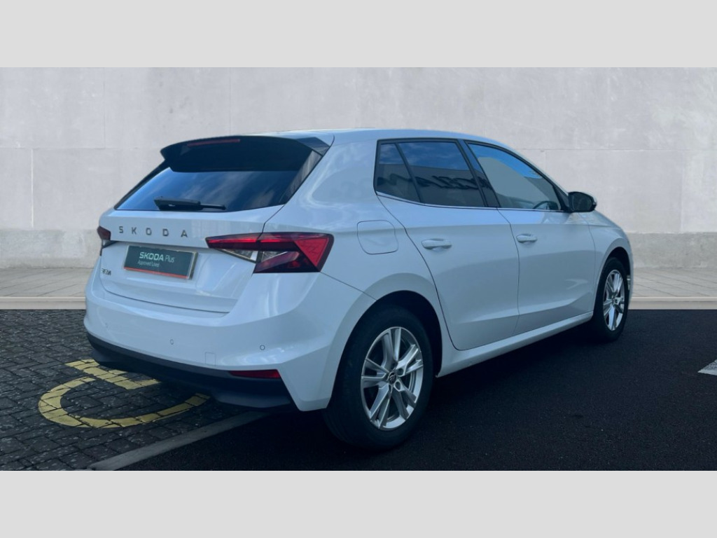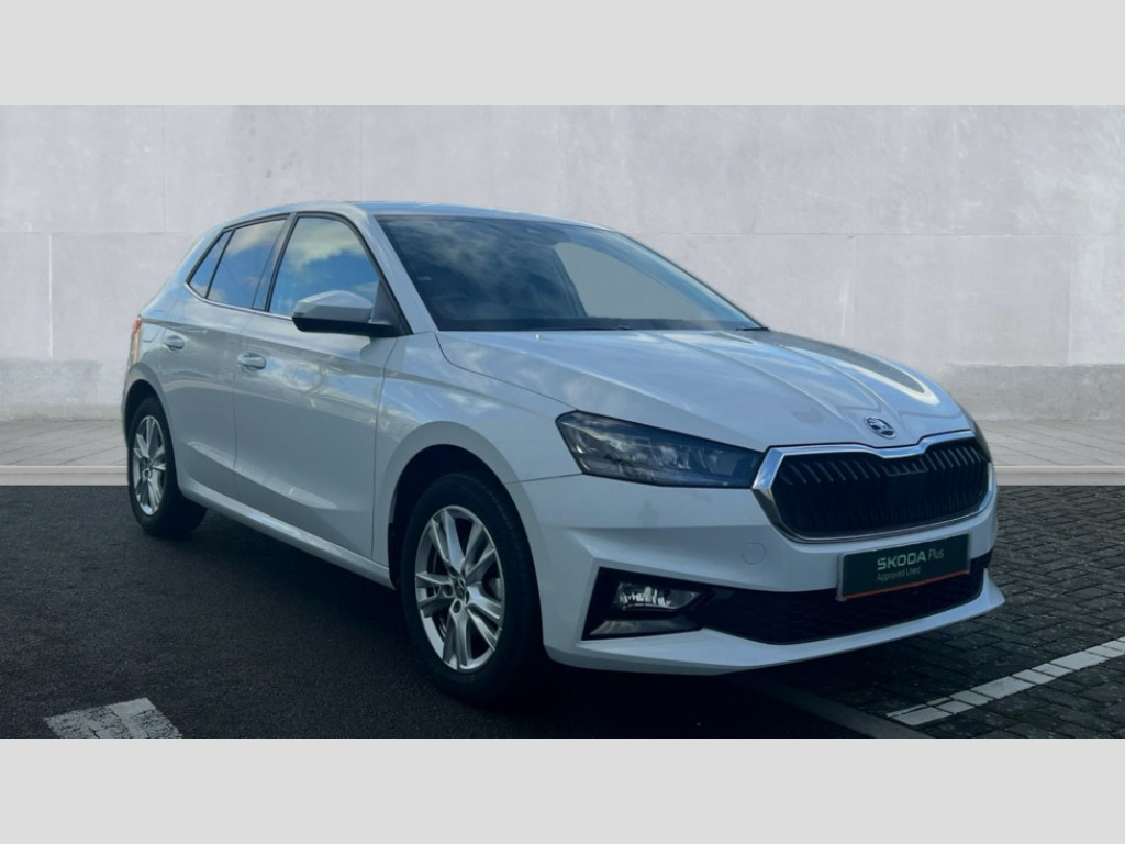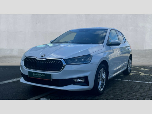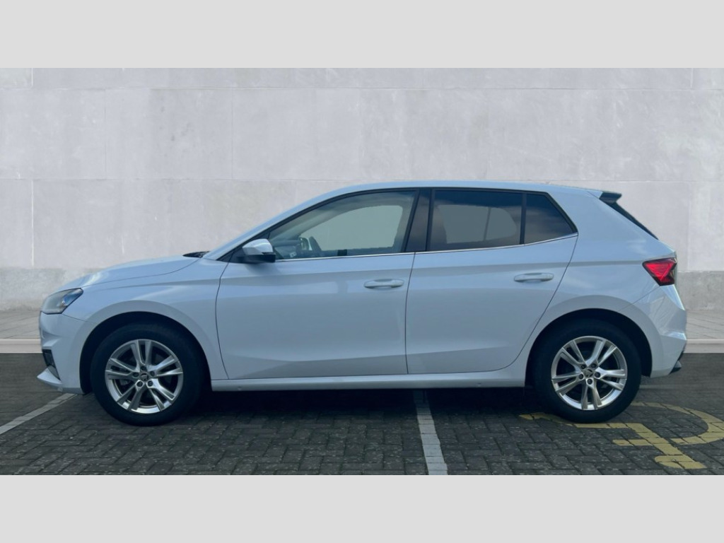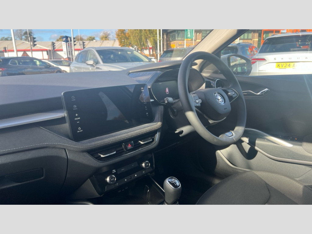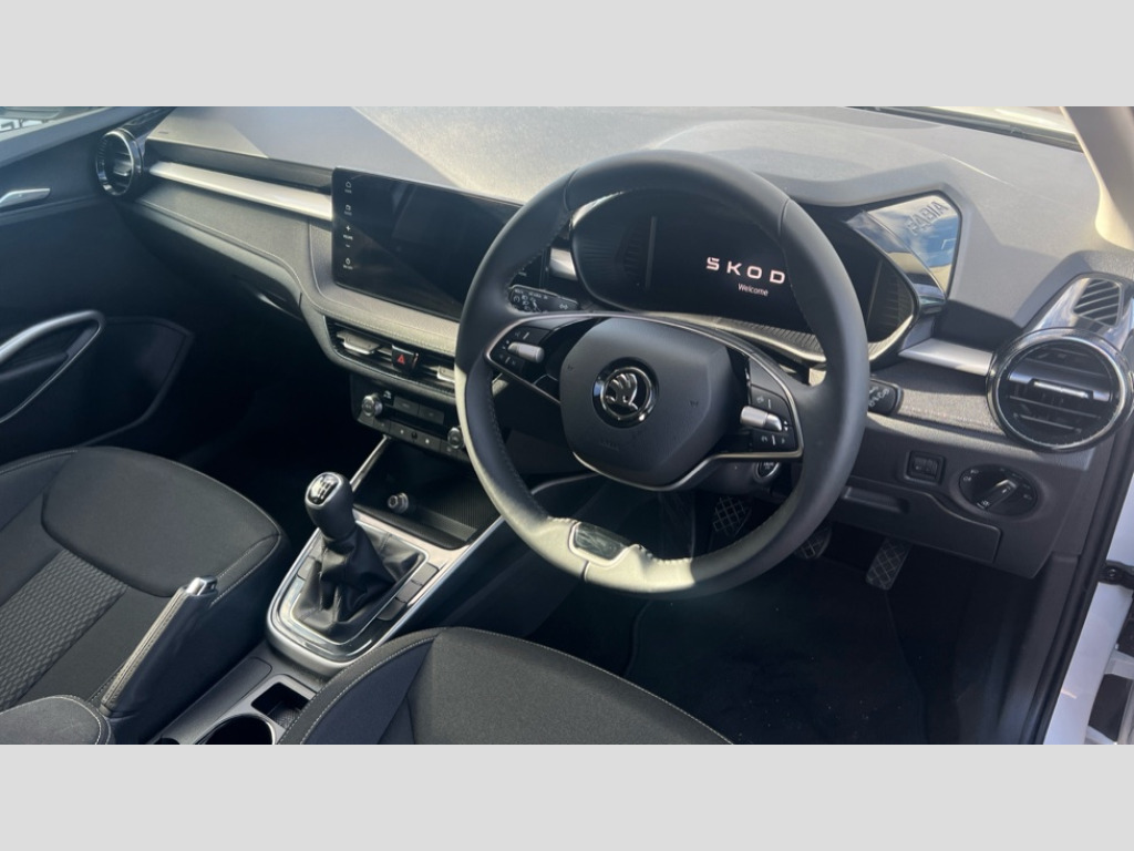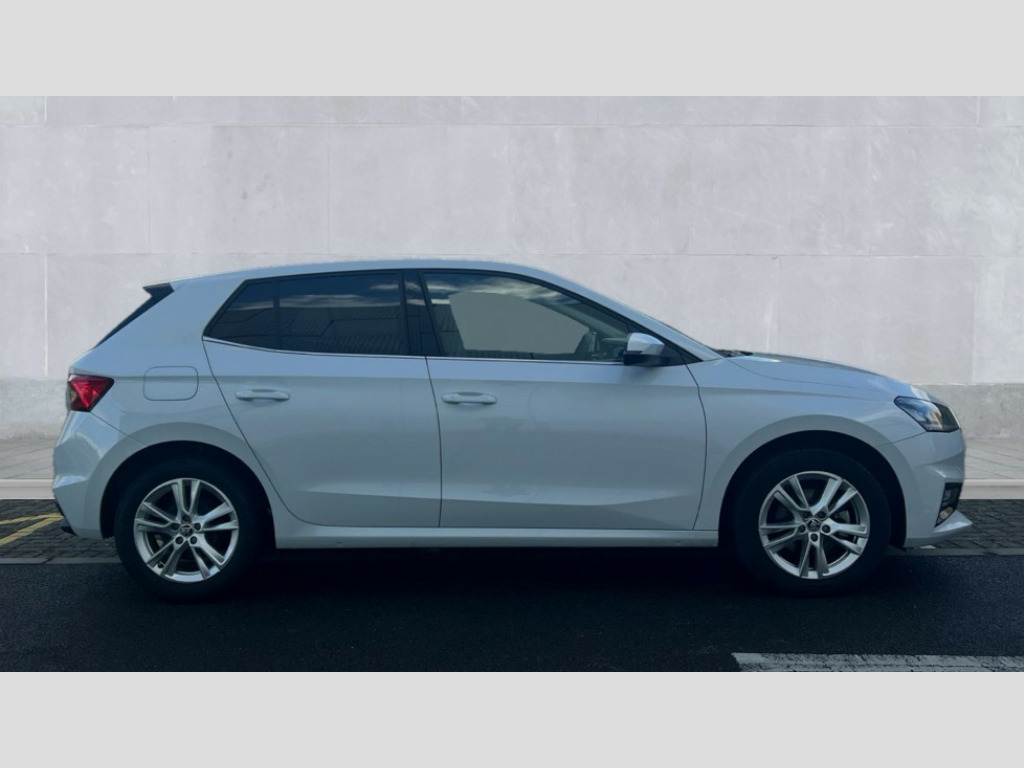 Skoda Fabia 1.0 TSI 116 SE L 5dr Advanced driver attention and drowsiness monitor, Bluetooth connection, Electromechanical power steering, Exterior temperature gauge, Service interval indicator, Traffic sign recognition, Virtual cockpit with 10.25" colour display, Wireless SmartLink for Apple CarPlay and Android Auto, 6 Speakers (4 in front and 2 in rear), 9.2" colour display skoda navigation system with voice control and web radio, Auxiliary socket for external MP3 player, DAB digital radio reception, Auto dimming rear view mirror, Body colour door mirrors, Body coloured bumpers, Chrome window surround, Door mirror integrated indicators, Front and rear electric windows, Front window wiper intermittent control, Headlight range control - Automatic, Ice scraper in fuel cap, LED daytime running lights with coming and leaving home feature, LED rear lights, Privacy glass, Rear LED fog light, Rear side wing doors, Rear window wiper with washing nozzles, Roof mounted spoiler, SKODA tailgate lettering in chrome, Third brake light, 2 reading lights in front and 2 reading lights in rear, 3 rear headrests, Backrest split and folding, Central console with removable cup holder and storage box, Chrome handbrake release button, Comfort seats, Door sills with fabia badging, Dual zone air conditioning with climatronic electronic control, Fabric upholstery, Front centre armrest, Gearshift knob/handle in leather, Hand brake lever handle in leather, Height adjustable front headrests, Height adjustable front seats, Height adjustable steering wheel, ISOFIX and TopTether anchorage points to the outer rear seats, ISOFIX and TopTether on the front passenger seat, Luggage compartment lighting, Manually adjustable lumbar support in front seats, Metallic grey interior door handles, Pollen filter, Rear seat bench unsplit, Single front passenger seat, Storm grey headlining, Sun visors with mirror and airbag label on passenger side, Textile floor mats, Ticket holder, Umbrella in drivers door, 3-point height adjustable front seats belts with pretensioner and force limiter, Automatic warning lights in case of crash, Driver and passengers airbag with switch off function, e-Call+, ESC including ABS, MSR, ASR, EDS, HBA and XDS, Front and rear seat belt warning, FRONT ASSIST (AEB City and AEB Inter Urban), Front side airbags, Head airbags, One tone horn, Pedestrian protection, Three rear 3-points safety seat belts with pretensioner and force limiter including stop function for outer rear seat belts, Tyre pressure monitoring system, Anti-theft alarm system including immobiliser, interior monitoring, backup horn, and towing protection, Central locking with radio remote control, interior controls, SAFE function and 2 foldable keys, Chrome edged air vents, Metallic grey central console cover, Metallic grey upper decorative trim, Satin black door and side trim panel in front, Textile microsuede grey lower decorative trim with art grey stitching, Anti-theft wheel bolts protection, Super-low rolling resistance tyres