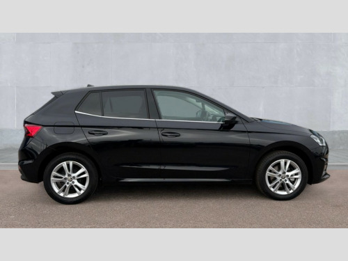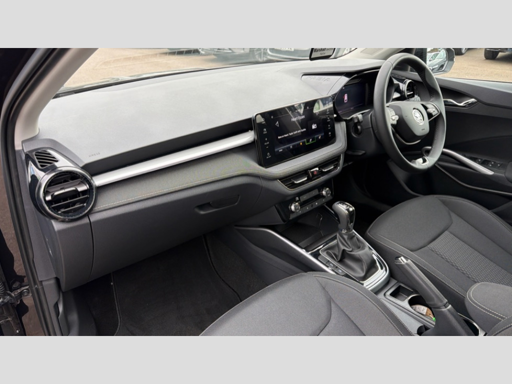 Skoda Fabia 1.0 TSI 116 SE L 5dr DSG Advanced driver attention and drowsiness monitor, Bluetooth connection, Electromechanical power steering, Exterior temperature gauge, Service interval indicator, Traffic sign recognition, Virtual cockpit with 10.25" colour display, Wireless SmartLink for Apple CarPlay and Android Auto, 6 Speakers (4 in front and 2 in rear), 9.2" colour display skoda navigation system with voice control and web radio, Auxiliary socket for external MP3 player, DAB digital radio reception, Auto dimming rear view mirror, Body colour door mirrors, Body coloured bumpers, Chrome window surround, Door mirror integrated indicators, Front and rear electric windows, Front window wiper intermittent control, Headlight range control - Automatic, Ice scraper in fuel cap, LED daytime running lights with coming and leaving home feature, LED rear lights, Privacy glass, Rear LED fog light, Rear side wing doors, Rear window wiper with washing nozzles, Roof mounted spoiler, SKODA tailgate lettering in chrome, Third brake light, 2 reading lights in front and 2 reading lights in rear, 3 rear headrests, Backrest split and folding, Central console with removable cup holder and storage box, Chrome handbrake release button, Comfort seats, Door sills with fabia badging, Dual zone air conditioning with climatronic electronic control, Fabric upholstery, Front centre armrest, Gearshift knob/handle in leather, Hand brake lever handle in leather, Height adjustable front headrests, Height adjustable front seats, Height adjustable steering wheel, ISOFIX and TopTether anchorage points to the outer rear seats, ISOFIX and TopTether on the front passenger seat, Luggage compartment lighting, Manually adjustable lumbar support in front seats, Metallic grey interior door handles, Pollen filter, Rear seat bench unsplit, Single front passenger seat, Storm grey headlining, Sun visors with mirror and airbag label on passenger side, Textile floor mats, Ticket holder, Umbrella in drivers door, 3-point height adjustable front seats belts with pretensioner and force limiter, Automatic warning lights in case of crash, Driver and passengers airbag with switch off function, e-Call+, ESC including ABS, MSR, ASR, EDS, HBA and XDS, Front and rear seat belt warning, FRONT ASSIST (AEB City and AEB Inter Urban), Front side airbags, Head airbags, Hill hold control, One tone horn, Pedestrian protection, Three rear 3-points safety seat belts with pretensioner and force limiter including stop function for outer rear seat belts, Tyre pressure monitoring system, Anti-theft alarm system including immobiliser, interior monitoring, backup horn, and towing protection, Central locking with radio remote control, interior controls, SAFE function and 2 foldable keys, Chrome edged air vents, Metallic grey central console cover, Metallic grey upper decorative trim, Satin black door and side trim panel in front, Textile microsuede grey lower decorative trim with art grey stitching, Anti-theft wheel bolts protection, Super-low rolling resistance tyres