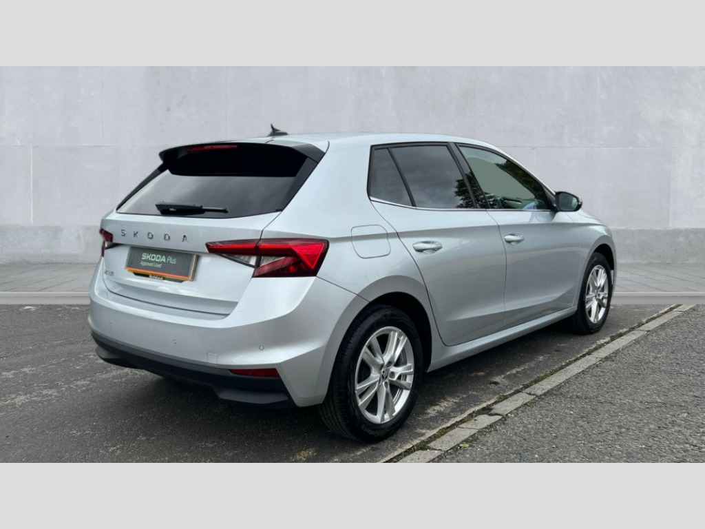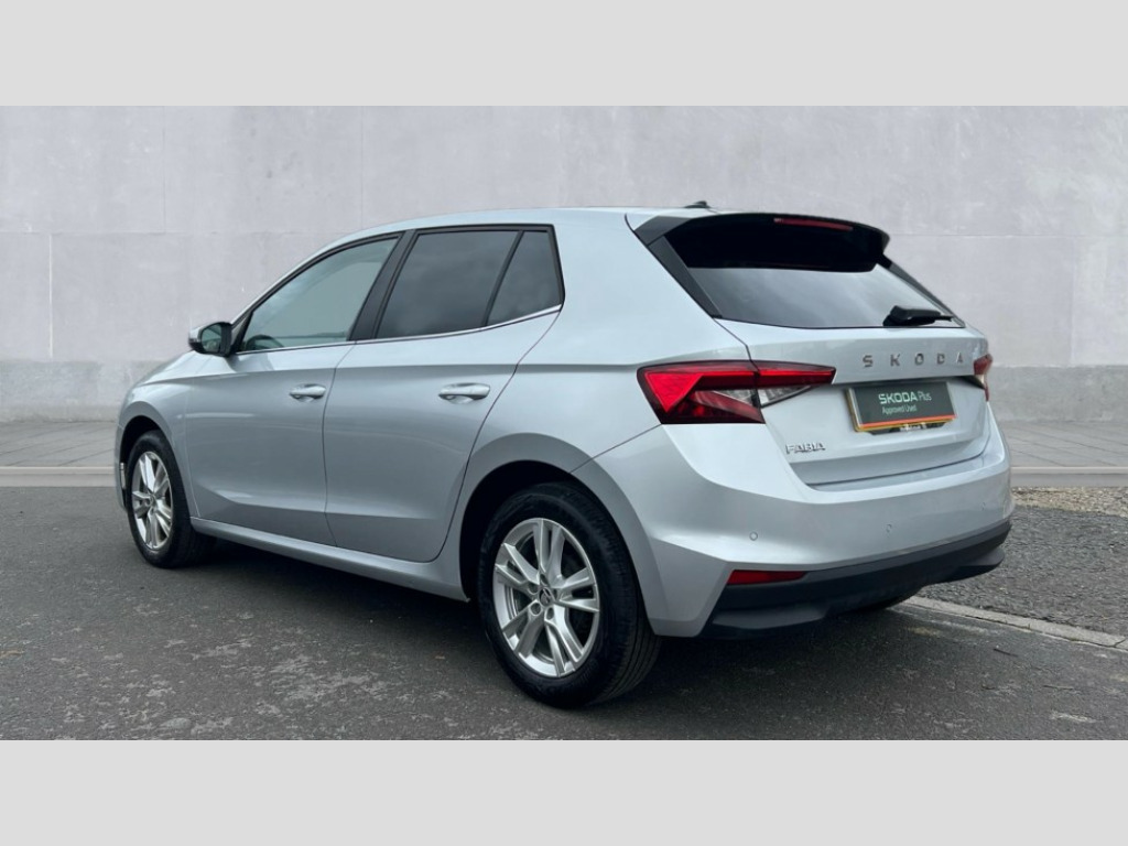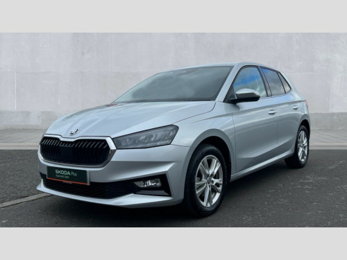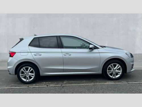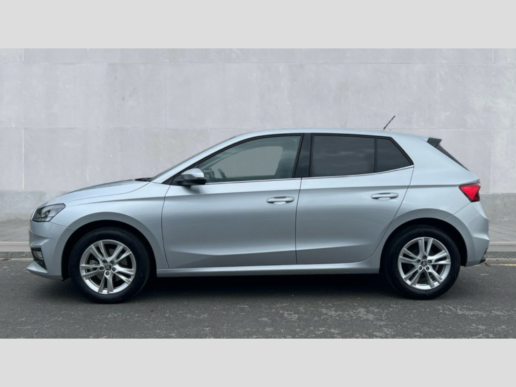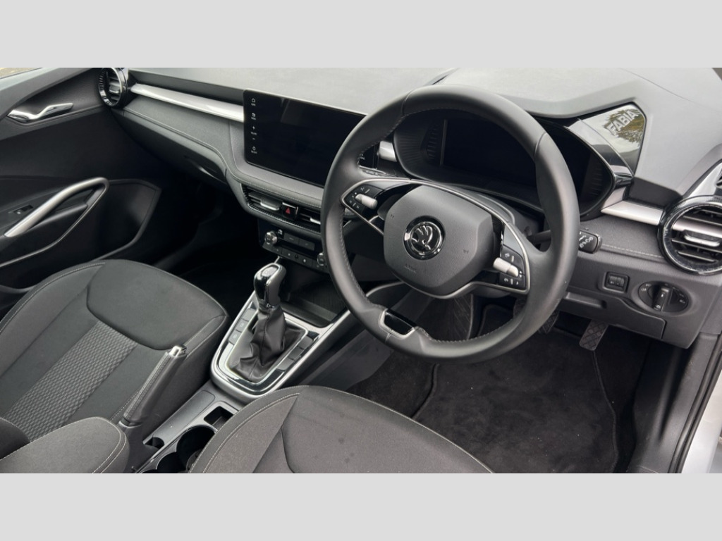 Skoda Fabia 1.0 TSI 116 SE L 5dr DSG Advanced driver attention and drowsiness monitor, Bluetooth connection, Electromechanical power steering, Exterior temperature gauge, Service interval indicator, Traffic sign recognition, Virtual cockpit with 10.25" colour display, Wireless SmartLink for Apple CarPlay and Android Auto, 6 Speakers (4 in front and 2 in rear), 9.2" colour display skoda navigation system with voice control and web radio, Auxiliary socket for external MP3 player, DAB digital radio reception, Auto dimming rear view mirror, Body colour door mirrors, Body coloured bumpers, Chrome window surround, Door mirror integrated indicators, Front and rear electric windows, Front window wiper intermittent control, Headlight range control - Automatic, Ice scraper in fuel cap, LED daytime running lights with coming and leaving home feature, LED rear lights, Privacy glass, Rear LED fog light, Rear side wing doors, Rear window wiper with washing nozzles, Roof mounted spoiler, SKODA tailgate lettering in chrome, Third brake light, 2 reading lights in front and 2 reading lights in rear, 3 rear headrests, Backrest split and folding, Central console with removable cup holder and storage box, Chrome handbrake release button, Comfort seats, Door sills with fabia badging, Dual zone air conditioning with climatronic electronic control, Fabric upholstery, Front centre armrest, Gearshift knob/handle in leather, Hand brake lever handle in leather, Height adjustable front headrests, Height adjustable front seats, Height adjustable steering wheel, ISOFIX and TopTether anchorage points to the outer rear seats, ISOFIX and TopTether on the front passenger seat, Luggage compartment lighting, Manually adjustable lumbar support in front seats, Metallic grey interior door handles, Pollen filter, Rear seat bench unsplit, Single front passenger seat, Storm grey headlining, Sun visors with mirror and airbag label on passenger side, Textile floor mats, Ticket holder, Umbrella in drivers door, 3-point height adjustable front seats belts with pretensioner and force limiter, Automatic warning lights in case of crash, Driver and passengers airbag with switch off function, e-Call+, ESC including ABS, MSR, ASR, EDS, HBA and XDS, Front and rear seat belt warning, FRONT ASSIST (AEB City and AEB Inter Urban), Front side airbags, Head airbags, Hill hold control, One tone horn, Pedestrian protection, Three rear 3-points safety seat belts with pretensioner and force limiter including stop function for outer rear seat belts, Tyre pressure monitoring system, Anti-theft alarm system including immobiliser, interior monitoring, backup horn, and towing protection, Central locking with radio remote control, interior controls, SAFE function and 2 foldable keys, Chrome edged air vents, Metallic grey central console cover, Metallic grey upper decorative trim, Satin black door and side trim panel in front, Textile microsuede grey lower decorative trim with art grey stitching, Anti-theft wheel bolts protection, Super-low rolling resistance tyres