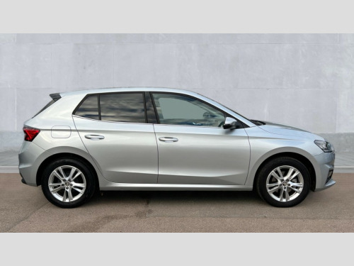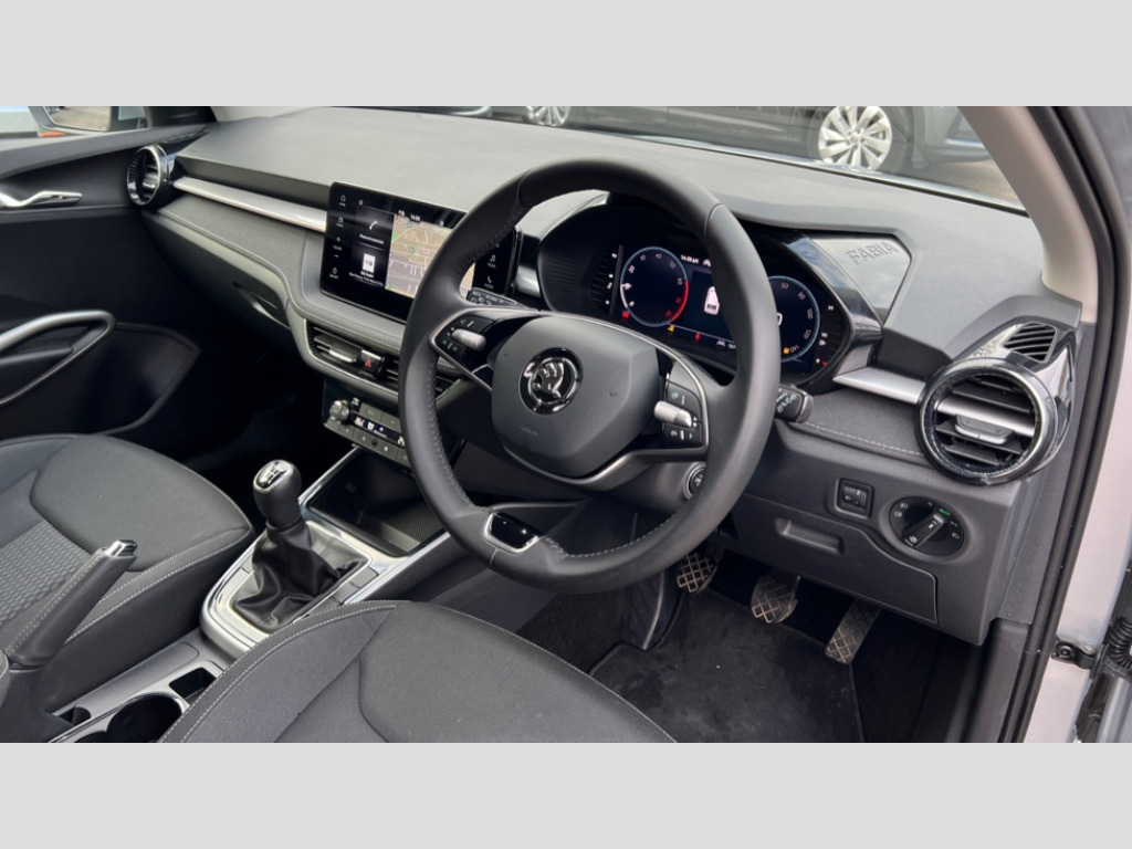 Skoda Fabia 1.0 TSI 116 SE L Edition 5dr Advanced driver attention and drowsiness monitor, Bluetooth connection, Electromechanical power steering, Exterior temperature gauge, Service interval indicator, Traffic sign recognition, Virtual cockpit with 10.25" colour display, Wireless SmartLink for Apple CarPlay and Android Auto, 6 Speakers (4 in front and 2 in rear), 9.2" colour display skoda navigation system with voice control and web radio, Auxiliary socket for external MP3 player, DAB digital radio reception, Auto dimming rear view mirror, Body colour door mirrors, Body coloured bumpers, Chrome window surround, Door mirror integrated indicators, Front and rear electric windows, Front window wiper intermittent control, Headlight range control - Automatic, Ice scraper in fuel cap, LED 3rd brake light, LED daytime running lights with coming and leaving home feature, LED rear lights, Privacy glass, Rear LED fog light, Rear side wing doors, Rear window wiper with washing nozzles, Roof mounted spoiler, SKODA tailgate lettering in chrome, Unique dark chrome design logo on alloy wheels, 2 LED reading lights in front and rear, 3 rear headrests, Backrest split and folding, Central console with removable cup holder and storage box, Chrome handbrake release button, Comfort seats, Door sills with fabia badging, Dual zone air conditioning with climatronic electronic control, Fabric upholstery, Front centre armrest, Gearshift knob/handle in leather, Hand brake lever handle in leather, Height adjustable front headrests, Height adjustable front seats, Height adjustable steering wheel, ISOFIX and TopTether anchorage points to the outer rear seats, ISOFIX and TopTether on the front passenger seat, Luggage compartment lighting, Manually adjustable lumbar support in front seats, Metallic grey interior door handles, Pollen filter, Rear seat bench unsplit, Single front passenger seat, Skoda lettering on steering wheel, Storm grey headlining, Sun visors with mirror and airbag label on passenger side, Textile floor mats, Ticket holder, Umbrella in drivers door, 3-point height adjustable front seats belts with pretensioner and force limiter, Automatic warning lights in case of crash, Driver and passengers airbag with switch off function, e-Call+, ESC including ABS, MSR, ASR, EDS, HBA and XDS, Front and rear seat belt warning, FRONT ASSIST (AEB City and AEB Inter Urban), Front side airbags, Head airbags, One tone horn, Pedestrian protection, Three rear 3-points safety seat belts with pretensioner and force limiter including stop function for outer rear seat belts, Tyre pressure monitoring system, Anti-theft alarm system including immobiliser, interior monitoring, backup horn, and towing protection, Central locking with radio remote control, interior controls, SAFE function and 2 foldable keys, Black painted air vents, Metallic grey central console cover, Metallic grey upper decorative trim, Satin black door and side trim panel in front, Textile microsuede grey lower decorative trim with art grey stitching, Anti-theft wheel bolts protection, Super-low rolling resistance tyres