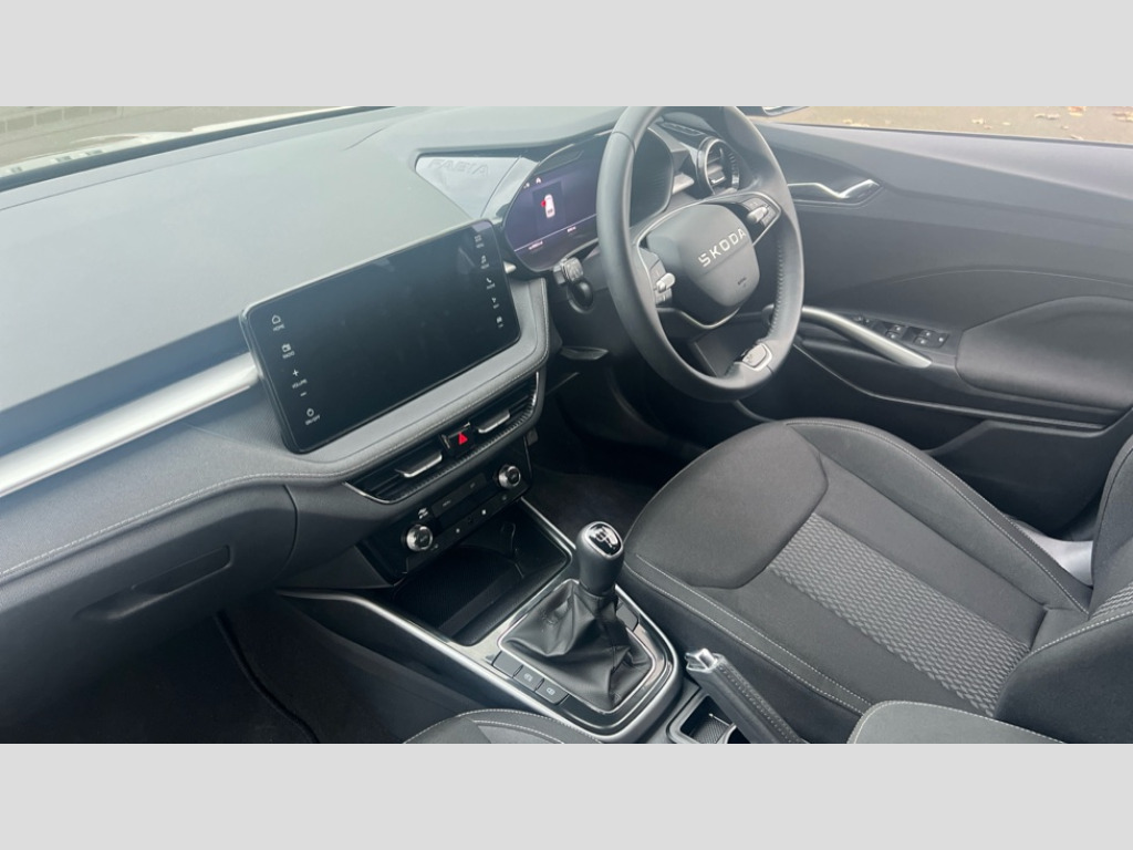 Skoda Fabia 1.0 TSI 116 SE L Edition 5dr Advanced driver attention and drowsiness monitor, Bluetooth connection, Electromechanical power steering, Exterior temperature gauge, Service interval indicator, Traffic sign recognition, Virtual cockpit with 10.25" colour display, Wireless SmartLink for Apple CarPlay and Android Auto, 6 Speakers (4 in front and 2 in rear), 9.2" colour display skoda navigation system with voice control and web radio, Auxiliary socket for external MP3 player, DAB digital radio reception, Auto dimming rear view mirror, Body colour door mirrors, Body coloured bumpers, Chrome window surround, Door mirror integrated indicators, Front and rear electric windows, Front window wiper intermittent control, Headlight range control - Automatic, Ice scraper in fuel cap, LED 3rd brake light, LED daytime running lights with coming and leaving home feature, LED rear lights, Privacy glass, Rear LED fog light, Rear side wing doors, Rear window wiper with washing nozzles, Roof mounted spoiler, SKODA tailgate lettering in chrome, Unique dark chrome design logo on alloy wheels, 2 LED reading lights in front and rear, 3 rear headrests, Backrest split and folding, Central console with removable cup holder and storage box, Chrome handbrake release button, Comfort seats, Door sills with fabia badging, Dual zone air conditioning with climatronic electronic control, Fabric upholstery, Front centre armrest, Gearshift knob/handle in leather, Hand brake lever handle in leather, Height adjustable front headrests, Height adjustable front seats, Height adjustable steering wheel, ISOFIX and TopTether anchorage points to the outer rear seats, ISOFIX and TopTether on the front passenger seat, Luggage compartment lighting, Manually adjustable lumbar support in front seats, Metallic grey interior door handles, Pollen filter, Rear seat bench unsplit, Single front passenger seat, Skoda lettering on steering wheel, Storm grey headlining, Sun visors with mirror and airbag label on passenger side, Textile floor mats, Ticket holder, Umbrella in drivers door, 3-point height adjustable front seats belts with pretensioner and force limiter, Automatic warning lights in case of crash, Driver and passengers airbag with switch off function, e-Call+, ESC including ABS, MSR, ASR, EDS, HBA and XDS, Front and rear seat belt warning, FRONT ASSIST (AEB City and AEB Inter Urban), Front side airbags, Head airbags, One tone horn, Pedestrian protection, Three rear 3-points safety seat belts with pretensioner and force limiter including stop function for outer rear seat belts, Tyre pressure monitoring system, Anti-theft alarm system including immobiliser, interior monitoring, backup horn, and towing protection, Central locking with radio remote control, interior controls, SAFE function and 2 foldable keys, Black painted air vents, Metallic grey central console cover, Metallic grey upper decorative trim, Satin black door and side trim panel in front, Textile microsuede grey lower decorative trim with art grey stitching, Anti-theft wheel bolts protection, Super-low rolling resistance tyres
