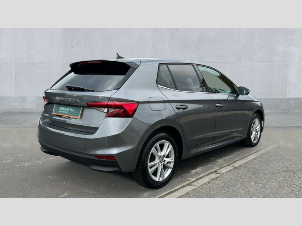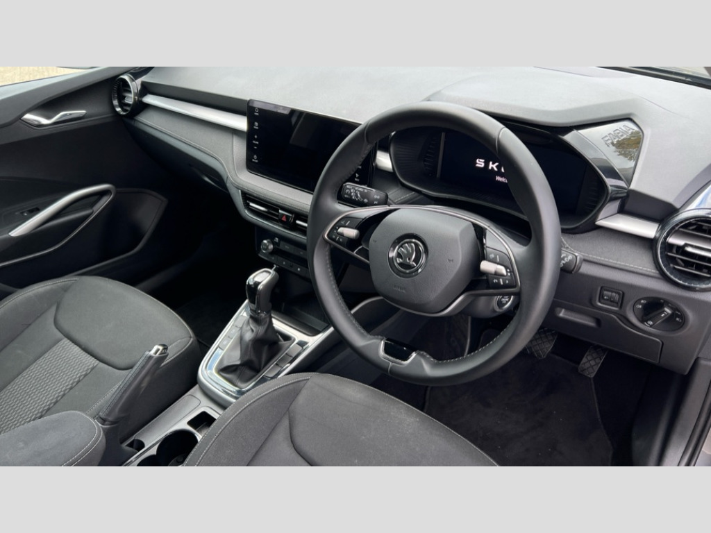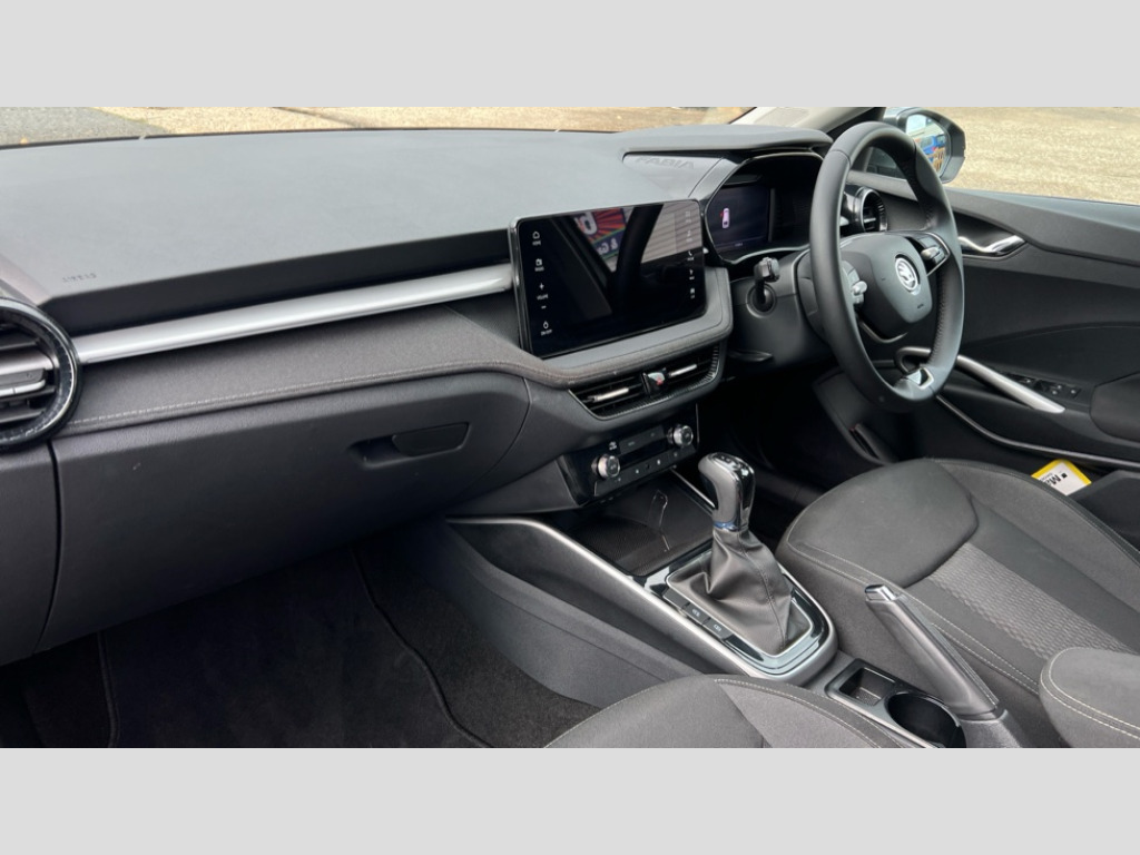 Skoda Fabia 1.0 TSI 116 SE L Edition 5dr DSG Advanced driver attention and drowsiness monitor, Bluetooth connection, Electromechanical power steering, Exterior temperature gauge, Service interval indicator, Traffic sign recognition, Virtual cockpit with 10.25" colour display, Wireless SmartLink for Apple CarPlay and Android Auto, 6 Speakers (4 in front and 2 in rear), 9.2" colour display skoda navigation system with voice control and web radio, Auxiliary socket for external MP3 player, DAB digital radio reception, Auto dimming rear view mirror, Body colour door mirrors, Body coloured bumpers, Chrome window surround, Door mirror integrated indicators, Front and rear electric windows, Front window wiper intermittent control, Headlight range control - Automatic, Ice scraper in fuel cap, LED 3rd brake light, LED daytime running lights with coming and leaving home feature, LED rear lights, Privacy glass, Rear LED fog light, Rear side wing doors, Rear window wiper with washing nozzles, Roof mounted spoiler, SKODA tailgate lettering in chrome, Unique dark chrome design logo on alloy wheels, 2 LED reading lights in front and rear, 3 rear headrests, Backrest split and folding, Central console with removable cup holder and storage box, Chrome handbrake release button, Comfort seats, Door sills with fabia badging, Dual zone air conditioning with climatronic electronic control, Fabric upholstery, Front centre armrest, Gearshift knob/handle in leather, Hand brake lever handle in leather, Height adjustable front headrests, Height adjustable front seats, Height adjustable steering wheel, ISOFIX and TopTether anchorage points to the outer rear seats, ISOFIX and TopTether on the front passenger seat, Luggage compartment lighting, Manually adjustable lumbar support in front seats, Metallic grey interior door handles, Pollen filter, Rear seat bench unsplit, Single front passenger seat, Skoda lettering on steering wheel, Storm grey headlining, Sun visors with mirror and airbag label on passenger side, Textile floor mats, Ticket holder, Umbrella in drivers door, 3-point height adjustable front seats belts with pretensioner and force limiter, Automatic warning lights in case of crash, Driver and passengers airbag with switch off function, e-Call+, ESC including ABS, MSR, ASR, EDS, HBA and XDS, Front and rear seat belt warning, FRONT ASSIST (AEB City and AEB Inter Urban), Front side airbags, Head airbags, Hill hold control, One tone horn, Pedestrian protection, Three rear 3-points safety seat belts with pretensioner and force limiter including stop function for outer rear seat belts, Tyre pressure monitoring system, Anti-theft alarm system including immobiliser, interior monitoring, backup horn, and towing protection, Central locking with radio remote control, interior controls, SAFE function and 2 foldable keys, Black painted air vents, Metallic grey central console cover, Metallic grey upper decorative trim, Satin black door and side trim panel in front, Textile microsuede grey lower decorative trim with art grey stitching, Anti-theft wheel bolts protection, Super-low rolling resistance tyres