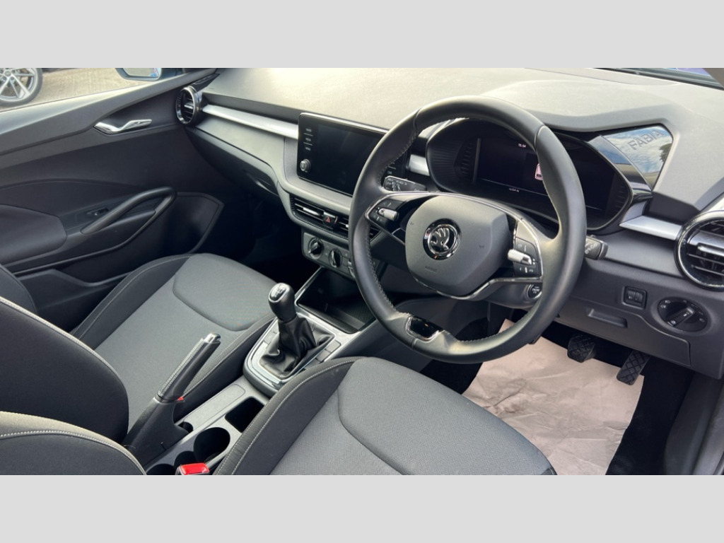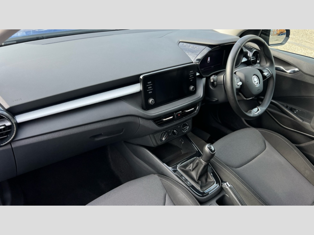 Skoda Fabia 1.0 TSI Colour Edition 5dr Bluetooth connection, Driver alert system - DAS, Electromechanical power steering, Exterior temperature gauge, Lane assist including road edge detection, Service interval indicator, Virtual cockpit with 10.25" colour display, 2x USB-C in the front (for data transmission and charging), 6 Speakers (4 in front and 2 in rear), Auxiliary socket for external MP3 player, Bolero radio with 8" colour display, DAB digital radio reception, Basic rear lights, Body coloured bumpers, Dimming rear view mirror with black frame, Door mirror integrated indicators, Electrically adjustable and heated door mirrors, Electrically adjustable front windows with function auto up/down, Front window wiper intermittent control, Headlight range control - Automatic, Ice scraper in fuel cap, LED daytime running lights with coming and leaving home feature, Mechanical adjustable rear windows, Privacy glass, Rear LED fog light, Rear side wing doors, Rear window wiper with washing nozzles, Roof colour door mirrors, Roof mounted spoiler, SKODA tailgate lettering in chrome, Third brake light, 3 rear headrests, Backrest split and folding, Central console with fixed cup holder and storage box, Chrome handbrake release button, Fabric upholstery, Gearshift knob/handle in leather, Grain satin black interior door handles, Hand brake lever handle in leather, Height adjustable front headrests, Height adjustable steering wheel, ISOFIX and TopTether anchorage points to the outer rear seats, ISOFIX and TopTether on the front passenger seat, Luggage compartment lighting, Pollen filter, Rear seat bench unsplit, Single front passenger seat, Storm grey headlining, Sun visors with mirror and airbag label on passenger side, Ticket holder, Umbrella in drivers door, 3-point height adjustable front seats belts with pretensioner and force limiter, Automatic warning lights in case of crash, Driver and passengers airbag with switch off function, e-Call+, ESC including ABS, MSR, ASR, EDS, HBA and XDS, Front and rear seat belt warning, FRONT ASSIST (AEB City and AEB Inter Urban), Front side airbags, Head airbags, One tone horn, Pedestrian protection, Three rear 3-points safety seat belts with pretensioner and force limiter including stop function for outer rear seat belts, Tyre pressure monitoring system, Anti-theft alarm system including immobiliser, interior monitoring, backup horn, and towing protection, Anodized cross line upper decorative trim, Colour Edition air vents, Grain satin black central console cover, Grain satin black lower decorative trim, Satin black door and side trim panel in front, Anti-theft wheel bolts protection, Super-low rolling resistance tyres