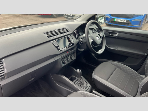 Skoda Fabia 1.0 TSI Colour Edition 5dr DSG Exterior temperature gauge, Front assistant collision mitigation, Multi function trip computer, PAS, Service interval indicator, SmartLink plus, Speed limiter, Stop/start system, Auxiliary socket for external MP3 player, DAB Digital radio, Radio swing plus with 6.5" touchscreen display, Bluetooth, SD card slot, USB port and 6 speakers, Body colour bumpers, Body colour door handles, Chrome grille surround, Electric front windows, Electrically adjustable and heated door mirrors, Heated rear window, Height adjustable headlamps, Intermittent rear wash/wipe, LED daytime running lights, Rear fog lights, Tinted windscreen, 1.5L bottle holder in front door panels, 2 height adjustable rear headrests, 60/40 split folding rear seat, Boot stowage box, Cargo area storage tray, Cloth upholstery, Folding grab handles, Front and rear interior lights, Front reading lights, Height adjustable driver's seat, Height adjustable front headrests, Height adjustable passenger seat, Height/reach adjust steering wheel, Isofix child seat mounting points on outer rear seats, Leather handbrake and gearshift lever, Lower glovebox cover, Luggage hooks in the boot, Parcel shelf, Pearl grey headlining, Pollen filter, Rear courtesy light, Rear storage trays, Sunvisors with vanity mirrors, Ticket holder, Umbrella under front passenger seat, 3x3 point rear seatbelts, Curtain and side airbags, Driver and front passenger airbag with front passenger airbag deactivation, ESC includes ABS, MSR, ASR, EDS and HBA, Front and rear passenger seatbelt warning light, Front seatbelt pretensioners, Hill hold control, Rear disc brakes, Tyre pressure monitor, Alarm with interior monitoring, Immobiliser, Locking wheel bolts, Remote central locking