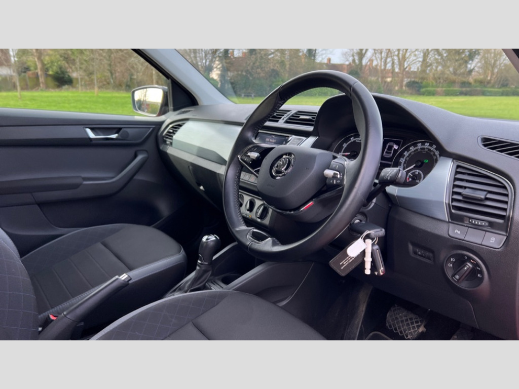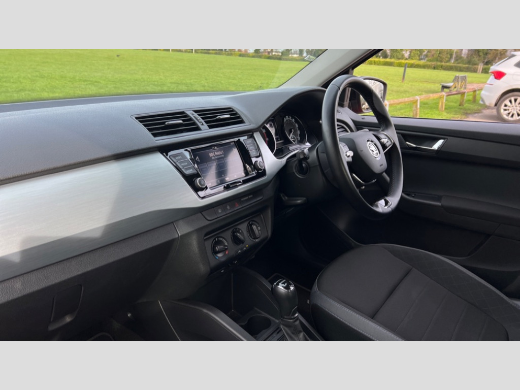 Skoda Fabia 1.0 TSI Colour Edition 5dr DSG Exterior temperature gauge, Front assistant collision mitigation, Multi function trip computer, PAS, Service interval indicator, SmartLink plus, Speed limiter, Stop/start system, Auxiliary socket for external MP3 player, DAB Digital radio, Radio swing plus with 6.5" touchscreen display, Bluetooth, SD card slot, USB port and 6 speakers, Body colour bumpers, Body colour door handles, Chrome grille surround, Electric front windows, Electrically adjustable and heated door mirrors, Heated rear window, Height adjustable headlamps, Intermittent rear wash/wipe, LED daytime running lights, Rear fog lights, Tinted windscreen, 1.5L bottle holder in front door panels, 2 height adjustable rear headrests, 60/40 split folding rear seat, Boot stowage box, Cargo area storage tray, Cloth upholstery, Folding grab handles, Front and rear interior lights, Front reading lights, Height adjustable driver's seat, Height adjustable front headrests, Height adjustable passenger seat, Height/reach adjust steering wheel, Isofix child seat mounting points on outer rear seats, Leather handbrake and gearshift lever, Lower glovebox cover, Luggage hooks in the boot, Parcel shelf, Pearl grey headlining, Pollen filter, Rear courtesy light, Rear storage trays, Sunvisors with vanity mirrors, Ticket holder, Umbrella under front passenger seat, 3x3 point rear seatbelts, Curtain and side airbags, Driver and front passenger airbag with front passenger airbag deactivation, ESC includes ABS, MSR, ASR, EDS and HBA, Front and rear passenger seatbelt warning light, Front seatbelt pretensioners, Hill hold control, Rear disc brakes, Tyre pressure monitor, Alarm with interior monitoring, Immobiliser, Locking wheel bolts, Remote central locking