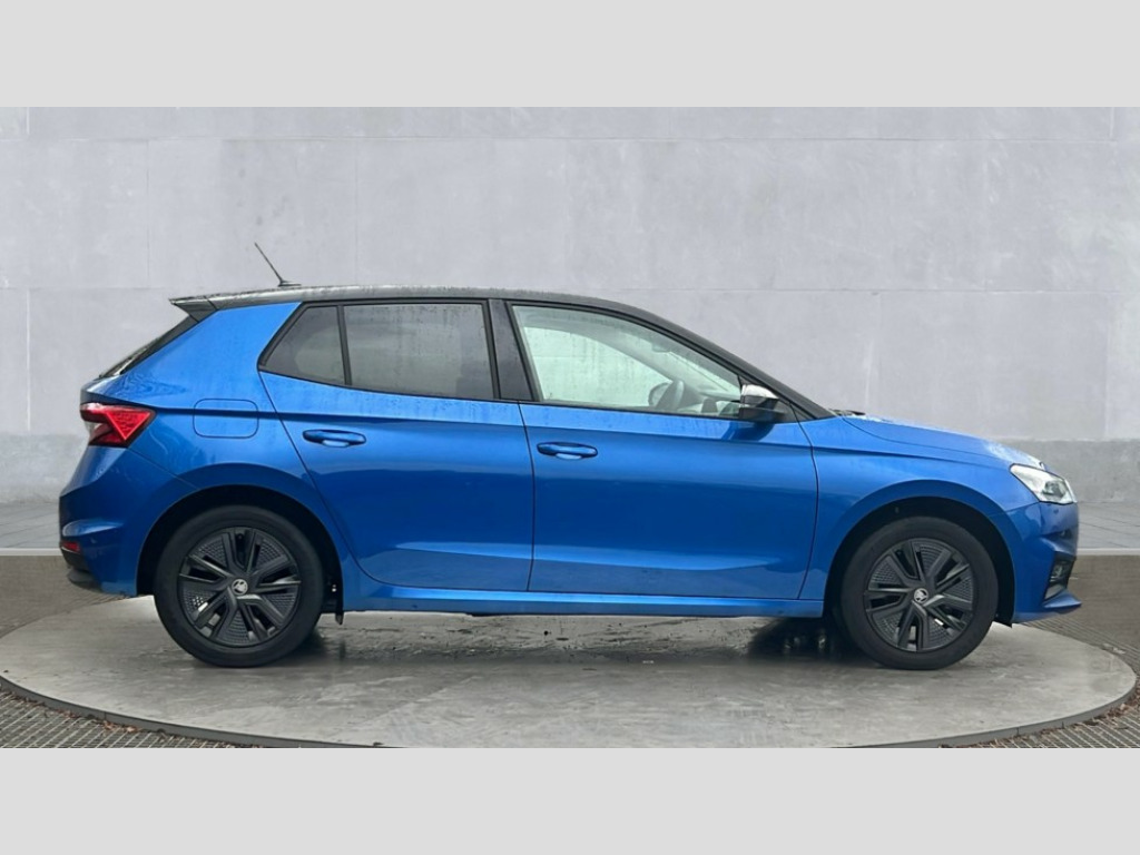 Skoda Fabia 1.0 TSI Design Edition 5dr Advanced driver attention and drowsiness monitor, Bluetooth connection, Electromechanical power steering, Exterior temperature gauge, Service interval indicator, Traffic sign recognition, Virtual cockpit with 10.25" colour display, Wireless SmartLink for Apple CarPlay and Android Auto, 6 Speakers (4 in front and 2 in rear), Auxiliary socket for external MP3 player, DAB digital radio reception, Auto dimming rear view mirror, Body coloured bumpers, Door mirror integrated indicators, Front and rear electric windows, Front window wiper intermittent control, Headlight range control - Automatic, Ice scraper in fuel cap, LED 3rd brake light, LED daytime running lights with coming and leaving home feature, LED rear lights, Privacy glass, Rear LED fog light, Rear side wing doors, Rear window wiper with washing nozzles, Roof mounted spoiler, SKODA tailgate lettering in chrome, Unique dark chrome design logo on alloy wheels, 2 reading lights in front and 2 reading lights in rear, 3 rear headrests, Backrest split and folding, Central console with removable cup holder and storage box, Chrome handbrake release button, Dual zone air conditioning with climatronic electronic control, Fabric upholstery, Front centre armrest, Gearshift knob/handle in leather, Grain satin black interior door handles, Hand brake lever handle in leather, Height adjustable front headrests, Height adjustable front seats, Height adjustable steering wheel, ISOFIX and TopTether anchorage points to the outer rear seats, ISOFIX and TopTether on the front passenger seat, Luggage compartment lighting, Manually adjustable lumbar support in front seats, Pollen filter, Rear seat bench unsplit, Single front passenger seat, Skoda lettering on steering wheel, Storm grey headlining, Sun visors with mirror and airbag label on passenger side, Textile floor mats, Ticket holder, Umbrella in drivers door, 3-point height adjustable front seats belts with pretensioner and force limiter, Automatic warning lights in case of crash, Driver and passengers airbag with switch off function, e-Call+, ESC including ABS, MSR, ASR, EDS, HBA and XDS, Front and rear seat belt warning, FRONT ASSIST (AEB City and AEB Inter Urban), Front side airbags, Head airbags, One tone horn, Pedestrian protection, Three rear 3-points safety seat belts with pretensioner and force limiter including stop function for outer rear seat belts, Tyre pressure monitoring system, Anti-theft alarm system including immobiliser, interior monitoring, backup horn, and towing protection, Central locking with radio remote control, interior controls, SAFE function and 2 foldable keys, Black painted air vents, Grain satin black central console cover, Metallic grey upper decorative trim, Satin black door and side trim panel in front, Textile Kota grey lower decorative inserts, Anti-theft wheel bolts protection, Super-low rolling resistance tyres