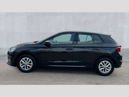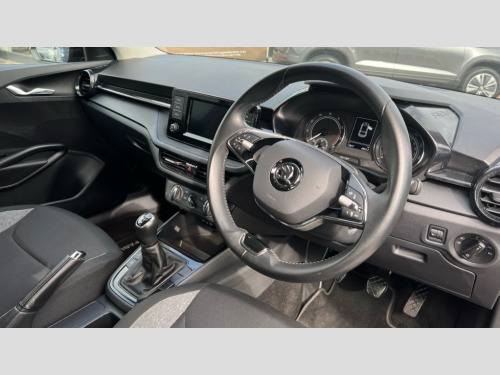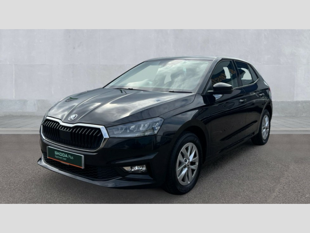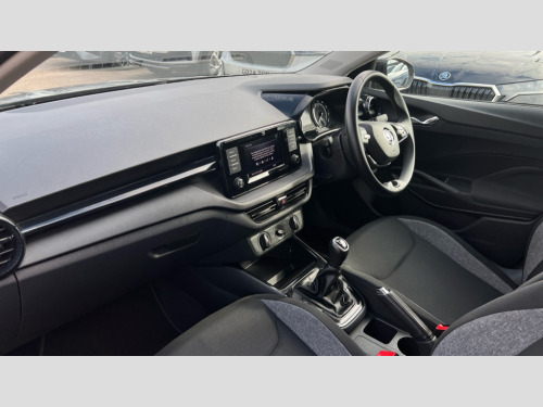 Skoda Fabia 1.0 MPI 80 SE Comfort 5dr Bluetooth connection, Driver alert system - DAS, Electromechanical power steering, Exterior temperature gauge, Lane assist including road edge detection, Multifunction trip computer in black and white, Service interval indicator, SmartLink, Speed limiter, 2x USB-C in the front (for data transmission and charging), 4 speakers in front, Auxiliary socket for external MP3 player, DAB digital radio reception, Radio Swing with 6.5" colour display, Basic LED Headlights, Basic rear lights, Body colour door mirrors, Body coloured bumpers, Dimming rear view mirror with black frame, Door mirror integrated indicators, Electrically adjustable and heated door mirrors, Electrically adjustable front windows with function auto up/down, Front fog lights, Front window wiper intermittent control, Headlight range control - Automatic, Ice scraper in fuel cap, LED daytime running lights with coming and leaving home feature, Mechanical adjustable rear windows, Rain sensor, Rear LED fog light, Rear side wing doors, Rear window wiper with washing nozzles, Roof mounted spoiler, SKODA tailgate lettering in chrome, Third brake light, 2 reading lights in front and 2 reading lights in rear, 2 spoke leather multifunction steering wheel, 3 rear headrests, Backrest split and folding, Central console with fixed cup holder and storage box, Chrome handbrake release button, Fabric upholstery, Gearshift knob/handle in leather, Grain satin black interior door handles, Hand brake lever handle in leather, Height adjustable front headrests, Height adjustable front seats, Height adjustable steering wheel, ISOFIX and TopTether anchorage points to the outer rear seats, ISOFIX and TopTether on the front passenger seat, Luggage compartment lighting, Manual air conditioning, Manually adjustable lumbar support in front seats, Pollen filter, Rear seat bench unsplit, Single front passenger seat, Storm grey headlining, Sun visors with mirror and airbag label on passenger side, Ticket holder, 3-point height adjustable front seats belts with pretensioner and force limiter, Automatic warning lights in case of crash, Driver and passengers airbag with switch off function, e-Call+, ESC including ABS, MSR, ASR, EDS, HBA and XDS, Front and rear seat belt warning, FRONT ASSIST (AEB City and AEB Inter Urban), Front side airbags, Head airbags, One tone horn, Pedestrian protection, Three rear 3-points safety seat belts with pretensioner and force limiter including stop function for outer rear seat belts, Tyre pressure monitoring system, Anti-theft alarm system including immobiliser, interior monitoring, backup horn, and towing protection, Central locking with radio remote control, interior controls, SAFE function and 2 foldable keys, Black painted air vents, Glossy black decorative trim, Grain satin black central console cover, Grain satin black lower decorative trim, Satin black door and side trim panel in front, Anti-theft wheel bolts protection, Super-low rolling resistance tyres