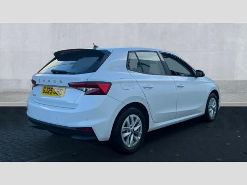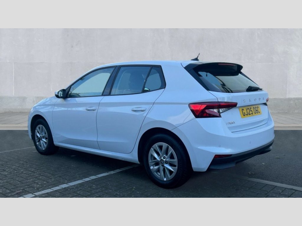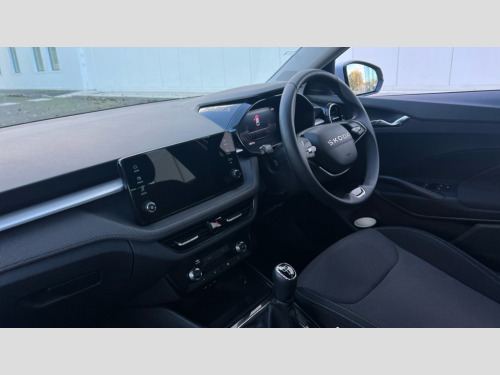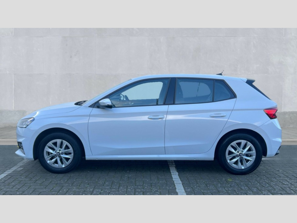 Skoda Fabia 1.0 TSI SE Edition 5dr 8" Digital instrument display, Advanced driver attention and drowsiness monitor, Bluetooth connection, Electromechanical power steering, Exterior temperature gauge, Service interval indicator, Traffic sign recognition, Wireless SmartLink for Apple CarPlay and Android Auto, 6 Speakers (4 in front and 2 in rear), 8.25" Skoda infotainment touchscreen display, Auxiliary socket for external MP3 player, DAB digital radio reception, Auto dimming rear view mirror, Body colour door mirrors, Body coloured bumpers, Door mirror integrated indicators, Front and rear electric windows, Front window wiper intermittent control, Headlight range control - Automatic, Ice scraper in fuel cap, LED 3rd brake light, LED daytime running lights with coming and leaving home feature, LED rear lights, Rear LED fog light, Rear side wing doors, Rear window wiper with washing nozzles, Roof mounted spoiler, SKODA tailgate lettering in chrome, Unique dark chrome design logo on alloy wheels, 2 reading lights in front and 2 reading lights in rear, 3 rear headrests, Backrest split and folding, Central console with removable cup holder and storage box, Chrome handbrake release button, Dual zone air conditioning with climatronic electronic control, Fabric upholstery, Front centre armrest, Gearshift knob/handle in leather, Grain satin black interior door handles, Hand brake lever handle in leather, Height adjustable front headrests, Height adjustable front seats, Height adjustable steering wheel, ISOFIX and TopTether anchorage points to the outer rear seats, ISOFIX and TopTether on the front passenger seat, Luggage compartment lighting, Manually adjustable lumbar support in front seats, Pollen filter, Rear seat bench unsplit, Single front passenger seat, Skoda lettering on steering wheel, Storm grey headlining, Sun visors with mirror and airbag label on passenger side, Textile floor mats, Ticket holder, Umbrella in drivers door, 3-point height adjustable front seats belts with pretensioner and force limiter, Automatic warning lights in case of crash, Driver and passengers airbag with switch off function, e-Call+, ESC including ABS, MSR, ASR, EDS, HBA and XDS, Front and rear seat belt warning, FRONT ASSIST (AEB City and AEB Inter Urban), Front side airbags, Head airbags, One tone horn, Pedestrian protection, Three rear 3-points safety seat belts with pretensioner and force limiter including stop function for outer rear seat belts, Tyre pressure monitoring system, Anti-theft alarm system including immobiliser, interior monitoring, backup horn, and towing protection, Central locking with radio remote control, interior controls, SAFE function and 2 foldable keys, Black painted air vents, Grain satin black central console cover, Metallic grey upper decorative trim, Satin black door and side trim panel in front, Textile Kota grey lower decorative inserts, Anti-theft wheel bolts protection, Super-low rolling resistance tyres