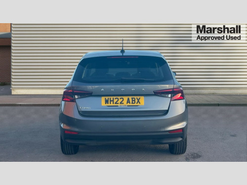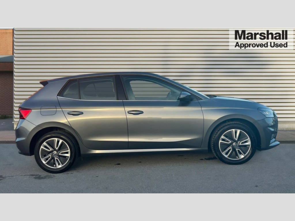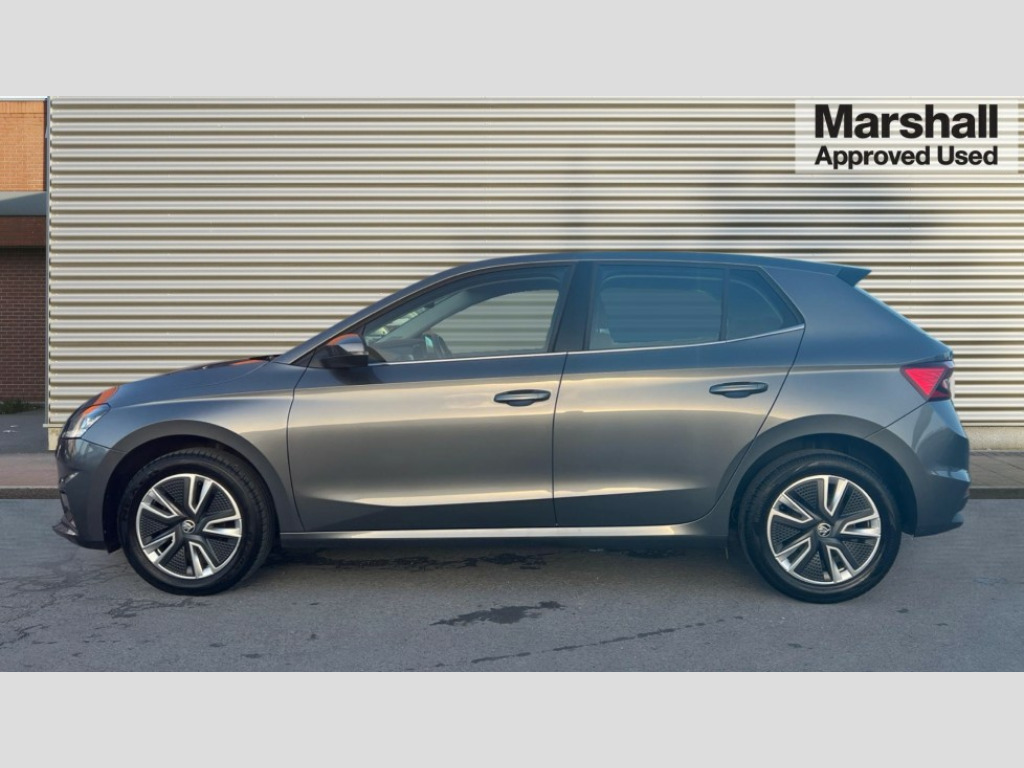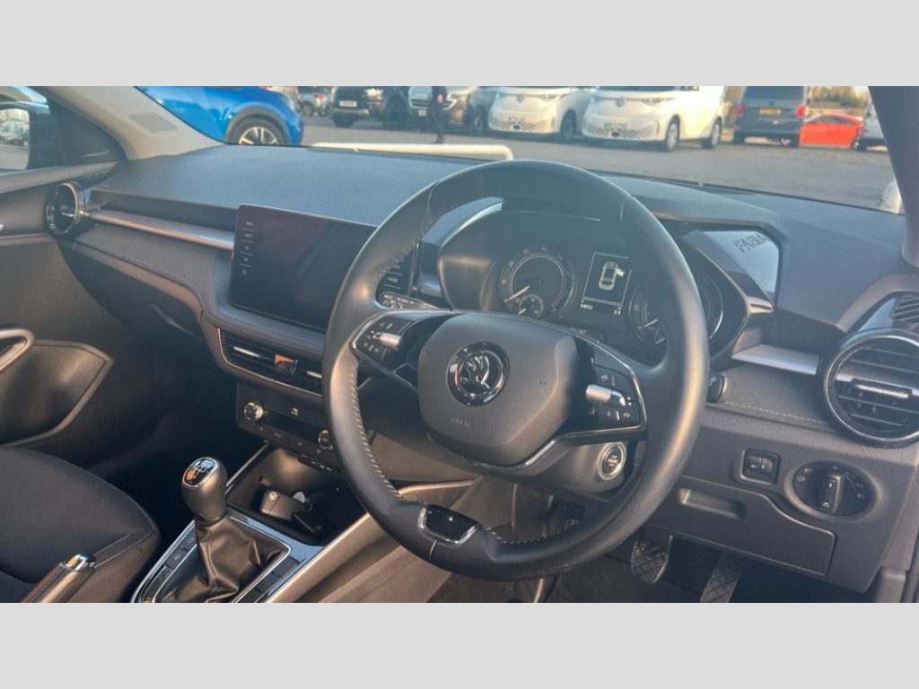 Skoda Fabia 1.0 TSI SE L 5dr Bluetooth connection, Driver alert system - DAS, Electromechanical power steering, Exterior temperature gauge, Service interval indicator, 2x USB-C in the front (for data transmission and charging), 6 Speakers (4 in front and 2 in rear), Auxiliary socket for external MP3 player, DAB digital radio reception, Web radio, Auto dimming rear view mirror, Basic rear lights, Body colour door mirrors, Body coloured bumpers, Chrome window surround, Door mirror integrated indicators, Electrically adjustable and heated door mirrors, Front and rear electric windows, Front window wiper intermittent control, Headlight range control - Automatic, Ice scraper in fuel cap, LED daytime running lights with coming and leaving home feature, Rear LED fog light, Rear side wing doors, Rear window wiper with washing nozzles, Roof mounted spoiler, SKODA tailgate lettering in chrome, Third brake light, 3 rear headrests, Backrest split and folding, Central console with fixed cup holder and storage box, Chrome handbrake release button, Comfort seats, Fabric upholstery, Front centre armrest, Gearshift knob/handle in leather, Hand brake lever handle in leather, Height adjustable front headrests, Height adjustable front seats, Height adjustable steering wheel, ISOFIX and TopTether anchorage points to the outer rear seats, ISOFIX and TopTether on the front passenger seat, Luggage compartment lighting, Manually adjustable lumbar support in front seats, Pollen filter, Rear seat bench unsplit, Removable cup holder, Single front passenger seat, Storm grey headlining, Sun visors with mirror and airbag label on passenger side, Textile floor mats, Ticket holder, Umbrella in drivers door, Ambient lighting pack 2 - Fabia Hatchback, 3-point height adjustable front seats belts with pretensioner and force limiter, Automatic warning lights in case of crash, Driver and passengers airbag with switch off function, e-Call+, ESC including ABS, MSR, ASR, EDS, HBA and XDS, Front and rear seat belt warning, FRONT ASSIST (AEB City and AEB Inter Urban), Front side airbags, Head airbags, One tone horn, Pedestrian protection, Three rear 3-points safety seat belts with pretensioner and force limiter including stop function for outer rear seat belts, Tyre pressure monitoring system, Anti-theft alarm system including immobiliser, interior monitoring, backup horn, and towing protection, Chrome edged air vents, Satin black door and side trim panel in front, Anti-theft wheel bolts protection, Super-low rolling resistance tyres