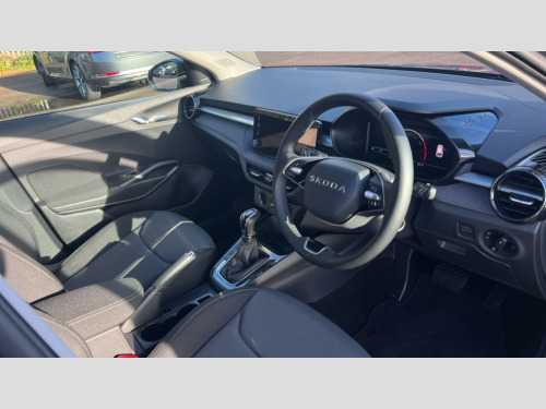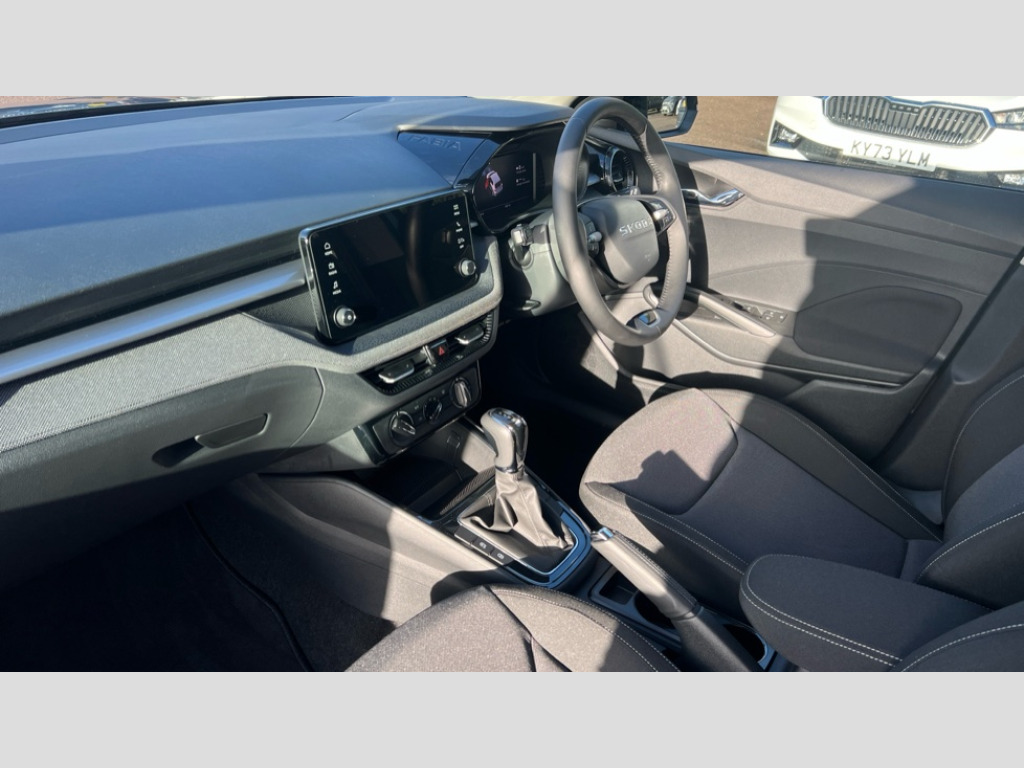 Skoda Fabia 1.5 TSI 150 Colour Edition 5dr DSG Advanced driver attention and drowsiness monitor, Bluetooth connection, Electromechanical power steering, Exterior temperature gauge, Service interval indicator, Traffic sign recognition, Virtual cockpit with 10.25" colour display, Wireless SmartLink for Apple CarPlay and Android Auto, 6 Speakers (4 in front and 2 in rear), Auxiliary socket for external MP3 player, DAB digital radio reception, Body coloured bumpers, Dimming rear view mirror with black frame, Door mirror integrated indicators, Front and rear electric windows, Front window wiper intermittent control, Headlight range control - Automatic, Ice scraper in fuel cap, LED daytime running lights with coming and leaving home feature, LED rear lights, Privacy glass, Rear LED fog light, Rear side wing doors, Rear window wiper with washing nozzles, Roof mounted spoiler, SKODA tailgate lettering in chrome, Third brake light, 2 reading lights in front and 2 reading lights in rear, 3 rear headrests, Backrest split and folding, Central console with removable cup holder and storage box, Chrome handbrake release button, Fabric upholstery, Front centre armrest, Gearshift knob/handle in leather, Grain satin black interior door handles, Hand brake lever handle in leather, Height adjustable front headrests, Height adjustable front seats, Height adjustable steering wheel, ISOFIX and TopTether anchorage points to the outer rear seats, ISOFIX and TopTether on the front passenger seat, Luggage compartment lighting, Manually adjustable lumbar support in front seats, Pollen filter, Rear seat bench unsplit, Single front passenger seat, Storm grey headlining, Sun visors with mirror and airbag label on passenger side, Textile floor mats, Ticket holder, Umbrella in drivers door, 3-point height adjustable front seats belts with pretensioner and force limiter, Automatic warning lights in case of crash, Driver and passengers airbag with switch off function, e-Call+, ESC including ABS, MSR, ASR, EDS, HBA and XDS, Front and rear seat belt warning, FRONT ASSIST (AEB City and AEB Inter Urban), Front side airbags, Head airbags, Hill hold control, One tone horn, Pedestrian protection, Three rear 3-points safety seat belts with pretensioner and force limiter including stop function for outer rear seat belts, Tyre pressure monitoring system, Anti-theft alarm system including immobiliser, interior monitoring, backup horn, and towing protection, Central locking with radio remote control, interior controls, SAFE function and 2 foldable keys, Colour Edition air vents, Grain satin black central console cover, Metallic grey upper decorative trim, Satin black door and side trim panel in front, Textile Kota grey lower decorative inserts, Anti-theft wheel bolts protection, Super-low rolling resistance tyres