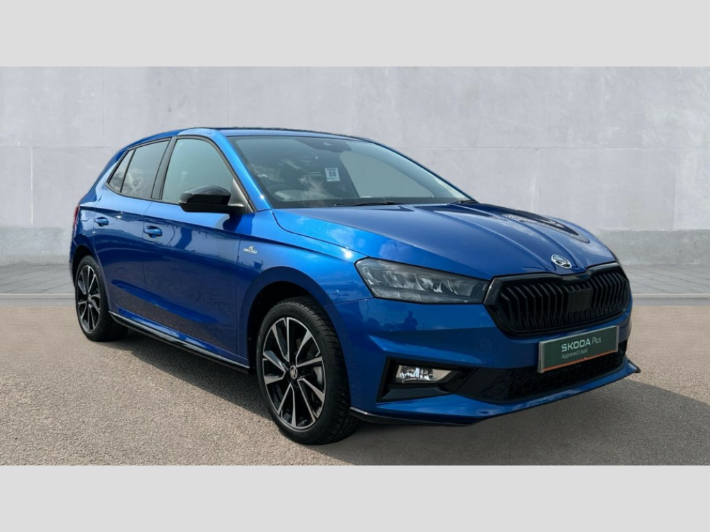 Skoda Fabia 1.5 TSI 150 Monte Carlo 5dr DSG Advanced driver attention and drowsiness monitor, Bluetooth connection, Electromechanical power steering, Exterior temperature gauge, Service interval indicator, Traffic sign recognition, Virtual cockpit with 10.25" colour display, Wireless SmartLink for Apple CarPlay and Android Auto, 6 Speakers (4 in front and 2 in rear), Auxiliary socket for external MP3 player, DAB digital radio reception, Auto dimming rear view mirror, Black radiator grille, Body coloured bumpers, Door mirror integrated indicators, Front and rear electric windows, Front window wiper intermittent control, Headlight range control - Automatic, Ice scraper in fuel cap, LED daytime running lights with coming and leaving home feature, LED rear lights, Monte Carlo badging, Privacy glass, Rear LED fog light, Rear side wing doors, Rear window wiper with washing nozzles, Roof mounted spoiler, SKODA tailgate lettering in black, Sports bumpers, Third brake light, 2 reading lights in front and 2 reading lights in rear, 3 rear headrests, Aluminium pedals, Backrest split and folding, Black headlining, Central console with removable cup holder and storage box, Chrome handbrake release button, Door sills with fabia badging, Dual zone air conditioning with climatronic electronic control, Fabric/artificial leather upholstery, Front centre armrest, Front sports seats, Gearshift knob/handle in leather, Hand brake lever handle in leather, Height adjustable front headrests, Height adjustable front seats, Height adjustable steering wheel, ISOFIX and TopTether anchorage points to the outer rear seats, ISOFIX and TopTether on the front passenger seat, Luggage compartment lighting, Manually adjustable lumbar support in front seats, Metallic painted red central console cover, Metallic red interior door handles, Pollen filter, Rear seat bench unsplit, Single front passenger seat, Sun visors with mirror and airbag label on passenger side, Textile floor mats, Ticket holder, Umbrella in drivers door, 3-point height adjustable front seats belts with pretensioner and force limiter, Automatic warning lights in case of crash, Driver and passengers airbag with switch off function, e-Call+, ESC including ABS, MSR, ASR, EDS, HBA and XDS, Front and rear seat belt warning, FRONT ASSIST (AEB City and AEB Inter Urban), Front side airbags, Head airbags, Hill hold control, One tone horn, Pedestrian protection, Three rear 3-points safety seat belts with pretensioner and force limiter including stop function for outer rear seat belts, Tyre pressure monitoring system, Anti-theft alarm system including immobiliser, interior monitoring, backup horn, and towing protection, Central locking with radio remote control, interior controls, SAFE function and 2 foldable keys, Carbon effect door and side trim panels, Carbon effect lower decorative trim with white stitching, Monte carlo air vents, Red metallic upper decorative trim, Anti-theft wheel bolts protection, Super-low rolling resistance tyres