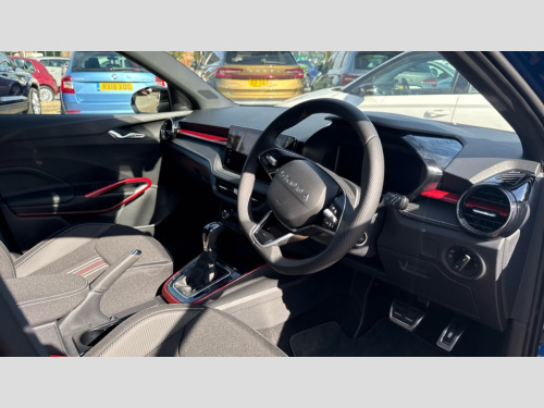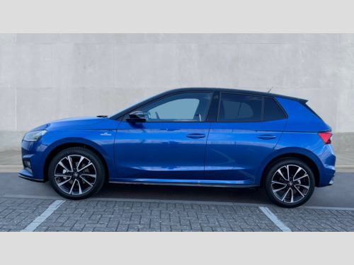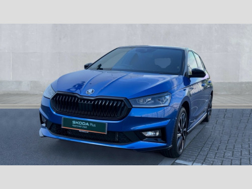 Skoda Fabia 1.5 TSI 150 Monte Carlo Edition 5dr DSG Advanced driver attention and drowsiness monitor, Bluetooth connection, Driver alert system, Electromechanical power steering, Exterior temperature gauge, Service interval indicator, Traffic sign recognition, Virtual cockpit with 10.25" colour display, Wireless SmartLink for Apple CarPlay and Android Auto, 6 Speakers (4 in front and 2 in rear), 9.2" colour display skoda navigation system with voice control and web radio, Auxiliary socket for external MP3 player, DAB digital radio reception, Auto dimming rear view mirror, Black radiator grille, Body coloured bumpers, Door mirror integrated indicators, Dynamic headlight range control, Front and rear electric windows, Front window wiper intermittent control, Ice scraper in fuel cap, LED 3rd brake light, LED daytime running lights with coming and leaving home feature, LED rear lights, Monte Carlo badging, Privacy glass, Rear LED fog light, Rear side wing doors, Rear window wiper with washing nozzles, Roof mounted spoiler, SKODA tailgate lettering in black, Sports bumpers, Unique dark chrome design logo on alloy wheels, 2 LED reading lights in front and rear, 3 rear headrests, Aluminium pedals, Backrest split and folding, Black headlining, Central console with fixed cup holder and storage box, Chrome handbrake release button, Door sills with fabia badging, Dual zone air conditioning with climatronic electronic control, Fabric/artificial leather upholstery, Front centre armrest, Front sports seats, Gearshift knob/handle in leather, Hand brake lever handle in leather, Height adjustable front headrests, Height adjustable front seats, Height adjustable steering wheel, ISOFIX and TopTether anchorage points to the outer rear seats, ISOFIX and TopTether on the front passenger seat, Luggage compartment lighting, Manually adjustable lumbar support in front seats, Metallic painted red central console cover, Metallic red interior door handles, Pollen filter, Rear seat bench unsplit, Single front passenger seat, Skoda lettering on steering wheel, Sun visors with mirror and airbag label on passenger side, Textile floor mats, Ticket holder, Umbrella in drivers door, Ambient lighting pack - Fabia Hatchback, Convenience pack - Fabia, Light and view pack plus - Fabia, 3-point height adjustable front seats belts with pretensioner and force limiter, Automatic warning lights in case of crash, Driver and passengers airbag with switch off function, e-Call+, ESC including ABS, MSR, ASR, EDS, HBA and XDS, Front and rear seat belt warning, FRONT ASSIST (AEB City and AEB Inter Urban), Front side airbags, Head airbags, Hill hold control, One tone horn, Pedestrian protection, Three rear 3-points safety seat belts with pretensioner and force limiter including stop function for outer rear seat belts, Tyre pressure monitoring system, Anti-theft alarm system including immobiliser, interior monitoring, backup horn, and towing protection, Central locking with radio remote control, interior controls, SAFE function and 2 foldable keys, Carbon effect door and side trim panels, Carbon effect lower decorative trim with white stitching, Monte carlo air vents, Red metallic upper decorative trim, Anti-theft wheel bolts protection, Super-low rolling resistance tyres