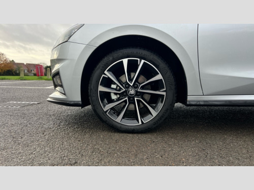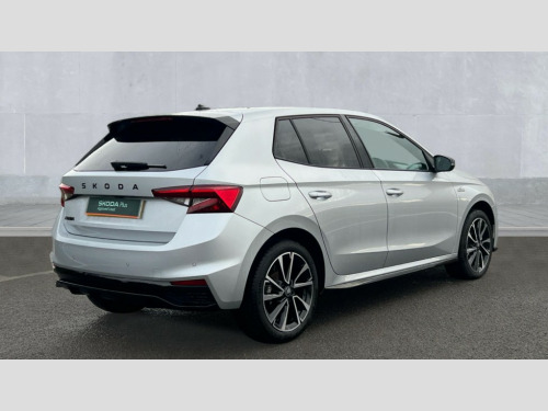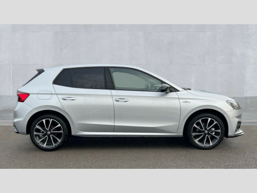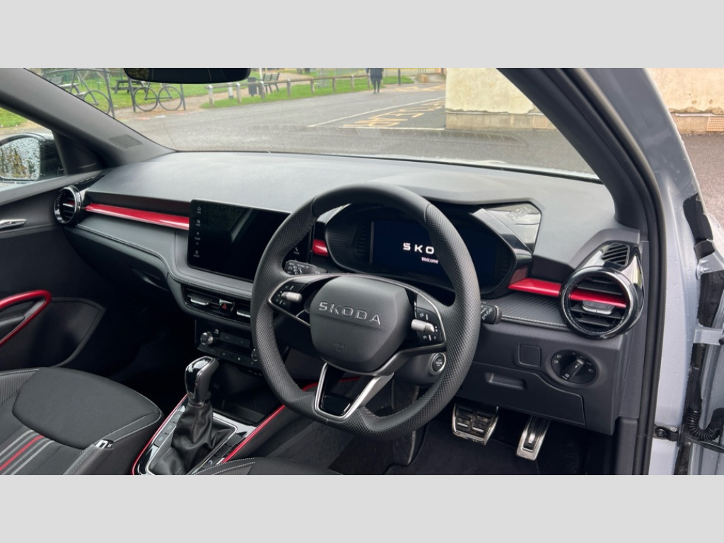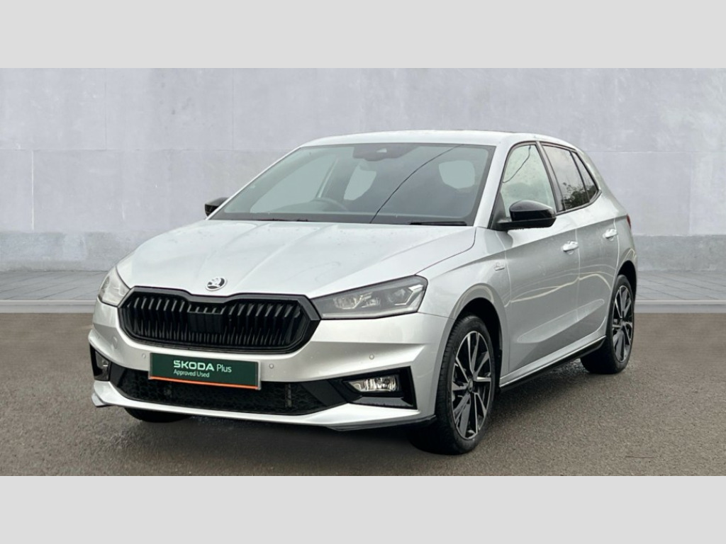 Skoda Fabia 1.5 TSI 150 Monte Carlo Edition 5dr DSG Advanced driver attention and drowsiness monitor, Bluetooth connection, Electromechanical power steering, Exterior temperature gauge, Service interval indicator, Traffic sign recognition, Virtual cockpit with 10.25" colour display, Wireless SmartLink for Apple CarPlay and Android Auto, 6 Speakers (4 in front and 2 in rear), 9.2" colour display skoda navigation system with voice control and web radio, Auxiliary socket for external MP3 player, DAB digital radio reception, Auto dimming rear view mirror, Black radiator grille, Body coloured bumpers, Door mirror integrated indicators, Dynamic headlight range control, Front and rear electric windows, Front window wiper intermittent control, Ice scraper in fuel cap, LED 3rd brake light, LED daytime running lights with coming and leaving home feature, LED rear lights, Monte Carlo badging, Privacy glass, Rear LED fog light, Rear side wing doors, Rear window wiper with washing nozzles, Roof mounted spoiler, SKODA tailgate lettering in black, Sports bumpers, Unique dark chrome design logo on alloy wheels, 2 LED reading lights in front and rear, 3 rear headrests, Aluminium pedals, Backrest split and folding, Black headlining, Central console with removable cup holder and storage box, Chrome handbrake release button, Door sills with fabia badging, Dual zone air conditioning with climatronic electronic control, Fabric/artificial leather upholstery, Front centre armrest, Front sports seats, Gearshift knob/handle in leather, Hand brake lever handle in leather, Height adjustable front headrests, Height adjustable front seats, Height adjustable steering wheel, ISOFIX and TopTether anchorage points to the outer rear seats, ISOFIX and TopTether on the front passenger seat, Luggage compartment lighting, Manually adjustable lumbar support in front seats, Metallic painted red central console cover, Metallic red interior door handles, Pollen filter, Rear seat bench unsplit, Single front passenger seat, Skoda lettering on steering wheel, Sun visors with mirror and airbag label on passenger side, Textile floor mats, Ticket holder, Umbrella in drivers door, Convenience pack - Fabia, Light and view pack plus - Fabia, 3-point height adjustable front seats belts with pretensioner and force limiter, Automatic warning lights in case of crash, Driver and passengers airbag with switch off function, e-Call+, ESC including ABS, MSR, ASR, EDS, HBA and XDS, Front and rear seat belt warning, FRONT ASSIST (AEB City and AEB Inter Urban), Front side airbags, Head airbags, Hill hold control, One tone horn, Pedestrian protection, Three rear 3-points safety seat belts with pretensioner and force limiter including stop function for outer rear seat belts, Tyre pressure monitoring system, Anti-theft alarm system including immobiliser, interior monitoring, backup horn, and towing protection, Central locking with radio remote control, interior controls, SAFE function and 2 foldable keys, Black painted air vents, Carbon effect door and side trim panels, Carbon effect lower decorative trim with white stitching, Red metallic upper decorative trim, Anti-theft wheel bolts protection, Super-low rolling resistance tyres