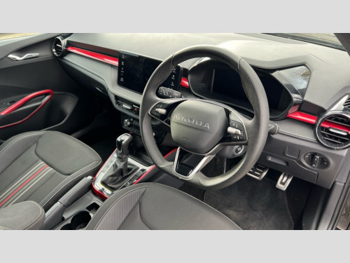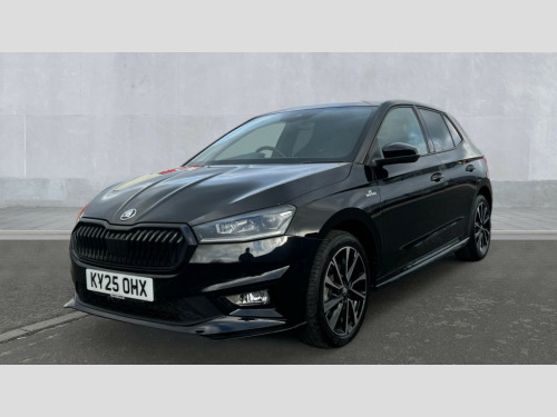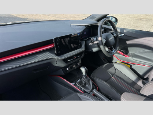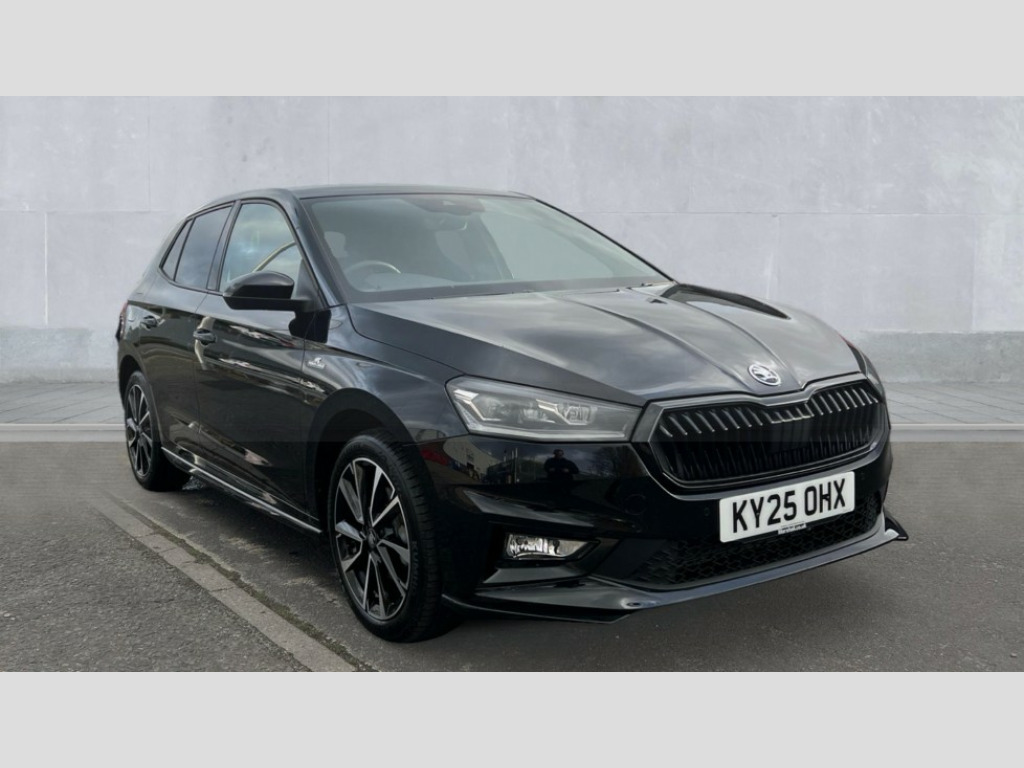 Skoda Fabia 1.5 TSI 150 Monte Carlo Edition 5dr DSG Advanced driver attention and drowsiness monitor, Bluetooth connection, Electromechanical power steering, Exterior temperature gauge, Service interval indicator, Traffic sign recognition, Virtual cockpit with 10.25" colour display, Wireless SmartLink for Apple CarPlay and Android Auto, 6 Speakers (4 in front and 2 in rear), 9.2" colour display skoda navigation system with voice control and web radio, Auxiliary socket for external MP3 player, DAB digital radio reception, Auto dimming rear view mirror, Black radiator grille, Body coloured bumpers, Door mirror integrated indicators, Dynamic headlight range control, Front and rear electric windows, Front window wiper intermittent control, Ice scraper in fuel cap, LED 3rd brake light, LED daytime running lights with coming and leaving home feature, LED rear lights, Monte Carlo badging, Privacy glass, Rear LED fog light, Rear side wing doors, Rear window wiper with washing nozzles, Roof mounted spoiler, SKODA tailgate lettering in black, Sports bumpers, Unique dark chrome design logo on alloy wheels, 2 LED reading lights in front and rear, 3 rear headrests, Aluminium pedals, Backrest split and folding, Black headlining, Central console with removable cup holder and storage box, Chrome handbrake release button, Door sills with fabia badging, Dual zone air conditioning with climatronic electronic control, Fabric/artificial leather upholstery, Front centre armrest, Front sports seats, Gearshift knob/handle in leather, Hand brake lever handle in leather, Height adjustable front headrests, Height adjustable front seats, Height adjustable steering wheel, ISOFIX and TopTether anchorage points to the outer rear seats, ISOFIX and TopTether on the front passenger seat, Luggage compartment lighting, Manually adjustable lumbar support in front seats, Metallic painted red central console cover, Metallic red interior door handles, Pollen filter, Rear seat bench unsplit, Single front passenger seat, Skoda lettering on steering wheel, Sun visors with mirror and airbag label on passenger side, Textile floor mats, Ticket holder, Umbrella in drivers door, Convenience pack - Fabia, Light and view pack plus - Fabia, 3-point height adjustable front seats belts with pretensioner and force limiter, Automatic warning lights in case of crash, Driver and passengers airbag with switch off function, e-Call+, ESC including ABS, MSR, ASR, EDS, HBA and XDS, Front and rear seat belt warning, FRONT ASSIST (AEB City and AEB Inter Urban), Front side airbags, Head airbags, Hill hold control, One tone horn, Pedestrian protection, Three rear 3-points safety seat belts with pretensioner and force limiter including stop function for outer rear seat belts, Tyre pressure monitoring system, Anti-theft alarm system including immobiliser, interior monitoring, backup horn, and towing protection, Central locking with radio remote control, interior controls, SAFE function and 2 foldable keys, Black painted air vents, Carbon effect door and side trim panels, Carbon effect lower decorative trim with white stitching, Red metallic upper decorative trim, Anti-theft wheel bolts protection, Super-low rolling resistance tyres