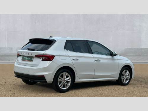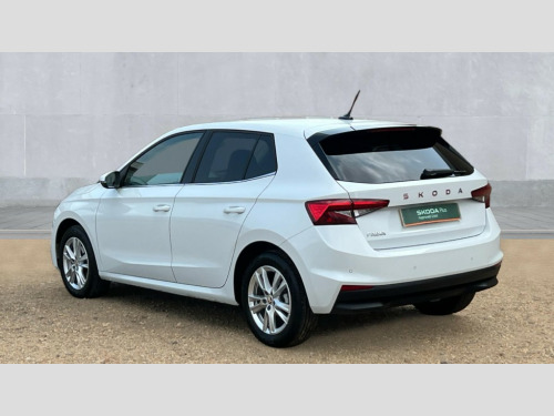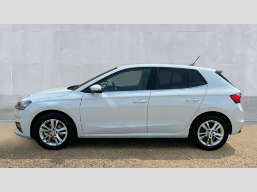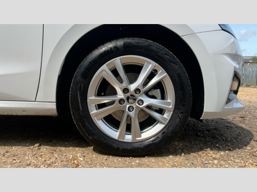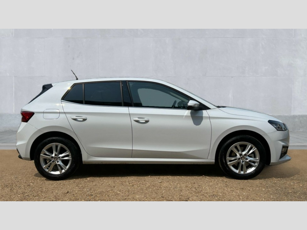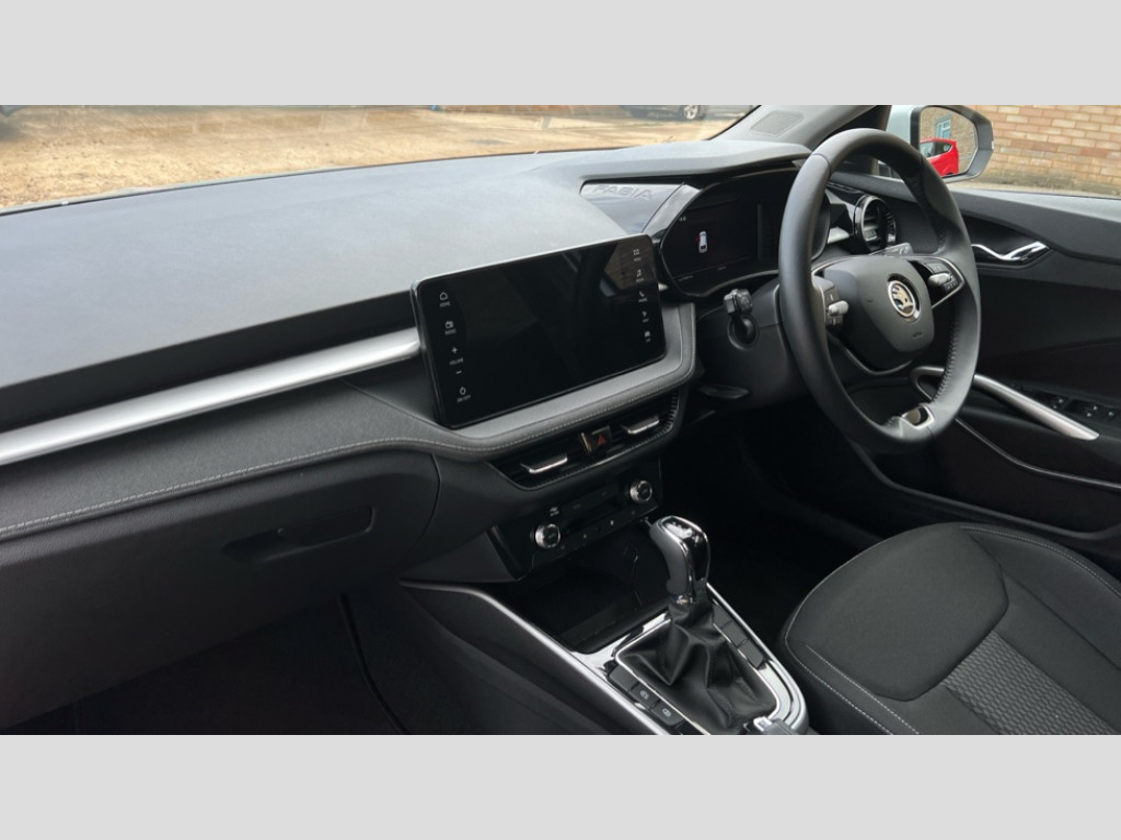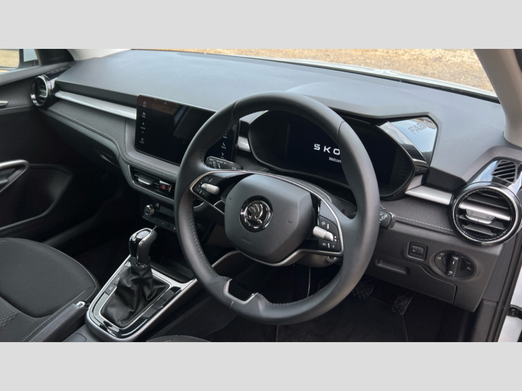 Skoda Fabia 1.5 TSI 150 SE L 5dr DSG - Wireless SmartLink for Apple CarPlay and Android Auto, Electric windows front and rear, Height adjustable front seats, Bluetooth, Dual zone air conditioning, Amundsen navigation system, Voice control Advanced driver attention and drowsiness monitor, Bluetooth connection, Electromechanical power steering, Exterior temperature gauge, Service interval indicator, Traffic sign recognition, Virtual cockpit with 10.25" colour display, Wireless SmartLink for Apple CarPlay and Android Auto, 6 Speakers (4 in front and 2 in rear), 9.2" colour display skoda navigation system with voice control and web radio, Auxiliary socket for external MP3 player, DAB digital radio reception, Auto dimming rear view mirror, Body colour door mirrors, Body coloured bumpers, Chrome window surround, Door mirror integrated indicators, Front and rear electric windows, Front window wiper intermittent control, Headlight range control - Automatic, Ice scraper in fuel cap, LED daytime running lights with coming and leaving home feature, LED rear lights, Privacy glass, Rear LED fog light, Rear side wing doors, Rear window wiper with washing nozzles, Roof mounted spoiler, SKODA tailgate lettering in chrome, Third brake light, 2 reading lights in front and 2 reading lights in rear, 3 rear headrests, Backrest split and folding, Central console with removable cup holder and storage box, Chrome handbrake release button, Comfort seats, Door sills with fabia badging, Dual zone air conditioning with climatronic electronic control, Fabric upholstery, Front centre armrest, Gearshift knob/handle in leather, Hand brake lever handle in leather, Height adjustable front headrests, Height adjustable front seats, Height adjustable steering wheel, ISOFIX and TopTether anchorage points to the outer rear seats, ISOFIX and TopTether on the front passenger seat, Luggage compartment lighting, Manually adjustable lumbar support in front seats, Metallic grey interior door handles, Pollen filter, Rear seat bench unsplit, Single front passenger seat, Storm grey headlining, Sun visors with mirror and airbag label on passenger side, Textile floor mats, Ticket holder, Umbrella in drivers door, 3-point height adjustable front seats belts with pretensioner and force limiter, Automatic warning lights in case of crash, Driver and passengers airbag with switch off function, e-Call+, ESC including ABS, MSR, ASR, EDS, HBA and XDS, Front and rear seat belt warning, FRONT ASSIST (AEB City and AEB Inter Urban), Front side airbags, Head airbags, Hill hold control, One tone horn, Pedestrian protection, Three rear 3-points safety seat belts with pretensioner and force limiter including stop function for outer rear seat belts, Tyre pressure monitoring system, Anti-theft alarm system including immobiliser, interior monitoring, backup horn, and towing protection, Central locking with radio remote control, interior controls, SAFE function and 2 foldable keys, Chrome edged air vents, Metallic grey central console cover, Metallic grey upper decorative trim, Satin black door and side trim panel in front, Textile microsuede grey lower decorative trim with art grey stitching, Anti-theft wheel bolts protection, Super-low rolling resistance tyres