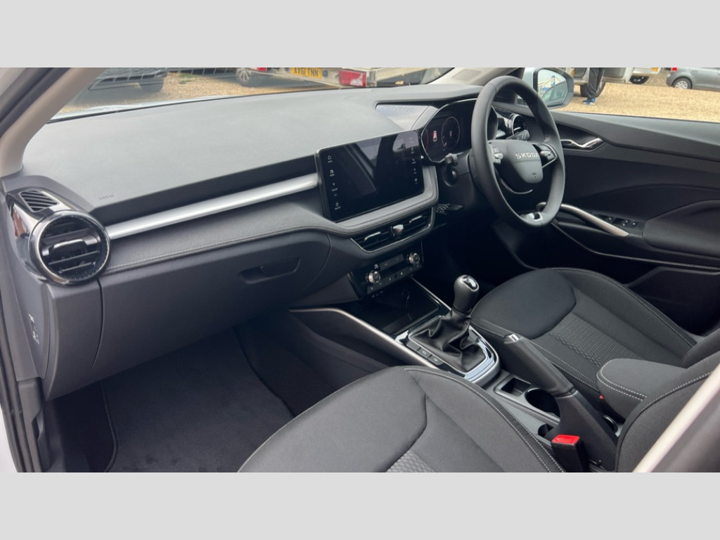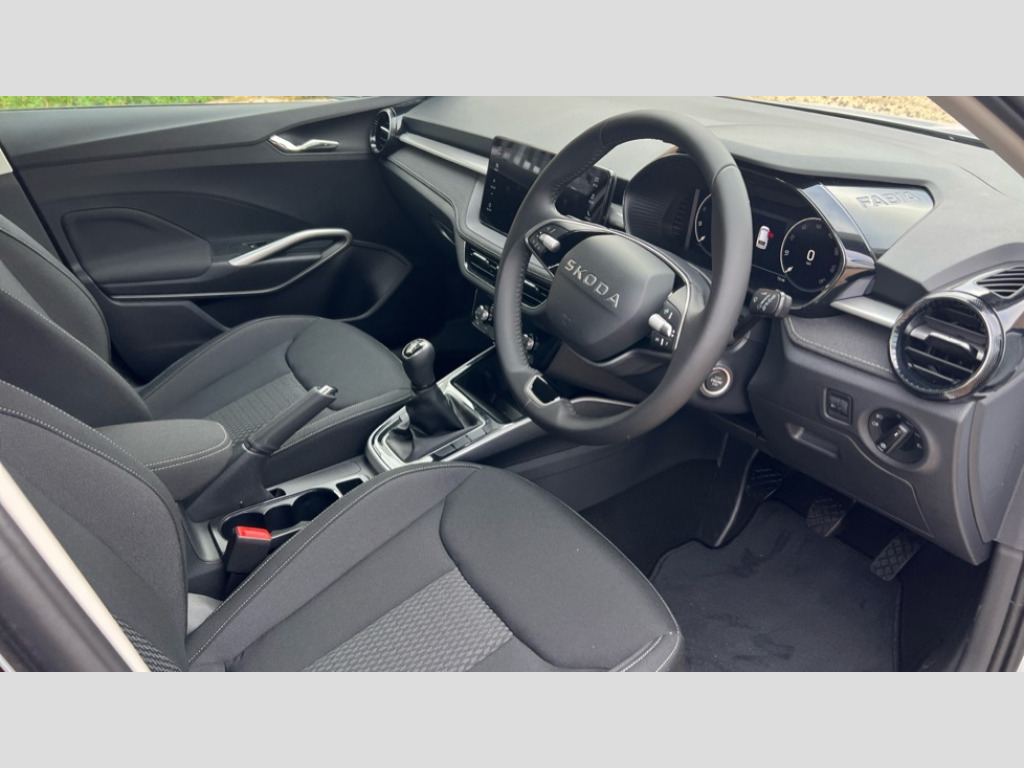 Skoda Fabia 1.0 TSI 116 SE L Edition 5dr Advanced driver attention and drowsiness monitor, Bluetooth connection, Driver alert system, Electromechanical power steering, Exterior temperature gauge, Service interval indicator, Traffic sign recognition, Virtual cockpit with 10.25" colour display, Wireless SmartLink for Apple CarPlay and Android Auto, 6 Speakers (4 in front and 2 in rear), 9.2" colour display skoda navigation system with voice control and web radio, Auxiliary socket for external MP3 player, DAB digital radio reception, Auto dimming rear view mirror, Body colour door mirrors, Body coloured bumpers, Chrome window surround, Door mirror integrated indicators, Front and rear electric windows, Front window wiper intermittent control, Headlight range control - Automatic, Ice scraper in fuel cap, LED 3rd brake light, LED daytime running lights with coming and leaving home feature, LED rear lights, Privacy glass, Rear LED fog light, Rear side wing doors, Rear window wiper with washing nozzles, Roof mounted spoiler, SKODA tailgate lettering in chrome, Unique dark chrome design logo on alloy wheels, 2 LED reading lights in front and rear, 3 rear headrests, Backrest split and folding, Central console with fixed cup holder and storage box, Chrome handbrake release button, Comfort seats, Door sills with fabia badging, Dual zone air conditioning with climatronic electronic control, Fabric upholstery, Front centre armrest, Gearshift knob/handle in leather, Grain satin black interior door handles, Hand brake lever handle in leather, Height adjustable front headrests, Height adjustable front seats, Height adjustable steering wheel, ISOFIX and TopTether anchorage points to the outer rear seats, ISOFIX and TopTether on the front passenger seat, Luggage compartment lighting, Manually adjustable lumbar support in front seats, Pollen filter, Rear seat bench unsplit, Single front passenger seat, Skoda lettering on steering wheel, Storm grey headlining, Sun visors with mirror and airbag label on passenger side, Textile floor mats, Ticket holder, Umbrella in drivers door, Ambient lighting pack - Fabia Hatchback, 3-point height adjustable front seats belts with pretensioner and force limiter, Automatic warning lights in case of crash, Driver and passengers airbag with switch off function, e-Call+, ESC including ABS, MSR, ASR, EDS, HBA and XDS, Front and rear seat belt warning, FRONT ASSIST (AEB City and AEB Inter Urban), Front side airbags, Head airbags, One tone horn, Pedestrian protection, Three rear 3-points safety seat belts with pretensioner and force limiter including stop function for outer rear seat belts, Tyre pressure monitoring system, Anti-theft alarm system including immobiliser, interior monitoring, backup horn, and towing protection, Central locking with radio remote control, interior controls, SAFE function and 2 foldable keys, Chrome edged air vents, Grain satin black central console cover, Metallic grey upper decorative trim, Satin black door and side trim panel in front, Textile microsuede grey lower decorative trim with art grey stitching, Anti-theft wheel bolts protection, Super-low rolling resistance tyres