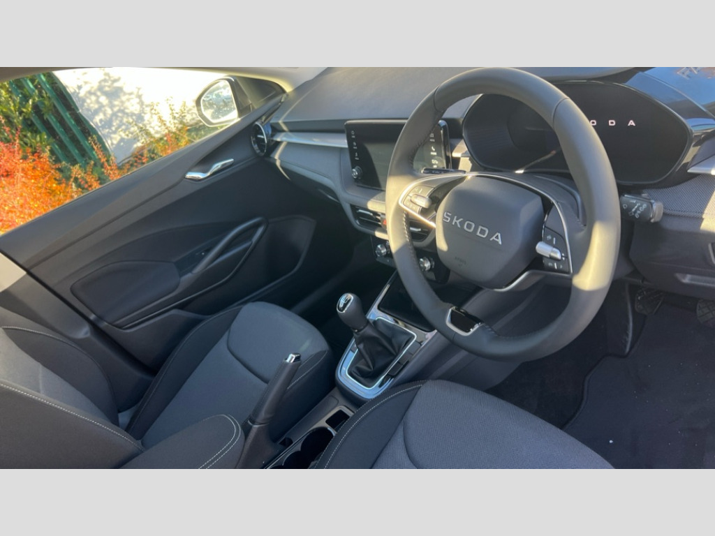 Skoda Fabia 1.0 TSI SE Edition 5dr 8" Digital instrument display, Advanced driver attention and drowsiness monitor, Bluetooth connection, Driver alert system, Electromechanical power steering, Exterior temperature gauge, Service interval indicator, Traffic sign recognition, Wireless SmartLink for Apple CarPlay and Android Auto, 6 Speakers (4 in front and 2 in rear), 8.25" Skoda infotainment touchscreen display, Auxiliary socket for external MP3 player, DAB digital radio reception, Auto dimming rear view mirror, Body colour door mirrors, Body coloured bumpers, Door mirror integrated indicators, Front and rear electric windows, Front window wiper intermittent control, Headlight range control - Automatic, LED 3rd brake light, LED daytime running lights with coming and leaving home feature, LED rear lights, Rear LED fog light, Rear side wing doors, Rear window wiper with washing nozzles, Roof mounted spoiler, SKODA tailgate lettering in chrome, Unique dark chrome design logo on alloy wheels, 2 reading lights in front and 2 reading lights in rear, 3 rear headrests, Backrest split and folding, Central console with removable cup holder and storage box, Chrome handbrake release button, Dual zone air conditioning with climatronic electronic control, Fabric upholstery, Front centre armrest, Gearshift knob/handle in leather, Grain satin black interior door handles, Hand brake lever handle in leather, Height adjustable front headrests, Height adjustable front seats, Height adjustable steering wheel, ISOFIX and TopTether anchorage points to the outer rear seats, ISOFIX and TopTether on the front passenger seat, Luggage compartment lighting, Manually adjustable lumbar support in front seats, Pollen filter, Rear seat bench unsplit, Single front passenger seat, Skoda lettering on steering wheel, Storm grey headlining, Sun visors with mirror and airbag label on passenger side, Textile floor mats, Ambient lighting pack - Fabia Hatchback, 3-point height adjustable front seats belts with pretensioner and force limiter, Automatic warning lights in case of crash, Driver and passengers airbag with switch off function, e-Call+, ESC including ABS, MSR, ASR, EDS, HBA and XDS, Front and rear seat belt warning, FRONT ASSIST (AEB City and AEB Inter Urban), Front side airbags, Head airbags, One tone horn, Pedestrian protection, Three rear 3-points safety seat belts with pretensioner and force limiter including stop function for outer rear seat belts, Tyre pressure monitoring system, Anti-theft alarm system including immobiliser, interior monitoring, backup horn, and towing protection, Central locking with radio remote control, interior controls, SAFE function and 2 foldable keys, Black painted air vents, Grain satin black central console cover, Metallic grey upper decorative trim, Satin black door and side trim panel in front, Textile Kota grey lower decorative inserts, Anti-theft wheel bolts protection, Super-low rolling resistance tyres