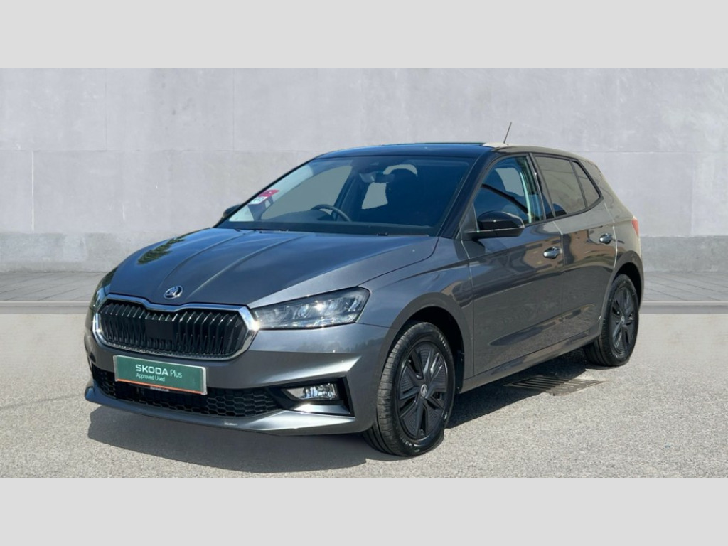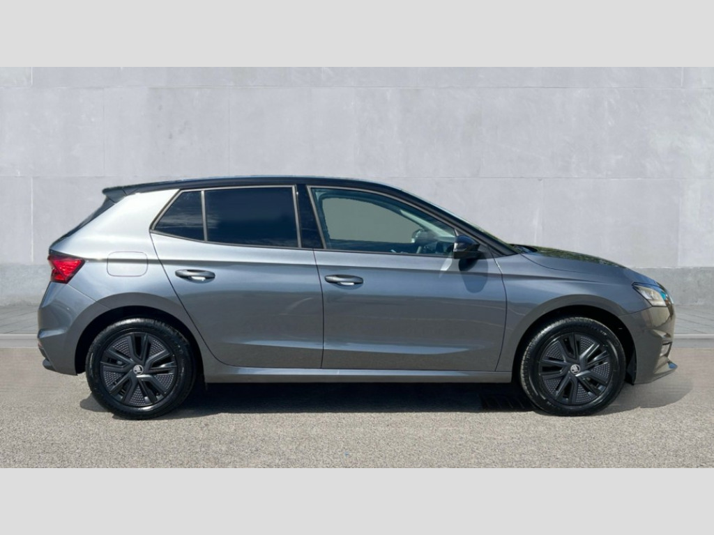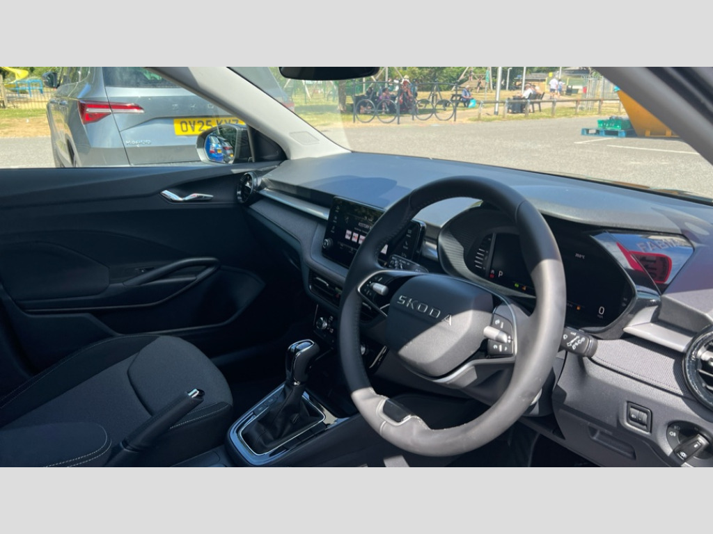 Skoda Fabia 1.5 TSI 150 Design Edition 5dr DSG Advanced driver attention and drowsiness monitor, Bluetooth connection, Electromechanical power steering, Exterior temperature gauge, Service interval indicator, Traffic sign recognition, Virtual cockpit with 10.25" colour display, Wireless SmartLink for Apple CarPlay and Android Auto, 6 Speakers (4 in front and 2 in rear), Auxiliary socket for external MP3 player, DAB digital radio reception, Auto dimming rear view mirror, Body coloured bumpers, Door mirror integrated indicators, Front and rear electric windows, Front window wiper intermittent control, Headlight range control - Automatic, Ice scraper in fuel cap, LED 3rd brake light, LED daytime running lights with coming and leaving home feature, LED rear lights, Privacy glass, Rear LED fog light, Rear side wing doors, Rear window wiper with washing nozzles, Roof mounted spoiler, SKODA tailgate lettering in chrome, Unique dark chrome design logo on alloy wheels, 2 reading lights in front and 2 reading lights in rear, 3 rear headrests, Backrest split and folding, Central console with removable cup holder and storage box, Chrome handbrake release button, Dual zone air conditioning with climatronic electronic control, Fabric upholstery, Front centre armrest, Gearshift knob/handle in leather, Grain satin black interior door handles, Hand brake lever handle in leather, Height adjustable front headrests, Height adjustable front seats, Height adjustable steering wheel, ISOFIX and TopTether anchorage points to the outer rear seats, ISOFIX and TopTether on the front passenger seat, Luggage compartment lighting, Manually adjustable lumbar support in front seats, Pollen filter, Rear seat bench unsplit, Single front passenger seat, Skoda lettering on steering wheel, Storm grey headlining, Sun visors with mirror and airbag label on passenger side, Textile floor mats, Ticket holder, Umbrella in drivers door, 3-point height adjustable front seats belts with pretensioner and force limiter, Automatic warning lights in case of crash, Driver and passengers airbag with switch off function, e-Call+, ESC including ABS, MSR, ASR, EDS, HBA and XDS, Front and rear seat belt warning, FRONT ASSIST (AEB City and AEB Inter Urban), Front side airbags, Head airbags, Hill hold control, One tone horn, Pedestrian protection, Three rear 3-points safety seat belts with pretensioner and force limiter including stop function for outer rear seat belts, Tyre pressure monitoring system, Anti-theft alarm system including immobiliser, interior monitoring, backup horn, and towing protection, Central locking with radio remote control, interior controls, SAFE function and 2 foldable keys, Black painted air vents, Grain satin black central console cover, Metallic grey upper decorative trim, Satin black door and side trim panel in front, Textile Kota grey lower decorative inserts, Anti-theft wheel bolts protection, Super-low rolling resistance tyres