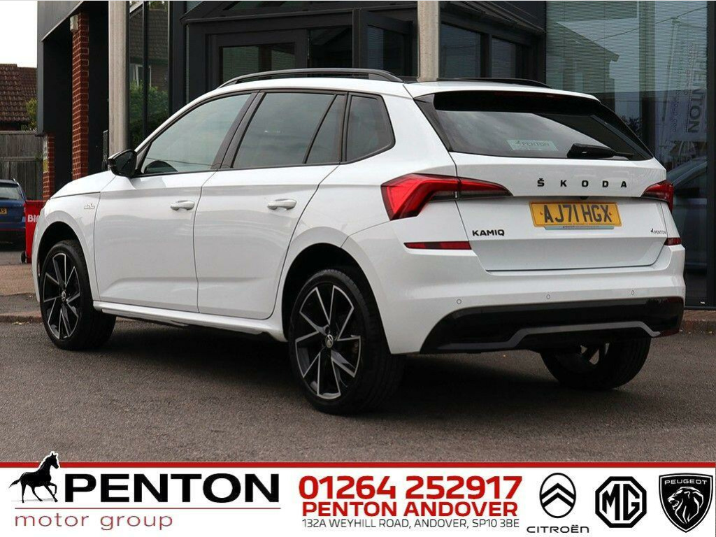 LOW MILEAGE, 2022 CAR, ADDITIONAL FACTORY OPTION of REAR VIEW CAMERA, TOP MONTE CARLO SPEC with the FUEL EFFICIENT 1.0 TSi 110 hp PETROL ENGINE, PANORAMIC SUNROOF, SATELLITE NAVIGATION, TOUCHSCREEN with WIRELESS APPLE CARPLAY and ANDROID AUTO, CRUISE CONTROL, AIR CON, BLUETOOTH, PARKING SENSORS, PRIVACY GLASS, 18in VEGA BLACK ALLOYS, FULL SKODA SERVICE HISTORY, ONE OWNER from NEW, LOOKS STUNNING in MOON WHITE METALLIC with BLACK ROOF, ASK ABOUT OUR 3 YEAR PENTON SERVICE PLAN NOW ONLY £699, We have a team of buyers who work very hard to make sure we have the most desirable vehicles in great condition and at the best prices as a result we sell cars to people all over the country, We're a Main Dealer Group in business for over 30 years who are serious about used cars with over 250 physical all make used cars on each site so you can trust all cars are prepared to MAIN DEALER STANDARDS, This vehicle is HPI CLEAR and a FULLY CHECKED Penton Motor Group Approved Used Car. All of our cars are Finance Clear and we never sell write offs, Most cars will be ready to DRIVE AWAY TODAY with 7 Days Free Driveaway Insurance. Finance Available. ALL PART EXCHANGES WELCOME. Warranty Included. THE PENTON WHOLESALE PRICE:. 12V Socket on Central Console, 18in Alloy Wheels - Vega Black, 2 USB-C Ports, 3-Spoke Leather Sports Multi-Function Steering Wheel, ABS - Anti-Lock Braking System, Air Vents with Chrome Surround, Airbags - Passenger Deactivation Switch, Alarm with SAFE Function for Central Locking, Aluminium Pedals, Ambient Lighting White, Anti-Theft Locking Wheel Bolts, Black Ceiling for Black/ Beige Interior, Black Lettering on Boot Lid, Black Radiator Grille and Door Mirrors, Black Roof Rails, Bluetooth, Body Coloured Roof Spoiler, Carbon Effect Dashboard Inserts, Care Connect and Infotainment Online 1 Year, Chrome Interior Door Handles, Chrome Moulding around Grille, Cruise Control, DAB Radio, Door Handles - Body Coloured, Driver and Front Passenger Airbag, Electrically Adjustable and Heated Door Mirrors, Front Assistant, Front Centre Armrest, Front and Rear Electric Windows, Full LED Headlights, Gesture Control, Glove Compartment - Illuminated, HHC - Hill Hold Control, Headlights - Range Adjustment, Heated Rear Windscreen, Height Adjustable Driver and Front Passenger Seat - Manual, ISOFIX Child Seat Preparation - Front Passenger, ISOFIX Child Seat Preparation - Outer Rear, Ice Scraper, Kamiq Door Sills, Lane Assistant, Leather Gear Shift Lever, Light Sensors, Manual Air Conditioning with Pollen Filter, Manual Lumbar Support for Front Seats, Manual Parking Brake, Monte Carlo Plaque, One Tone Horn, Panoramic Sunroof with Black Roof Rails, Power Steering, Privacy Glass, Reading Lights - Front and Rear, Rear Diffuser - Black, Rear Disc Brakes, Rear Fog Lights, Rear LED Lights with Dynamic Indicators - High Functionality, Rear Parking Sensors, Satellite Navigation - Amundsen System, Seatbelt Reminder for Driver and Co-Driver, Seats - Front Passenger Height Adjustment, Side Airbags in Front with Curtain Airbags, Skoda Proactive Services, Speakers x8, Speed Limiter, Sports Bumpers, Sun Visors with Illumination on Front Passenger Side, TPMS - Tyre Pressure Monitoring System, Textile Floor Mats, Third Rear Headrest, Top Tether for Front Passenger Seat, Trip Computer - Black and White, Tyre Repair Kit, Umbrella in Driver Side Door, Virtual Cockpit, Wireless Smartlink for Apple CarPlay, e-Call, Rear View Camera, Monte Carlo-Cloth - Black. Full dealership history
