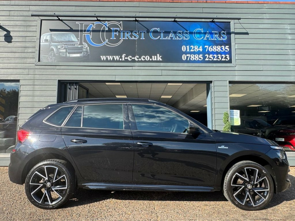 THIS SKODA KAMIQ MONTE CARLO EDITION COMES WITH A PANORAMIC GLASS ROOF, NAVIGATION AND DRIVER ASSISTANCE ALSO WITH OTHER GREAT FEATURES INCLUDING TOUCHSCREEN INTERFACE. COMES WITH 6 MONTHS RAC WARRANTY AND 12 MONTHS ROADSIDE ASSISTANCE, WITH AN OPTION TO EXTEND THE WARRANTY UPTO 36 MONTHS. PLEASE CALL FOR A BESPOKE FINANCE DEAL WITH RATES FROM 8.9%APR STS AND PROFILE CHECKS. ALL FINANCE IS REGULATED BY FCA AND WE MAY RECEIVE A COMMISSION FROM THE LENDER ON INTRO TO THEM. OPEN 6 DAYS A WEEK, CLOSED ON SUNDAYS Black Magic, 12V Socket on Central Console, 18in Alloy Wheels - Vega Black, 2 USB-C Ports, 3-Spoke Leather Sports Multi-Function St, ABS - Anti-Lock Braking System, Airbags - Passenger Deactivation Switch, Alarm with SAFE Function for Central Loc, Aluminium Pedals, Ambient Lighting White, Amundsen Satellite Navigation with 9.2in, Anti-Theft Locking Wheel Bolts, Black Ceiling for Black/ Beige Interior, Black Lettering on Boot Lid, Black Roof Lining, Black Roof Rails - Door Mirrors and Radi, Bluetooth, Body Coloured Roof Spoiler, Bumpers - Body Coloured, Carbon Effect Dashboard Inserts, Chrome Interior Door Handles, Cruise Control, DAB Radio, Dimming Rear View Mirror with Black Surr, Driver an