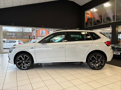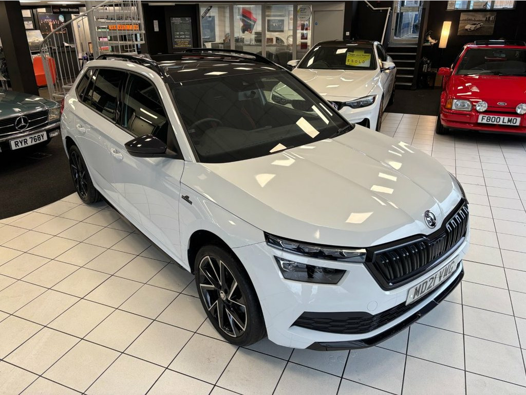 This Skoda Kamiq Monte Carlo SUV is a great example and a true credit to its previous owner, who has taken excellent care of the vehicle. It is presented in very clean condition both inside and out and, as you would expect, drives spot on, with everything working exactly as it should. This is further reinforced by holding a comprehensive service history, with its last service done by VW group specialists at 17,740 miles. This vehicle is also due to go through a fresh MOT and service with us, at its current mileage. In addition to its excellent condition, this Skoda Kamiq comes with a great level of spec. Features include: 3-Spoke Leather Sports Multi-Function Steering Wheel, Amundsen Satellite Navigation with 9.2in Touchscreen Display with Virtual Cockpit - Web Radio - Voice Control, Bluetooth, Cruise Control, Manual Air Conditioning, Lane Assistant, Privacy Glass, Rear Parking Sensors, Panoramic Sunroof with Black Roof Rails, Wireless Smartlink, Tyre Pressure Monitoring System and more. The car comes complete with two keys, an 82-point health check, a 6-month warranty (extendable up to 3 years), and an HPI clear certificate. As this is a used vehicle, please ensure any specific features important to you are confirmed prior to purchase by speaking directly with a member of our sales team. For high-definition photos, please visit our website. Please note that we also use AI-generated first images, so the initial image may not be a true representation of the vehicle. If you ha Moon White, 12V Socket on Central Console, 18in Alloy Wheels - Vega Black, 2 USB-C Ports, 3-Spoke Leather Sports Multi-Function St, ABS - Anti-Lock Braking System, Air Vents with Chrome Surround, Airbags - Passenger Deactivation Switch, Alarm with SAFE Function for Central Loc, Aluminium Pedals, Ambient Lighting White, Amundsen Satellite Navigation with 9.2in, Anti-Theft Locking Wheel Bolts, Black Ceiling for Black/ Beige Interior, Black Lettering on Boot Lid, Black Roof Lining, Black Roof Rails - Door Mirrors and Radi, Bluetooth, Body Coloured Roof Spoiler, Bumpers - Body Coloured, Carbon Effect Dashboard Inserts, Chrome Interior Door Handles, Cruise Control, DAB Radio, Dimming Rear View Mi