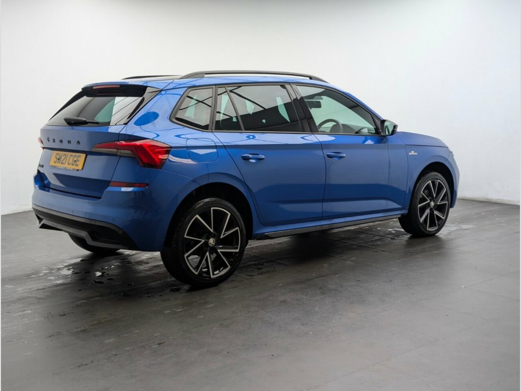 Navigation, Panoramic roof, Upgraded sound system, Android Auto and Cruise control. 3 services - last service done at 21379 miles on 07/08/2024. This 2021 Skoda Kamiq TSI Monte Carlo offers exceptional provenance with only one owner and a remarkably low mileage of 30,000 miles. This Euro 6 compliant 1.5 litre petrol model boasts a clear vehicle history check and an MOT valid until August 2026, providing peace of mind. Inside, you'll find a host of convenient features including Bluetooth connectivity, rear parking sensors for easier manoeuvring, and manual air conditioning with a pollen filter to keep the cabin fresh. The exterior is enhanced by full LED headlights for improved visibility and a striking panoramic sunroof complemented by black roof rails. Experience impressive performance with this Kamiq, achieving 0-60mph in just 7.9 seconds, a highlight that shows its responsiveness compared to similar vehicles. Its fuel economy is also a strong point, delivering an excellent 47 miles per gallon, and it benefits from low CO2 emissions. These highlights demonstrate that this Skoda Kamiq is a well maintained and efficient choice for your next vehicle. 12V Socket on Central Console, 18in Alloy Wheels - Vega Black, 2 USB-C Ports, 3-Spoke Leather Sports Multi-Function St, ABS - Anti-Lock Braking System, Air Vents with Chrome Surround, Airbags - Passenger Deactivation Switch, Alarm with SAFE Function for Central Loc, Aluminium Pedals, Ambient Lighting White, Amundsen Satellite Navigation with 9.2in, Anti-Theft Locking Wheel Bolts, Black Ceiling for Black/ Beige Interior, Black Lettering on Boot Lid, Black Roof Lining, Black Roof Rails - Door Mirrors and Radi, Bluetooth, Body Coloured Roof Spoiler, Bumpers - Body Coloured, Carbon Effect Dashboard Inserts, Chrome Interior Door Handles, Cruise Control, DAB Radio, Dimming Rear View Mirror with Bl