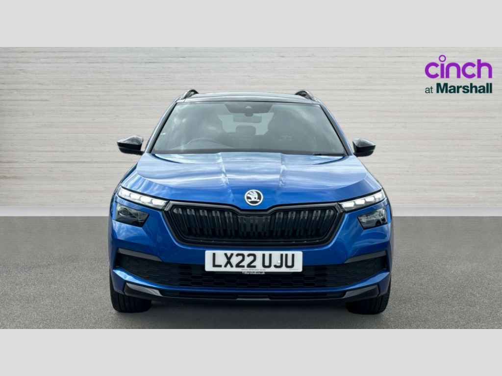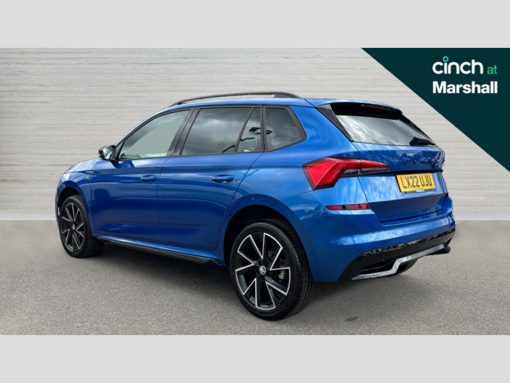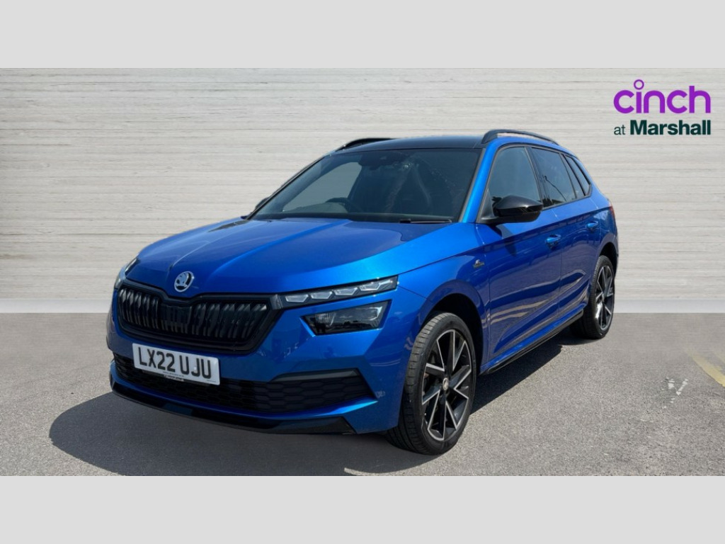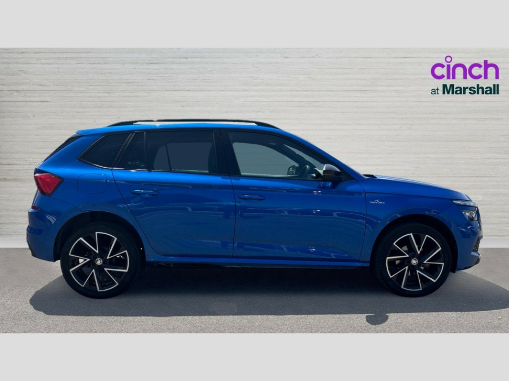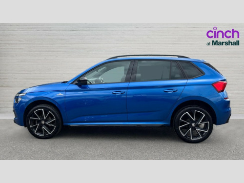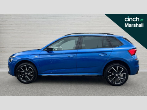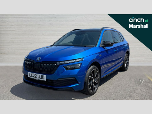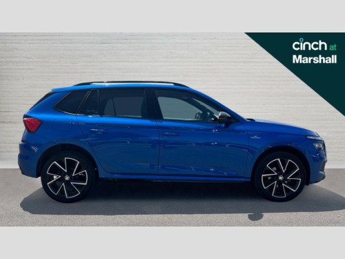 Skoda Kamiq 1.0 TSI 110 Monte Carlo 5dr DSG Amundsen satellite navigation with 9.2" touchscreen display, voice control, virtual cockpit and web radio, Bluetooth system, E-call, Front assist system, Gesture control, PAS, Service indicator, Speed limiter, Virtual cockpit with 10.25" display, Wireless SmartLink for apple car play, android auto and mirrorlink, 8 Speakers, Auxiliary input socket, DAB Digital radio, Black door mirrors, Black radiator grille, Black rear diffuser, Body colour bumpers, Body colour door handles, Body colour roof spoiler, Boot lettering in black, Chrome grille surround, Dimming rear view mirror with black surround, Electrically adjustable and heated door mirrors, Fixed panoramic sunroof with black roof rails, Front and rear electric windows, Front sport bumper, Full LED headlights with adaptive front light system, dynamic indicators, cornering function and fog lights, Headlight range control, Heated rear window, High functionality rear led lights with dynamic indicators, KAMIQ Door sills, Light sensors, Monte carlo plaque, Privacy glass, Rear fog lights, Rear side wing doors, Rear wiper, 12V Accessory socket in centre console, 3 seat bench in 2nd row, Aluminium pedals, Black ceiling for black/beige interior, Chrome inner door handles, Cloth upholstery, Front head restraints, Glove compartment with illumination, Ice scraper, Isofix child seat fittings on outer rear seats, ISOFIX on front passenger seat, Leather gear lever, Manual lumbar support for front seats, Rake/reach adjustable steering wheel, Reading lights, Single front passenger seat, Sports seats, Sun visors with illumination on front passenger, Textile floor mats, Third rear headrest, Top tether for front passenger seat, Umbrella in driver's door, 3x3 point rear seatbelts, Airbags - driver and front passenger, ESP, Front passenger airbag deactivation switch, Front side airbags with curtain airbags, Hill hold control, Manual parking brake, Manual rear child locks, One tone horn, Rear disc brakes, Seatbelt reminder for driver an co-driver, Traction control, Tyre pressure monitor, Anti-theft alarm system with interior monitoring, backup horn, towing protection and remote central locking with SAFE system, Anti-theft wheel bolts, Electronic engine immobilizer, Chrome air vent surrounds, 18" Vega alloy wheels in black