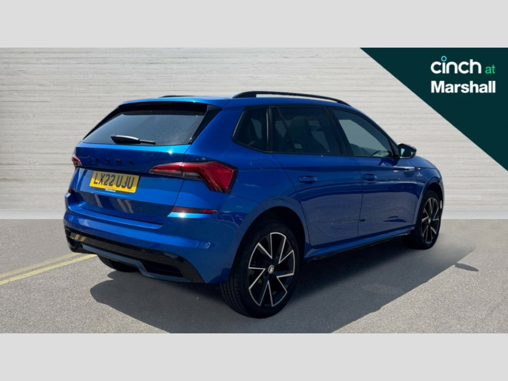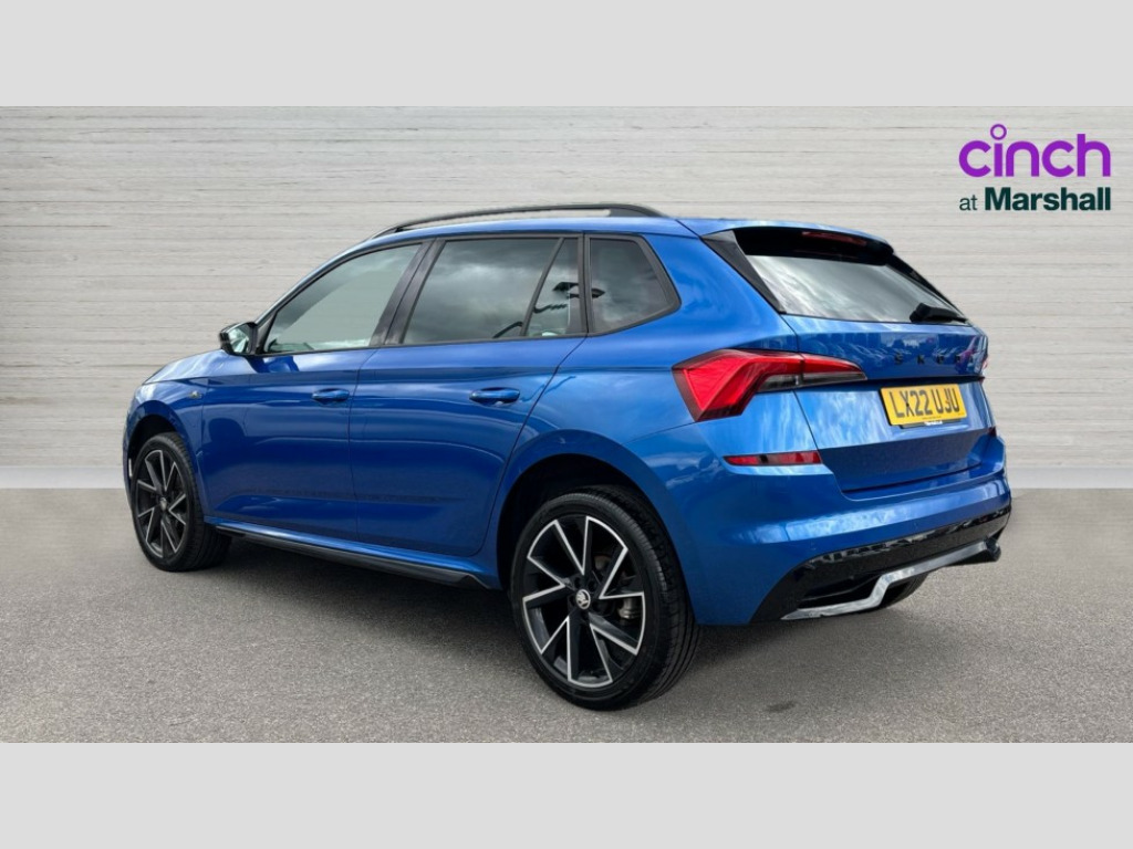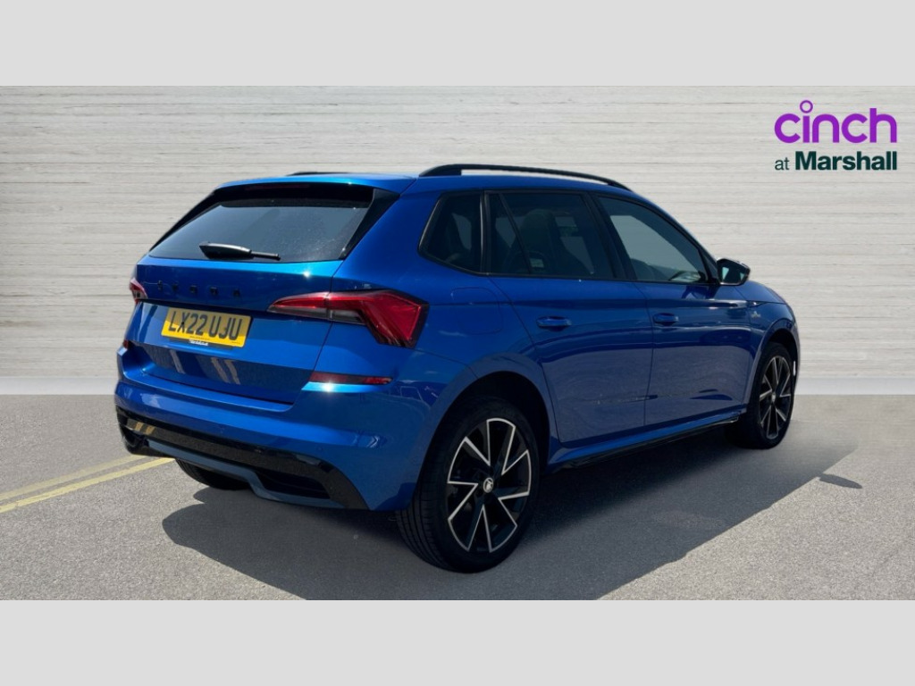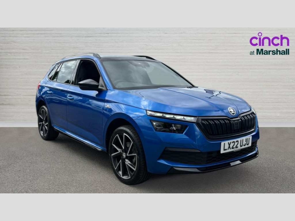 Skoda Kamiq 1.0 TSI 110 Monte Carlo 5dr DSG Amundsen satellite navigation with 9.2" touchscreen display, voice control, virtual cockpit and web radio, Bluetooth system, E-call, Front assist system, Gesture control, PAS, Service indicator, Speed limiter, Virtual cockpit with 10.25" display, Wireless SmartLink for apple car play, android auto and mirrorlink, 8 Speakers, Auxiliary input socket, DAB Digital radio, Black door mirrors, Black radiator grille, Black rear diffuser, Body colour bumpers, Body colour door handles, Body colour roof spoiler, Boot lettering in black, Chrome grille surround, Dimming rear view mirror with black surround, Electrically adjustable and heated door mirrors, Fixed panoramic sunroof with black roof rails, Front and rear electric windows, Front sport bumper, Full LED headlights with adaptive front light system, dynamic indicators, cornering function and fog lights, Headlight range control, Heated rear window, High functionality rear led lights with dynamic indicators, KAMIQ Door sills, Light sensors, Monte carlo plaque, Privacy glass, Rear fog lights, Rear side wing doors, Rear wiper, 12V Accessory socket in centre console, 3 seat bench in 2nd row, Aluminium pedals, Black ceiling for black/beige interior, Chrome inner door handles, Cloth upholstery, Front head restraints, Glove compartment with illumination, Ice scraper, Isofix child seat fittings on outer rear seats, ISOFIX on front passenger seat, Leather gear lever, Manual lumbar support for front seats, Rake/reach adjustable steering wheel, Reading lights, Single front passenger seat, Sports seats, Sun visors with illumination on front passenger, Textile floor mats, Third rear headrest, Top tether for front passenger seat, Umbrella in driver's door, 3x3 point rear seatbelts, Airbags - driver and front passenger, ESP, Front passenger airbag deactivation switch, Front side airbags with curtain airbags, Hill hold control, Manual parking brake, Manual rear child locks, One tone horn, Rear disc brakes, Seatbelt reminder for driver an co-driver, Traction control, Tyre pressure monitor, Anti-theft alarm system with interior monitoring, backup horn, towing protection and remote central locking with SAFE system, Anti-theft wheel bolts, Electronic engine immobilizer, Chrome air vent surrounds, 18" Vega alloy wheels in black