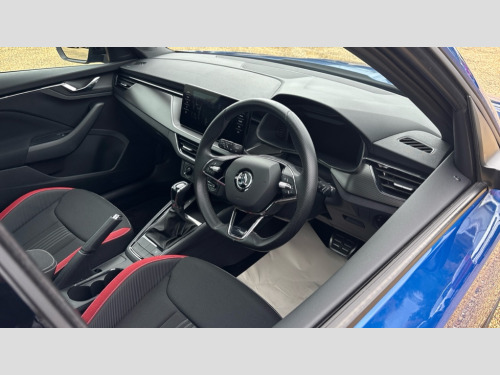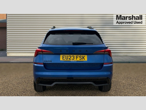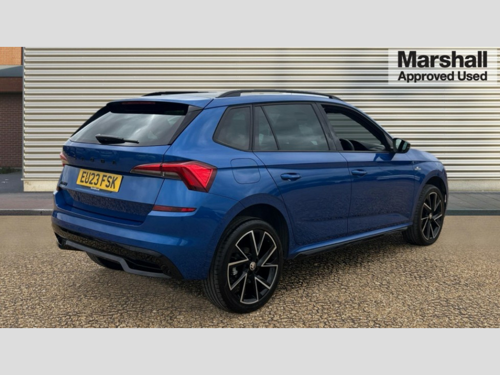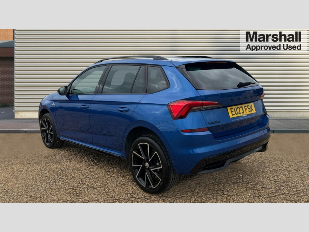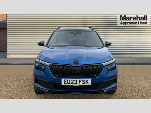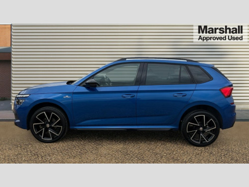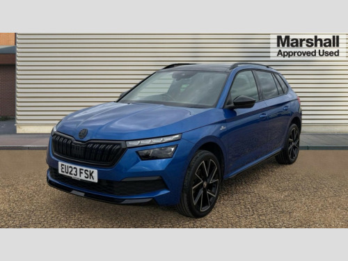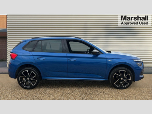 Skoda Kamiq 1.0 TSI 110 Monte Carlo 5dr DSG Amundsen satellite navigation with 9.2" glass colour touchscreen display, web radio, voice control and traffic sign recognition, Bluetooth system, E-call, Front assist system, Gesture control, PAS, Service indicator, Speed limiter, Wireless SmartLink for apple car play, android auto and mirrorlink, 8 Speakers, Auxiliary input socket, DAB Digital radio, Black door mirrors, Black radiator grille, Black rear diffuser, Body colour bumpers, Body colour door handles, Body colour roof spoiler, Boot lettering in black, Chrome grille surround, Dimming rear view mirror with black surround, Electrically adjustable and heated door mirrors, Fixed panoramic sunroof with black roof rails, Front and rear electric windows, Front sport bumper, Full LED headlights with adaptive front light system and front cornering fog lights, Headlight range control, Heated rear window, High functionality rear led lights with dynamic indicators, KAMIQ Door sills, LED daytime running lights, LED third brake light, Light sensors, Monte carlo plaque, Privacy glass, Rain sensor, Rear fog lights, Rear side wing doors, Rear wiper, 12V Accessory socket in centre console, 3 seat bench in 2nd row, Aluminium pedals, Black ceiling for black/beige interior, Black roof lining, Chrome inner door handles, Cloth upholstery, Front head restraints, Glove compartment with illumination, Ice scraper, Isofix child seat fittings on outer rear seats, ISOFIX on front passenger seat, Leather gear lever, Manual lumbar support for front seats, Rake/reach adjustable steering wheel, Reading lights, Single front passenger seat, Sports seats, Sun visors with illumination on front passenger, Textile floor mats, Third rear headrest, Top tether for front passenger seat, Umbrella in driver's door, 3x3 point rear seatbelts, Airbags - driver and front passenger, ESP, Front passenger airbag deactivation switch, Front side airbags with curtain airbags, Hill hold control, Manual parking brake, Manual rear child locks, One tone horn, Rear disc brakes, Seatbelt reminder for driver an co-driver, Traction control, Tyre pressure monitor, Anti-theft alarm system with interior monitoring, backup horn, towing protection and remote central locking with SAFE system, Anti-theft wheel bolts, Electronic engine immobilizer, Chrome air vent surrounds, 18" Vega alloy wheels in black