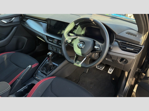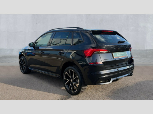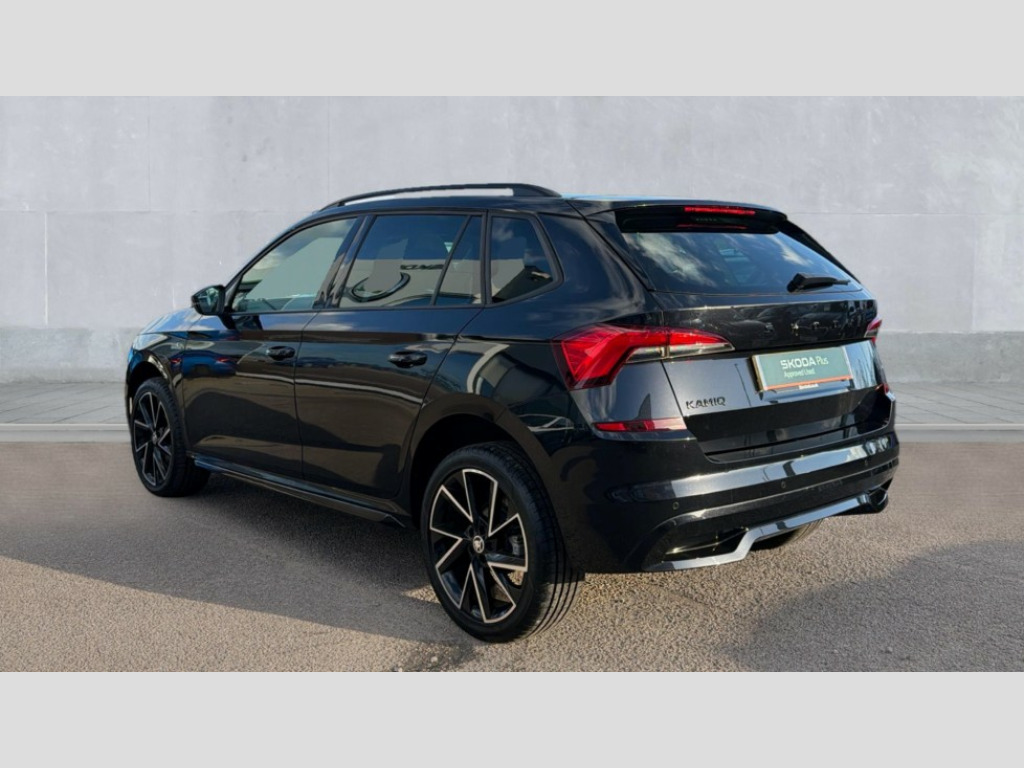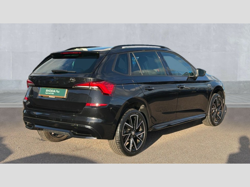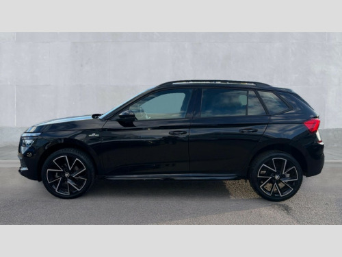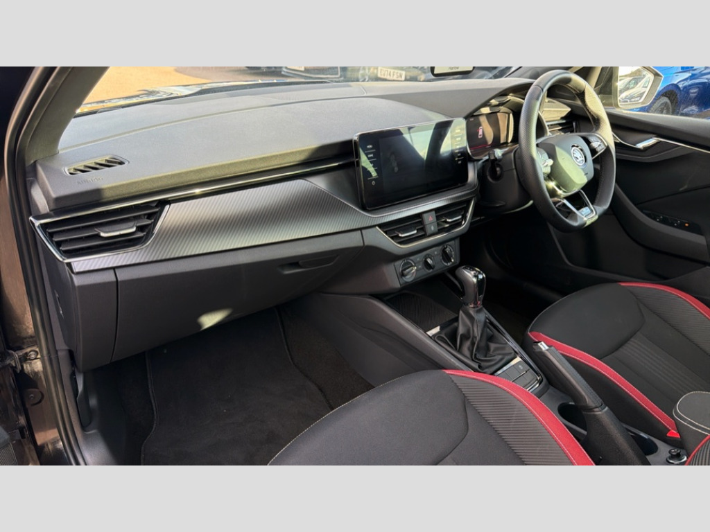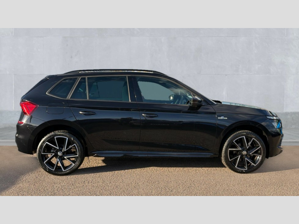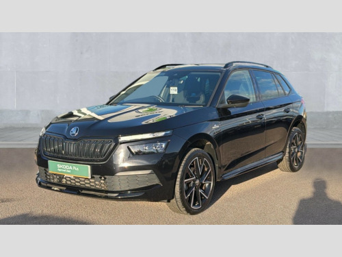 Skoda Kamiq 1.0 TSI 110 Monte Carlo 5dr DSG Amundsen satellite navigation with 9.2" glass colour touchscreen display, web radio, voice control and traffic sign recognition, Bluetooth system, E-call, Front assist system, Gesture control, PAS, Service indicator, Speed limiter, Wireless Smartlink for Apple CarPlay (wired for Android Auto), 8 Speakers, Auxiliary input socket, DAB Digital radio, Black door mirrors, Black radiator grille, Black rear diffuser, Body colour bumpers, Body colour door handles, Body colour roof spoiler, Boot lettering in black, Chrome grille surround, Dimming rear view mirror with black surround, Electrically adjustable and heated door mirrors, Fixed panoramic sunroof with black roof rails, Front and rear electric windows, Front sport bumper, Full LED headlights with adaptive front light system, cornering function, fog lights and dynamic indicators, Headlight range control, Heated rear window, High functionality rear led lights with dynamic indicators, KAMIQ Door sills, LED daytime running lights, LED third brake light, Light sensors, Monte carlo plaque, Privacy glass, Rain sensor, Rear fog lights, Rear side wing doors, Rear wiper, 12V Accessory socket in centre console, 3 seat bench in 2nd row, Aluminium pedals, Black ceiling for black/beige interior, Black roof lining, Chrome inner door handles, Cloth upholstery, Front head restraints, Glove compartment with illumination, Ice scraper, Isofix child seat fittings on outer rear seats, ISOFIX on front passenger seat, Leather gear lever, Manual lumbar support for front seats, Rake/reach adjustable steering wheel, Reading lights, Single front passenger seat, Sports seats, Sun visors with illumination on front passenger, Textile floor mats, Third rear headrest, Top tether for front passenger seat, Umbrella in driver's door, 3x3 point rear seatbelts, Airbags - driver and front passenger, ESP, Front passenger airbag deactivation switch, Front side airbags with curtain airbags, Hill hold control, Manual parking brake, Manual rear child locks, One tone horn, Rear disc brakes, Seatbelt reminder for driver an co-driver, Traction control, Tyre pressure monitor, Anti-theft alarm system with interior monitoring, backup horn, towing protection and remote central locking with SAFE system, Anti-theft wheel bolts, Electronic engine immobilizer, Chrome air vent surrounds, 18" Vega alloy wheels in black