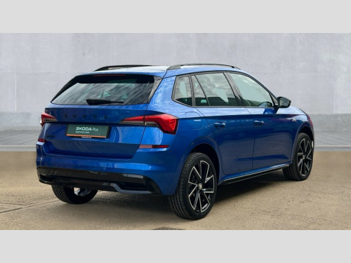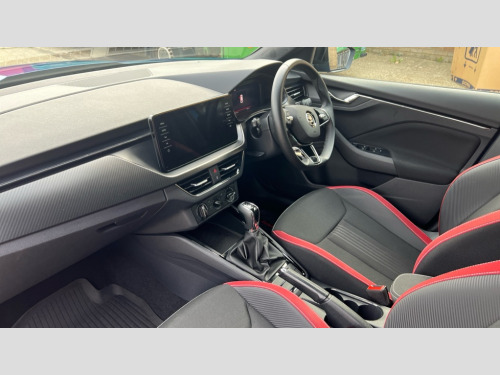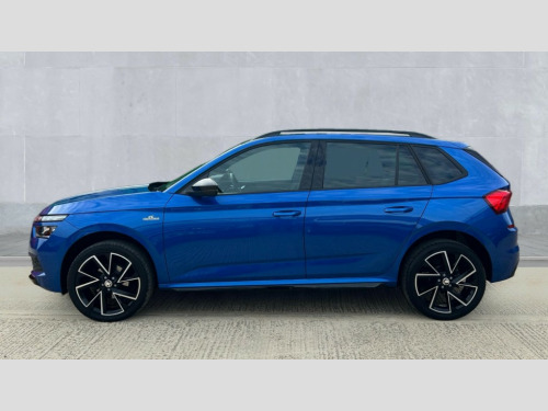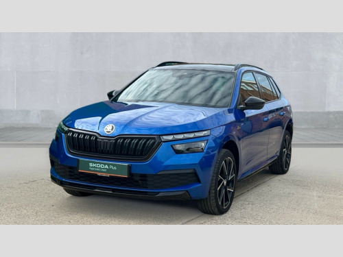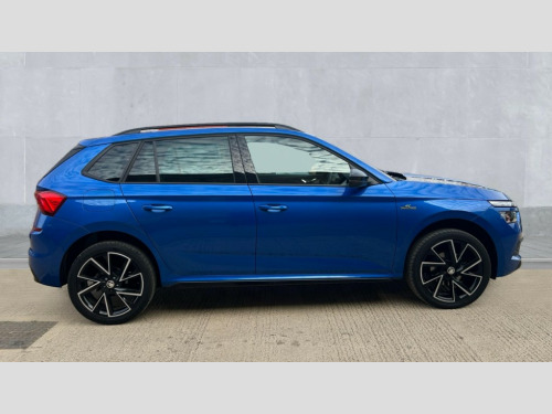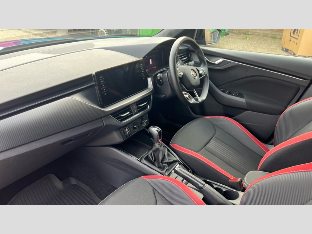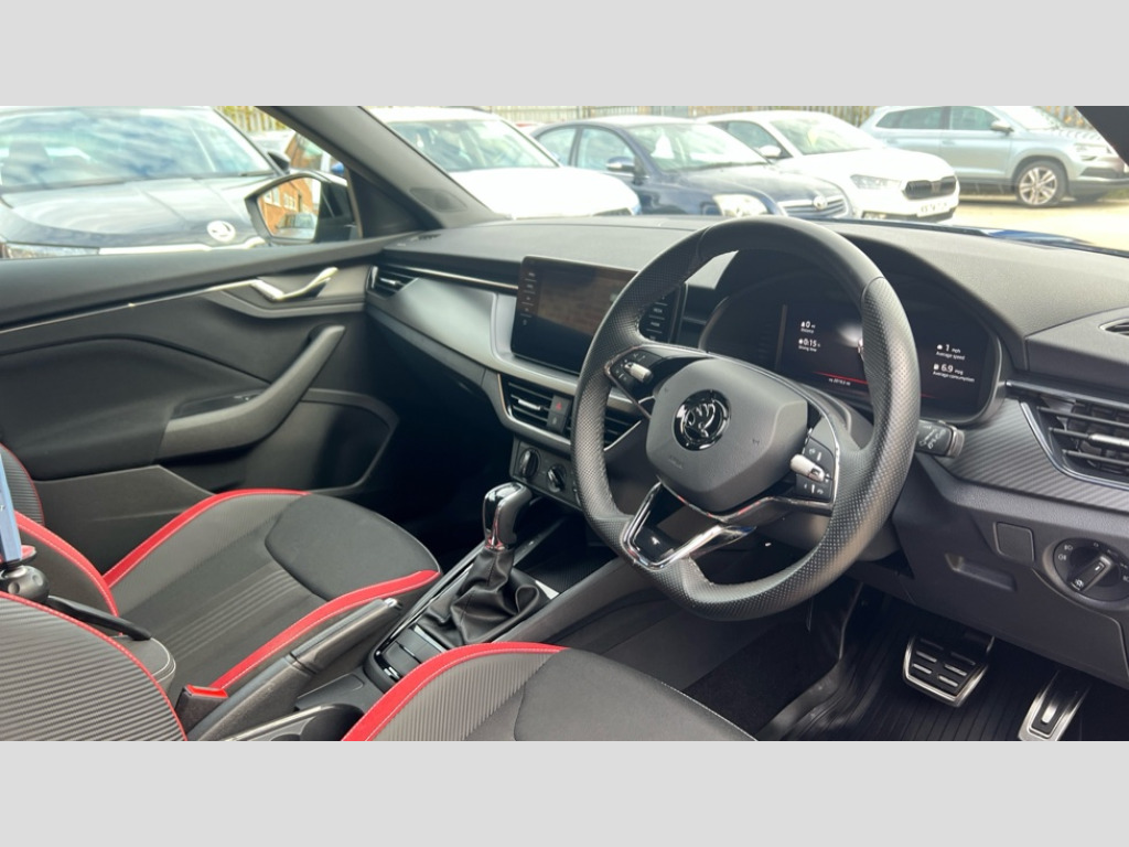 Skoda Kamiq 1.0 TSI 110 Monte Carlo 5dr DSG Amundsen satellite navigation with 9.2" glass colour touchscreen display, web radio, voice control and traffic sign recognition, Bluetooth system, E-call, Front assist system, Gesture control, PAS, Service indicator, Speed limiter, Wireless SmartLink for apple car play, android auto and mirrorlink, 8 Speakers, Auxiliary input socket, DAB Digital radio, Black door mirrors, Black radiator grille, Black rear diffuser, Body colour bumpers, Body colour door handles, Body colour roof spoiler, Boot lettering in black, Chrome grille surround, Dimming rear view mirror with black surround, Electrically adjustable and heated door mirrors, Fixed panoramic sunroof with black roof rails, Front and rear electric windows, Front sport bumper, Full LED headlights with adaptive front light system and front cornering fog lights, Headlight range control, Heated rear window, High functionality rear led lights with dynamic indicators, KAMIQ Door sills, LED daytime running lights, LED third brake light, Light sensors, Monte carlo plaque, Privacy glass, Rain sensor, Rear fog lights, Rear side wing doors, Rear wiper, 12V Accessory socket in centre console, 3 seat bench in 2nd row, Aluminium pedals, Black ceiling for black/beige interior, Black roof lining, Chrome inner door handles, Cloth upholstery, Front head restraints, Glove compartment with illumination, Ice scraper, Isofix child seat fittings on outer rear seats, ISOFIX on front passenger seat, Leather gear lever, Manual lumbar support for front seats, Rake/reach adjustable steering wheel, Reading lights, Single front passenger seat, Sports seats, Sun visors with illumination on front passenger, Textile floor mats, Third rear headrest, Top tether for front passenger seat, Umbrella in driver's door, 3x3 point rear seatbelts, Airbags - driver and front passenger, ESP, Front passenger airbag deactivation switch, Front side airbags with curtain airbags, Hill hold control, Manual parking brake, Manual rear child locks, One tone horn, Rear disc brakes, Seatbelt reminder for driver an co-driver, Traction control, Tyre pressure monitor, Anti-theft alarm system with interior monitoring, backup horn, towing protection and remote central locking with SAFE system, Anti-theft wheel bolts, Electronic engine immobilizer, Chrome air vent surrounds, 18" Vega alloy wheels in black
