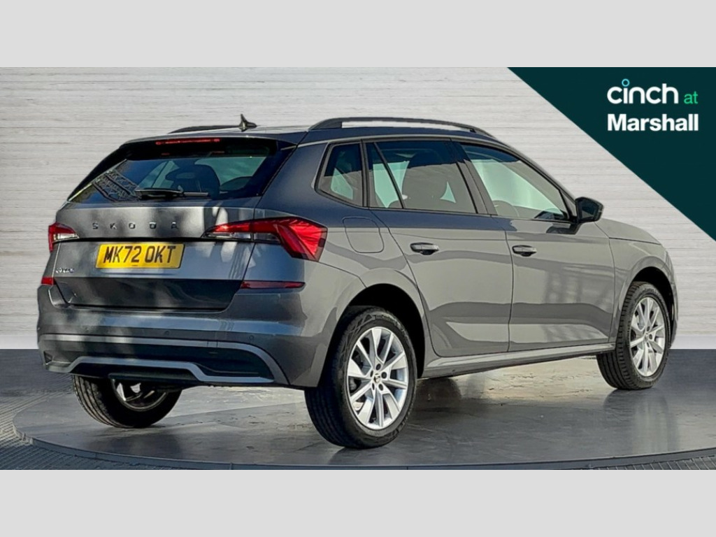 Skoda Kamiq 1.0 TSI 110 SE Drive 5dr Amundsen satellite navigation with 9.2" glass colour touchscreen display, web radio, voice control and traffic sign recognition, Bluetooth system, E-call, Front assist system, Gesture control, PAS, Service indicator, Speed limiter, Wireless SmartLink for apple car play, android auto and mirrorlink, 8 Speakers, Auxiliary input socket, DAB Digital radio, Body colour bumpers, Body colour door mirrors and handles, Chrome grille surround, Dimming rear view mirror with black surround, Electrically adjustable and heated door mirrors, Front and rear electric windows, Headlight range control, Heated rear window, LED rear lights - low functionality, Light sensors, Privacy glass, Rear fog lights, Rear side wing doors, Rear wiper, 12V Accessory socket in centre console, 3 seat bench in 2nd row, Chrome inner door handles, Cloth upholstery, Front head restraints, Glove compartment with illumination, Height adjustable driver and front passenger seats - manual, Ice scraper, Isofix child seat fittings on outer rear seats, ISOFIX on front passenger seat, Manual lumbar support for front seats, Rake/reach adjustable steering wheel, Reading lights, Single front passenger seat, Sun visors with illumination on front passenger, Textile floor mats, Third rear headrest, Top tether for front passenger seat, Umbrella in driver's door, 3x3 point rear seatbelts, Airbags - driver and front passenger, ESP, Front passenger airbag deactivation switch, Front side airbags with curtain airbags, Hill hold control, Manual parking brake, Manual rear child locks, One tone horn, Rear disc brakes, Seatbelt reminder for driver an co-driver, Traction control, Tyre pressure monitor, Anti-theft alarm system with interior monitoring, backup horn, towing protection and remote central locking with SAFE system, Anti-theft wheel bolts, Electronic engine immobilizer, Silver haptic decorative insert on the dashboard with hot stamping in glossy black