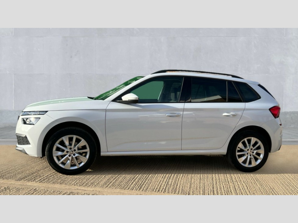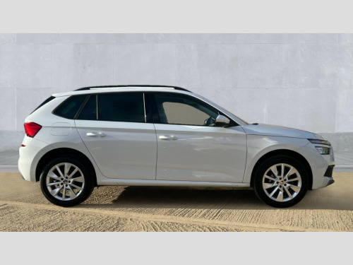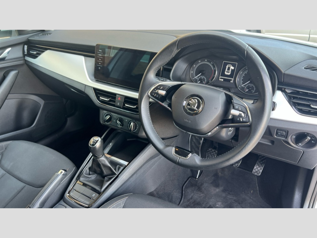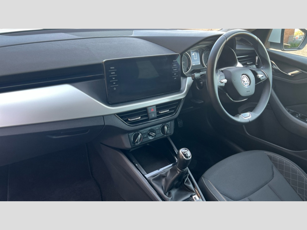 Skoda Kamiq 1.0 TSI 110 SE Drive 5dr Amundsen satellite navigation with 9.2" glass colour touchscreen display, web radio, voice control and traffic sign recognition, Bluetooth system, E-call, Front assist system, Gesture control, PAS, Service indicator, Speed limiter, Wireless Smartlink for Apple CarPlay (wired for Android Auto), 8 Speakers, Auxiliary input socket, DAB Digital radio, Body colour bumpers, Body colour door mirrors and handles, Chrome grille surround, Dimming rear view mirror with black surround, Electrically adjustable and heated door mirrors, Front and rear electric windows, Headlight range control, Heated rear window, LED rear lights - low functionality, LED third brake light, Light sensors, Privacy glass, Rain sensor, Rear fog lights, Rear side wing doors, Rear wiper, 12V Accessory socket in centre console, 3 seat bench in 2nd row, Chrome inner door handles, Cloth upholstery, Front head restraints, Glove compartment with illumination, Height adjustable driver and front passenger seats - manual, Ice scraper, Isofix child seat fittings on outer rear seats, ISOFIX on front passenger seat, Manual lumbar support for front seats, Rake/reach adjustable steering wheel, Reading lights, Single front passenger seat, Sun visors with illumination on front passenger, Textile floor mats, Third rear headrest, Top tether for front passenger seat, Umbrella in driver's door, 3x3 point rear seatbelts, Airbags - driver and front passenger, ESP, Front passenger airbag deactivation switch, Front side airbags with curtain airbags, Hill hold control, Manual parking brake, Manual rear child locks, One tone horn, Rear disc brakes, Seatbelt reminder for driver an co-driver, Traction control, Tyre pressure monitor, Anti-theft alarm system with interior monitoring, backup horn, towing protection and remote central locking with SAFE system, Anti-theft wheel bolts, Electronic engine immobilizer, Silver haptic decorative insert on the dashboard with hot stamping in glossy black