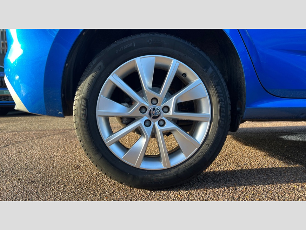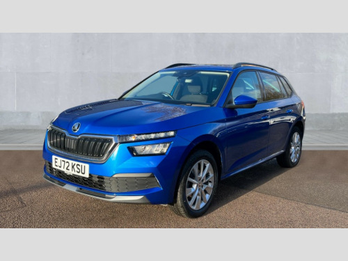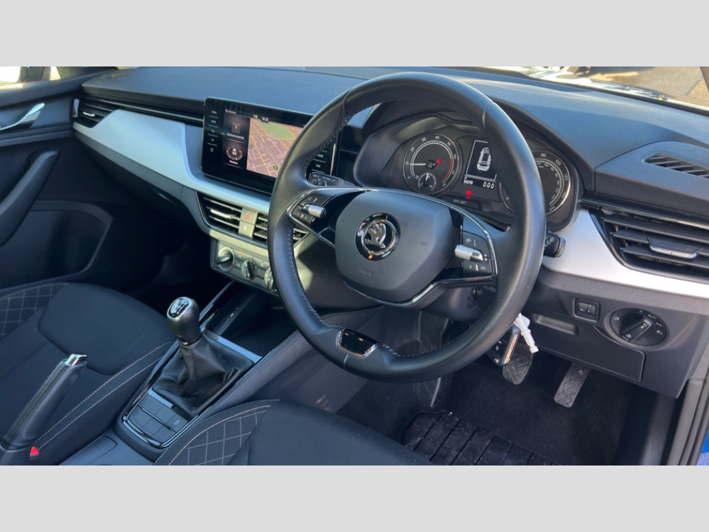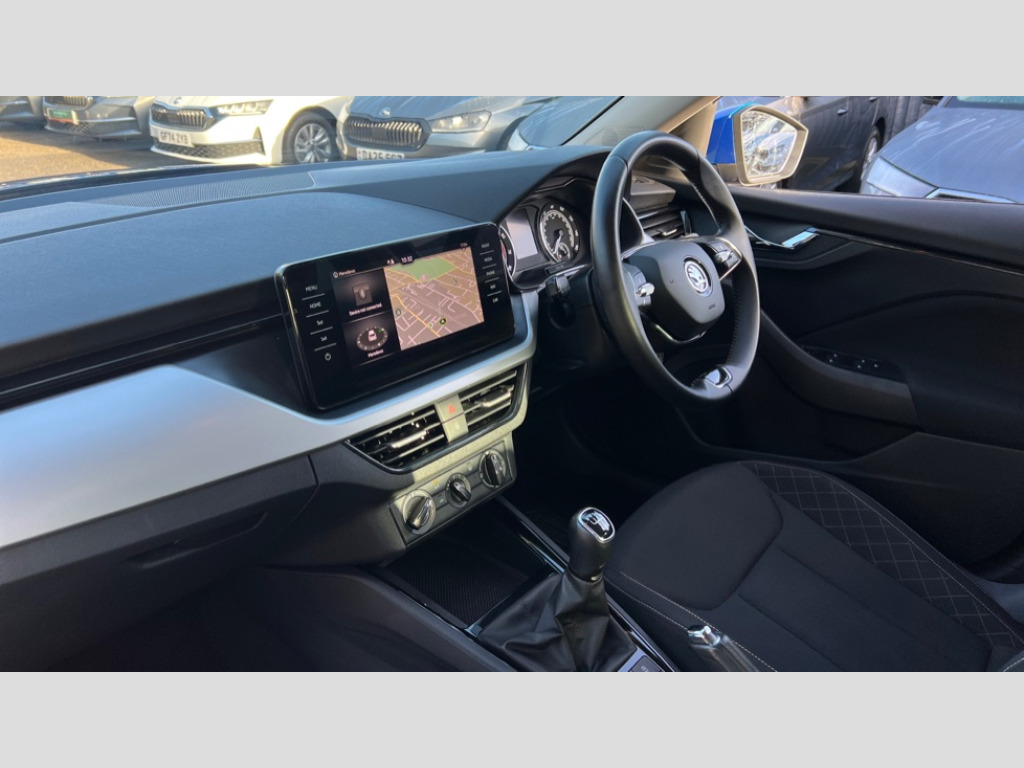 Skoda Kamiq 1.0 TSI 110 SE Drive 5dr Amundsen satellite navigation with 9.2" glass colour touchscreen display, web radio, voice control and traffic sign recognition, Bluetooth system, E-call, Front assist system, Gesture control, PAS, Service indicator, Speed limiter, Wireless SmartLink for apple car play, android auto and mirrorlink, 8 Speakers, Auxiliary input socket, DAB Digital radio, Body colour bumpers, Body colour door mirrors and handles, Chrome grille surround, Dimming rear view mirror with black surround, Electrically adjustable and heated door mirrors, Front and rear electric windows, Headlight range control, Heated rear window, LED rear lights - low functionality, LED third brake light, Light sensors, Privacy glass, Rain sensor, Rear fog lights, Rear side wing doors, Rear wiper, 12V Accessory socket in centre console, 3 seat bench in 2nd row, Chrome inner door handles, Cloth upholstery, Front head restraints, Glove compartment with illumination, Height adjustable driver and front passenger seats - manual, Ice scraper, Isofix child seat fittings on outer rear seats, ISOFIX on front passenger seat, Manual lumbar support for front seats, Rake/reach adjustable steering wheel, Reading lights, Single front passenger seat, Sun visors with illumination on front passenger, Textile floor mats, Third rear headrest, Top tether for front passenger seat, Umbrella in driver's door, 3x3 point rear seatbelts, Airbags - driver and front passenger, ESP, Front passenger airbag deactivation switch, Front side airbags with curtain airbags, Hill hold control, Manual parking brake, Manual rear child locks, One tone horn, Rear disc brakes, Seatbelt reminder for driver an co-driver, Traction control, Tyre pressure monitor, Anti-theft alarm system with interior monitoring, backup horn, towing protection and remote central locking with SAFE system, Anti-theft wheel bolts, Electronic engine immobilizer, Silver haptic decorative insert on the dashboard with hot stamping in glossy black