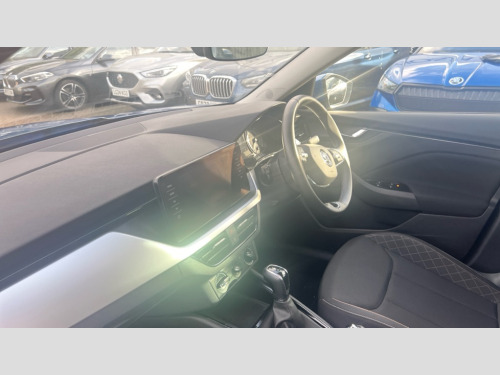 Skoda Kamiq 1.0 TSI 110 SE Drive 5dr DSG Amundsen satellite navigation with 9.2" glass colour touchscreen display, web radio, voice control and traffic sign recognition, Bluetooth system, E-call, Front assist system, Gesture control, PAS, Service indicator, Speed limiter, Wireless SmartLink for apple car play, android auto and mirrorlink, 8 Speakers, Auxiliary input socket, DAB Digital radio, Body colour bumpers, Body colour door mirrors and handles, Chrome grille surround, Dimming rear view mirror with black surround, Electrically adjustable and heated door mirrors, Front and rear electric windows, Headlight range control, Heated rear window, LED rear lights - low functionality, LED third brake light, Light sensors, Privacy glass, Rain sensor, Rear fog lights, Rear side wing doors, Rear wiper, 12V Accessory socket in centre console, 3 seat bench in 2nd row, Chrome inner door handles, Cloth upholstery, Front head restraints, Glove compartment with illumination, Height adjustable driver and front passenger seats - manual, Ice scraper, Isofix child seat fittings on outer rear seats, ISOFIX on front passenger seat, Manual lumbar support for front seats, Rake/reach adjustable steering wheel, Reading lights, Single front passenger seat, Sun visors with illumination on front passenger, Textile floor mats, Third rear headrest, Top tether for front passenger seat, Umbrella in driver's door, 3x3 point rear seatbelts, Airbags - driver and front passenger, ESP, Front passenger airbag deactivation switch, Front side airbags with curtain airbags, Hill hold control, Manual parking brake, Manual rear child locks, One tone horn, Rear disc brakes, Seatbelt reminder for driver an co-driver, Traction control, Tyre pressure monitor, Anti-theft alarm system with interior monitoring, backup horn, towing protection and remote central locking with SAFE system, Anti-theft wheel bolts, Electronic engine immobilizer, Silver haptic decorative insert on the dashboard with hot stamping in glossy black