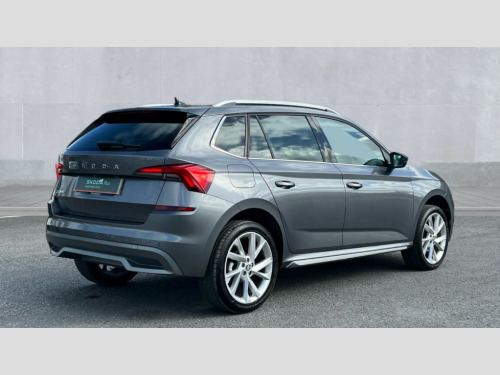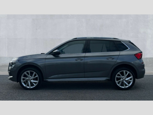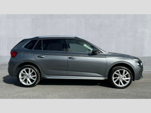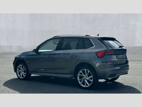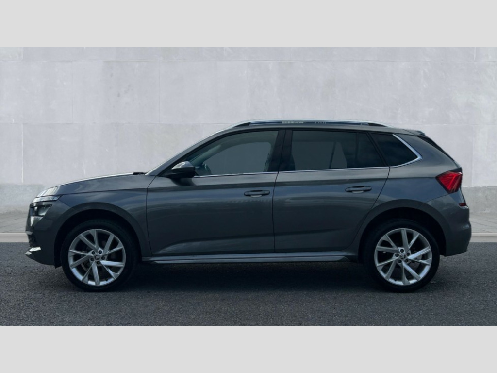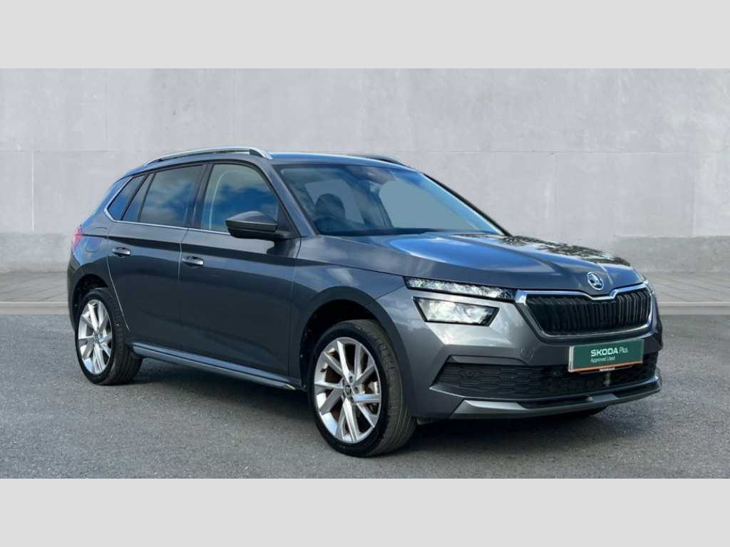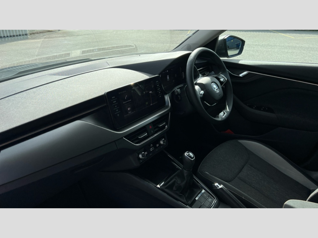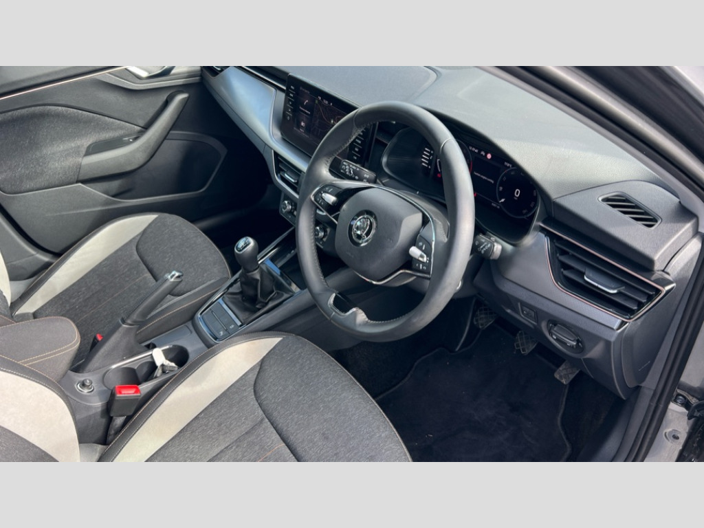 Skoda Kamiq 1.0 TSI 110 SE L Executive 5dr Amundsen satellite navigation with 9.2" glass colour touchscreen display, web radio, voice control and traffic sign recognition, Bluetooth system, E-call, Front assist system, Gesture control, PAS, Rear view camera, Service indicator, Speed limiter, Wireless Smartlink for Apple CarPlay (wired for Android Auto), 8 Speakers, Auxiliary input socket, DAB Digital radio, Body colour bumpers, Body colour door mirrors and handles, Chrome grille surround, Dimming rear view mirror with black surround, Electric folding door mirrors, Electrically adjustable and heated door mirrors, Front and rear electric windows, Headlight range control, Heated rear window, LED rear lights with dynamic indicators, LED third brake light, Light sensors, Privacy glass, Rain sensor, Rear fog lights, Rear side wing doors, Rear wiper, 12V Accessory socket in centre console, 3 seat bench in 2nd row, Chrome inner door handles, Dual zone climate control, Front head restraints, Glove compartment with illumination, Ice scraper, Isofix child seat fittings on outer rear seats, ISOFIX on front passenger seat, Manual lumbar support for front seats, Rake/reach adjustable steering wheel, Reading lights, Single front passenger seat, Sun visors with illumination on front passenger, Textile floor mats, Third rear headrest, Top tether for front passenger seat, Umbrella in driver's door, 3x3 point rear seatbelts, Airbags - driver and front passenger, ESP, Front passenger airbag deactivation switch, Front side airbags with curtain airbags, Hill hold control, Manual parking brake, Manual rear child locks, One tone horn, Rear disc brakes, Seatbelt reminder for driver an co-driver, Traction control, Tyre pressure monitor, Anti-theft alarm system with interior monitoring, backup horn, towing protection and remote central locking with SAFE system, Anti-theft wheel bolts, Electronic engine immobilizer, Latice curved decorative insert on the dashboard with hot stamping in copper