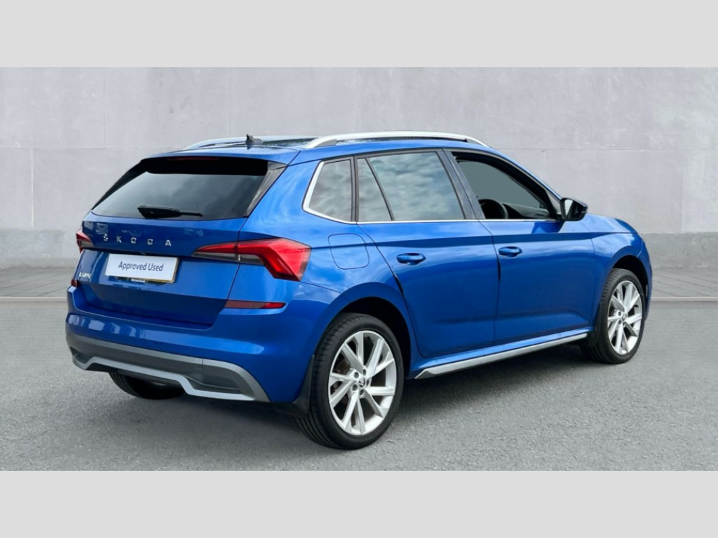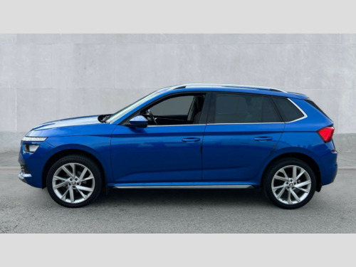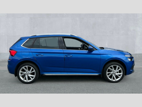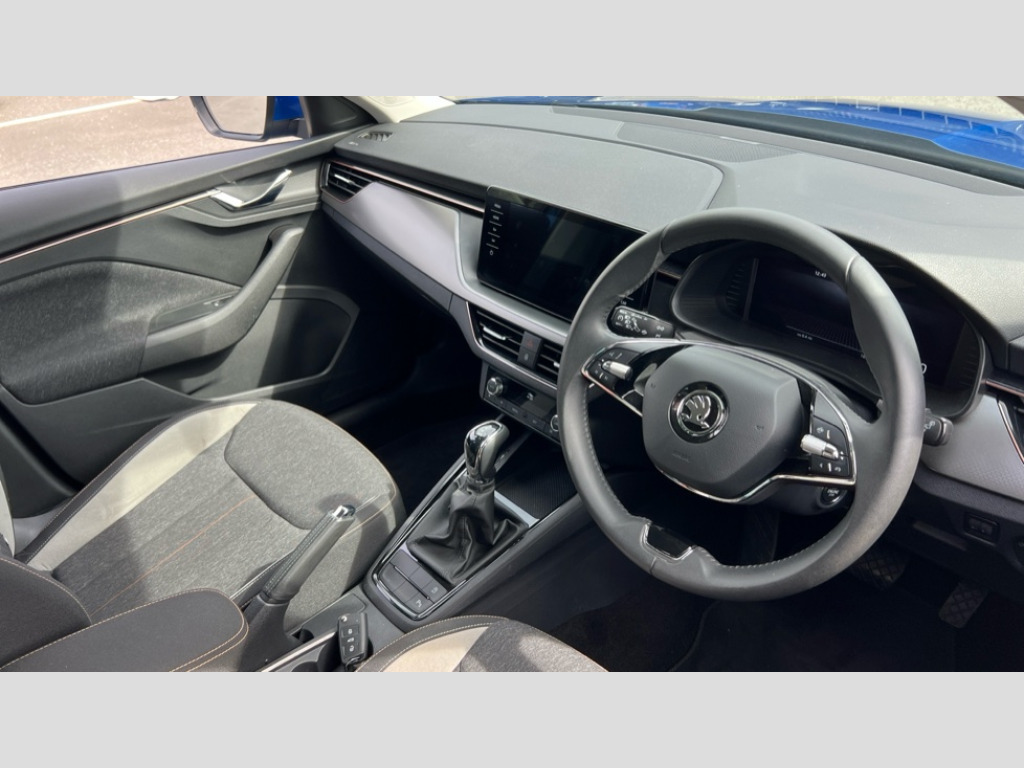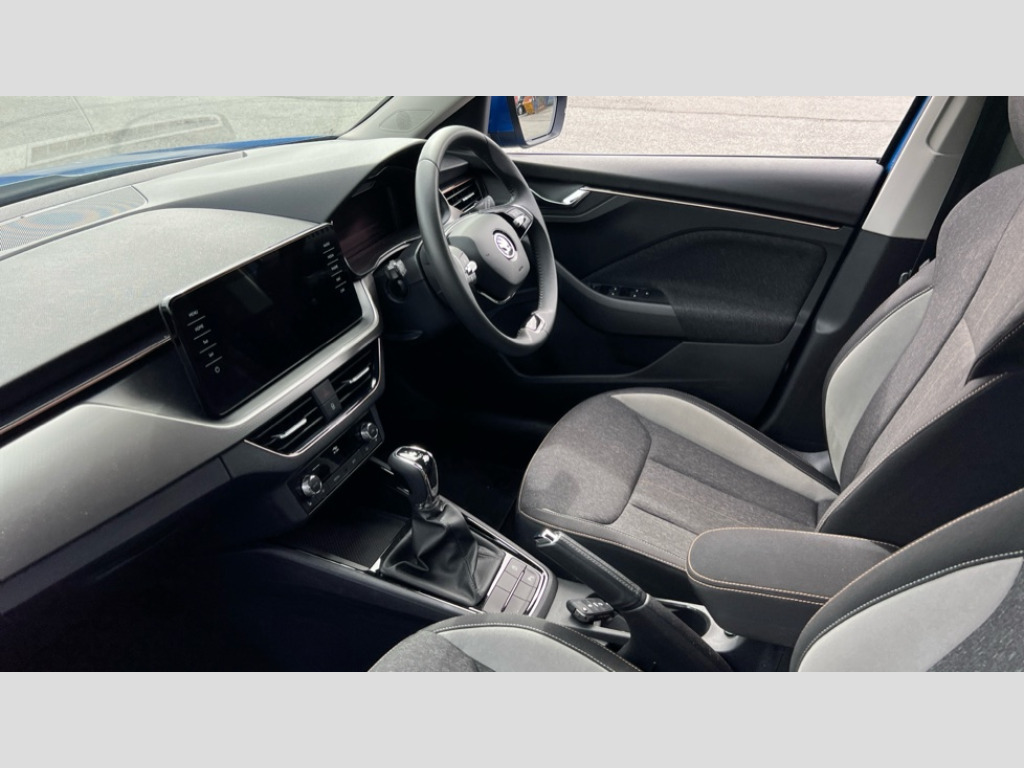 Skoda Kamiq 1.0 TSI 110 SE L Executive 5dr DSG Amundsen satellite navigation with 9.2" glass colour touchscreen display, web radio, voice control and traffic sign recognition, Bluetooth system, E-call, Front assist system, Gesture control, PAS, Rear view camera, Service indicator, Speed limiter, Wireless Smartlink for Apple CarPlay (wired for Android Auto), 8 Speakers, Auxiliary input socket, DAB Digital radio, Body colour bumpers, Body colour door mirrors and handles, Chrome grille surround, Dimming rear view mirror with black surround, Electric folding door mirrors, Electrically adjustable and heated door mirrors, Front and rear electric windows, Headlight range control, Heated rear window, LED rear lights with dynamic indicators, LED third brake light, Light sensors, Privacy glass, Rain sensor, Rear fog lights, Rear side wing doors, Rear wiper, 12V Accessory socket in centre console, 3 seat bench in 2nd row, Chrome inner door handles, Dual zone climate control, Front head restraints, Glove compartment with illumination, Ice scraper, Isofix child seat fittings on outer rear seats, ISOFIX on front passenger seat, Manual lumbar support for front seats, Rake/reach adjustable steering wheel, Reading lights, Single front passenger seat, Sun visors with illumination on front passenger, Textile floor mats, Third rear headrest, Top tether for front passenger seat, Umbrella in driver's door, 3x3 point rear seatbelts, Airbags - driver and front passenger, ESP, Front passenger airbag deactivation switch, Front side airbags with curtain airbags, Hill hold control, Manual parking brake, Manual rear child locks, One tone horn, Rear disc brakes, Seatbelt reminder for driver an co-driver, Traction control, Tyre pressure monitor, Anti-theft alarm system with interior monitoring, backup horn, towing protection and remote central locking with SAFE system, Anti-theft wheel bolts, Electronic engine immobilizer, Latice curved decorative insert on the dashboard with hot stamping in copper and white ambient lighting white