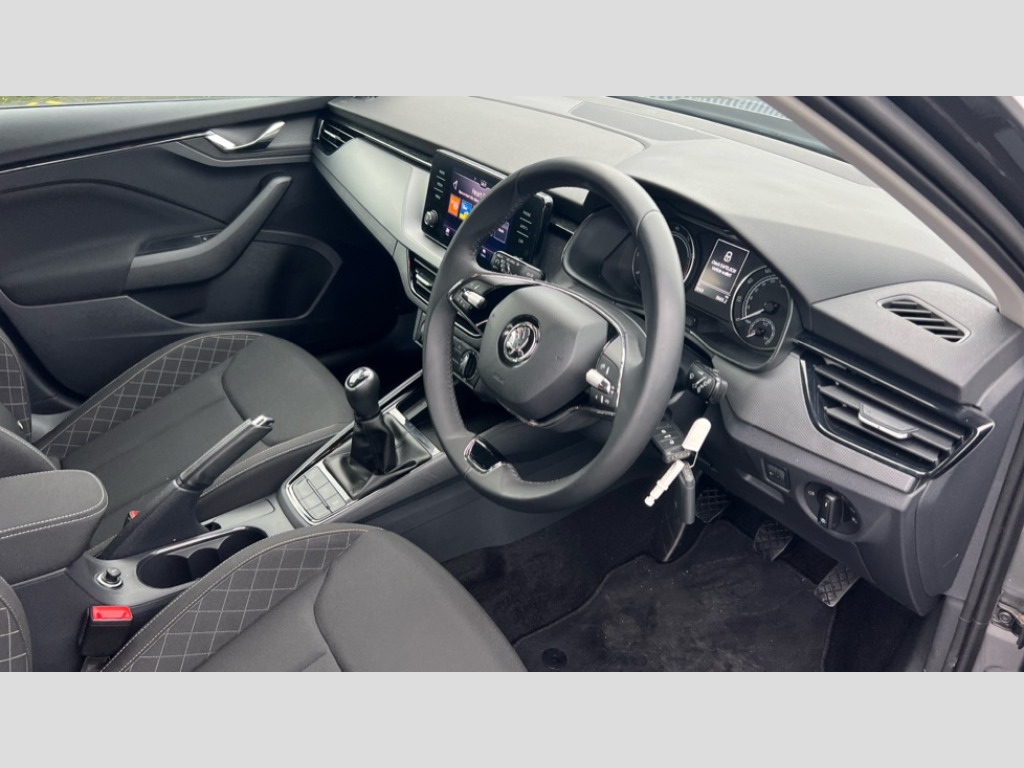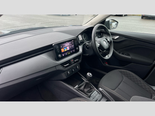 Skoda Kamiq 1.0 TSI 95 SE 5dr Bluetooth system, E-call, Front assist system, PAS, Service indicator, Speed limiter, Wireless Smartlink for Apple CarPlay (wired for Android Auto), 8 Speakers, Auxiliary input socket, DAB Digital radio, Body colour bumpers, Body colour door mirrors and handles, Chrome grille surround, Dimming rear view mirror with black surround, Electrically adjustable and heated door mirrors, Front and rear electric windows, Headlight range control, Heated rear window, LED rear lights - low functionality, LED third brake light, Light sensors, Rain sensor, Rear fog lights, Rear side wing doors, Rear wiper, 12V Accessory socket in centre console, 3 seat bench in 2nd row, Chrome inner door handles, Cloth upholstery, Front head restraints, Glove compartment with illumination, Ice scraper, Isofix child seat fittings on outer rear seats, ISOFIX on front passenger seat, Manual lumbar support for front seats, Rake/reach adjustable steering wheel, Reading lights, Single front passenger seat, Sun visors with illumination on front passenger, Textile floor mats, Third rear headrest, Top tether for front passenger seat, Umbrella in driver's door, 3x3 point rear seatbelts, Airbags - driver and front passenger, ESP, Front passenger airbag deactivation switch, Front side airbags with curtain airbags, Hill hold control, Manual parking brake, Manual rear child locks, One tone horn, Rear disc brakes, Seatbelt reminder for driver an co-driver, Traction control, Tyre pressure monitor, Anti-theft alarm system with interior monitoring, backup horn, towing protection and remote central locking with SAFE system, Anti-theft wheel bolts, Electronic engine immobilizer