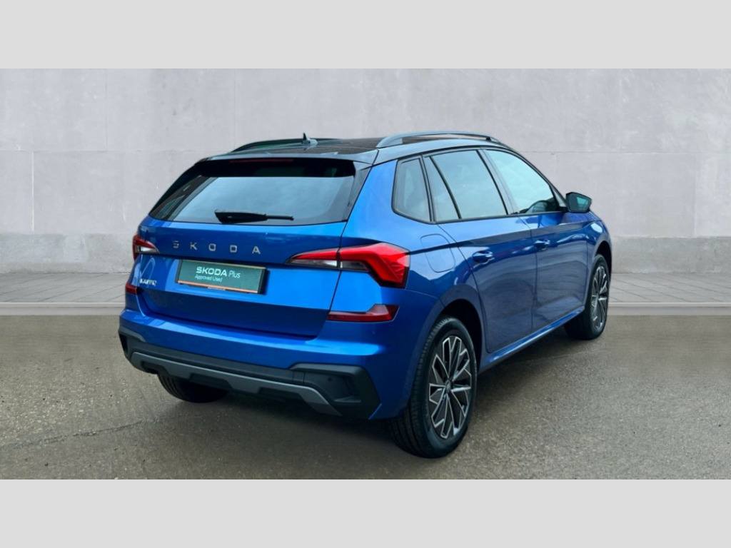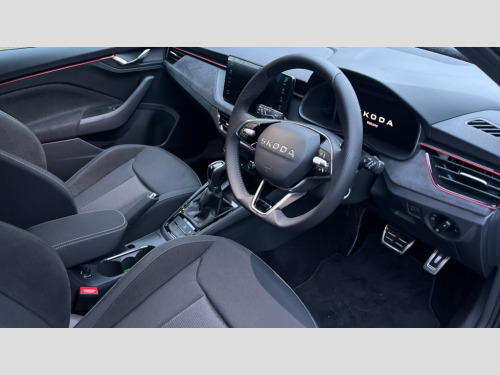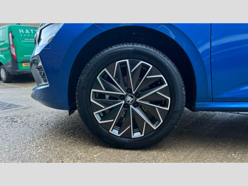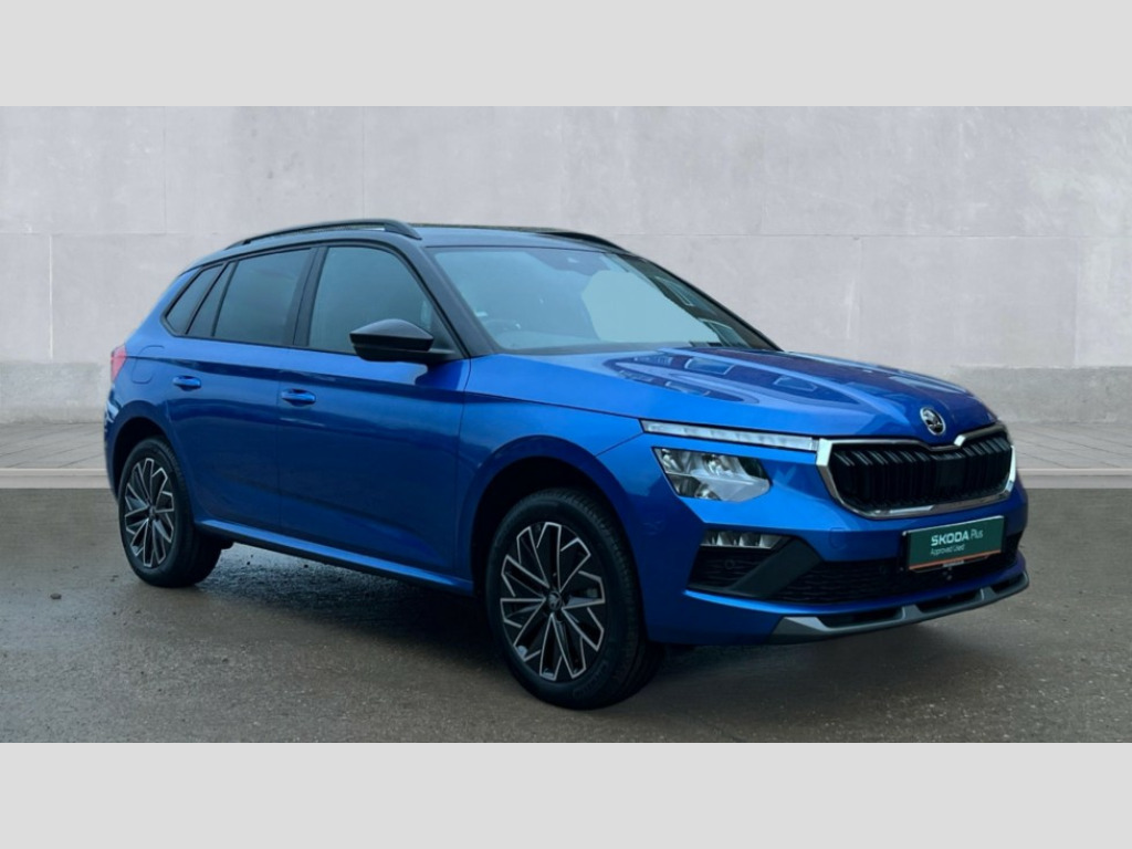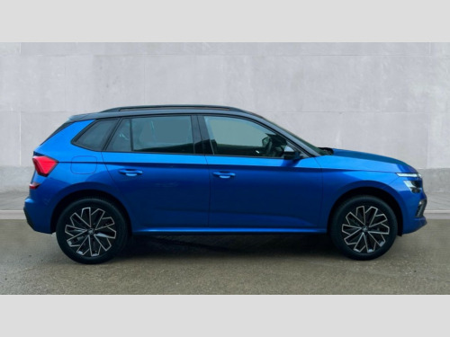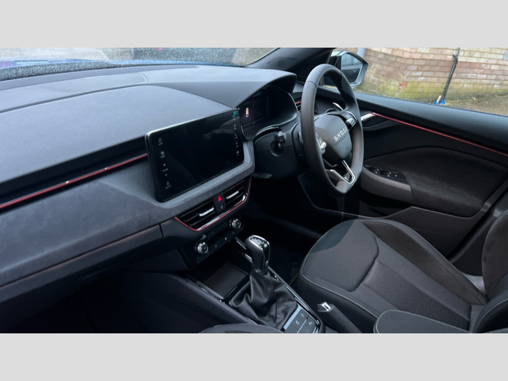 Skoda Kamiq 1.0 TSI Design Edition 5dr DSG Advanced driver attention and drowsiness monitor, Bluetooth system, E-call, Front assist system, PAS, Rear parking sensors, Rear view camera, Service indicator, Speed limiter, Traffic sign recognition, Virtual cockpit with 10.25" display, Wireless smartlink, 4 USB C ports, 8 Speakers, 9.2" Skoda navigation display, DAB Digital radio, Auto dimming rear view mirror, Automatic headlight control with coming home and leaving home feature, Black door mirrors, Black roof, Black roof rails, Body colour bumpers, Body colour door handles, Chrome grille surround, Front and rear electric windows, Full LED headlights, Heated rear window, LED brake lights, LED daytime running lights, LED front turning lights, LED high beam, LED low beam, LED third brake light, Privacy glass, Rear LED fog light, Rear side wing doors, Rear wiper, Ticket holder inside windscreen, 12V socket in luggage compartment, 3 seat bench in 2nd row, 3 spoke leather sports multi-function steering wheel with paddles for DSG, Aluminium pedals, Ambient lighting in white/red, Black roof lining, Black suedia decor inserts, Black suedia door inserts, Cargo elements, Chrome inner door handles, Driver and passenger sun visors with vanity mirror, Dual zone climate control, Dynamic cloth upholstery, Front and rear roof lights, Front centre armrest, Front head restraints, Glove compartment with illumination, Height adjustable driver seat, Height adjustable front passenger seat, Ice scraper, Inner circulation control with pollen filter, ISOFIX on front passenger seat, Isofix preparation for back seats, Leather gearknob and handbrake lever, Manual lumbar support for front seats, Net package and top tether hooks in boot space, Net under rear shelf, Overhead glasses storage compartment, Pocket on the back of both front seats include mobile phone pockets, Rake/reach adjustable steering wheel, Reading lights, Rear centre armrests, Red hotstamping, Single front passenger seat, Sports seats, Textile floor mats, Third rear headrest, Top tether for front passenger seat, Umbrella in driver's door, 3x3 point rear seatbelts, Airbags - driver and front passenger, Disc brakes, ESP, Extended and predictive pedestrian/cyclist protection, Front passenger airbag deactivation switch, Front side airbags with curtain airbags, Hill hold control, Manual leather parking brake, Manual rear child locks, One tone horn, Seatbelt reminder for driver an co-driver, Traction control, Tyre pressure monitor, Anti-theft alarm system with interior monitoring, backup horn, towing protection and remote central locking with SAFE system, Anti-theft wheel bolts, Electronic engine immobilizer