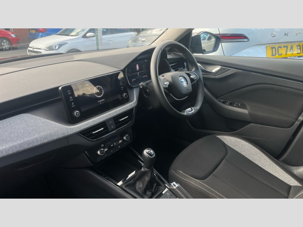 Bluetooth 8" Digital display, Advanced driver attention and drowsiness monitor, Bluetooth system, E-call, Front assist system, PAS, Rear parking sensors, Service indicator, Speed limiter, Traffic sign recognition, Wireless smartlink, 4 USB C ports, 8 Speakers, 8.25" Skoda infotainment display, DAB Digital radio, Auto dimming rear view mirror, Automatic headlight control with coming home and leaving home feature, Automatic headlights, Black roof rails, Body colour bumpers, Body colour door mirrors and handles, Chrome grille surround, Front and rear electric windows, Full LED headlights, Heated rear window, LED daytime running lights, LED front turning lights, LED high beam, LED low beam, LED third brake light, Rear side wing doors, Rear wiper, Ticket holder inside windscreen, 12V socket in luggage compartment, 3 seat bench in 2nd row, Black hotstamping, Cargo elements, Chrome inner door handles, Driver and passenger sun visors with vanity mirror, Dual zone climate control, Front and rear roof lights, Front centre armrest, Front head restraints, Glove compartment with illumination, Height adjustable driver seat, Height adjustable front passenger seat, Ice scraper, Inner circulation control with pollen filter, ISOFIX on front passenger seat, Isofix preparation for back seats, Krepp recycled decor inserts, Leather gearknob and handbrake lever, Loft cloth upholstery, Manual lumbar support for front seats, Net package and top tether hooks in boot space, Net under rear shelf, Overhead glasses storage compartment, Pocket on the back of both front seats include mobile phone pockets, Rake/reach adjustable steering wheel, Reading lights, Satin black door inserts, Single front passenger seat, Textile floor mats, Third rear headrest, Top tether for front passenger seat, Umbrella in driver's door, 3x3 point rear seatbelts, Airbags - driver and front passenger, Disc brakes, ESP, Extended and predictive pedestrian/cyclist protection, Front passenger airbag deactivation switch, Front side airbags with curtain airbags, Hill hold control, Manual leather parking brake, Manual rear child locks, One tone horn, Seatbelt reminder for driver an co-driver, Traction control, Tyre pressure monitor, Anti-theft alarm system with interior monitoring, backup horn, towing protection and remote central locking with SAFE system, Anti-theft wheel bolts, Electronic engine immobilizer