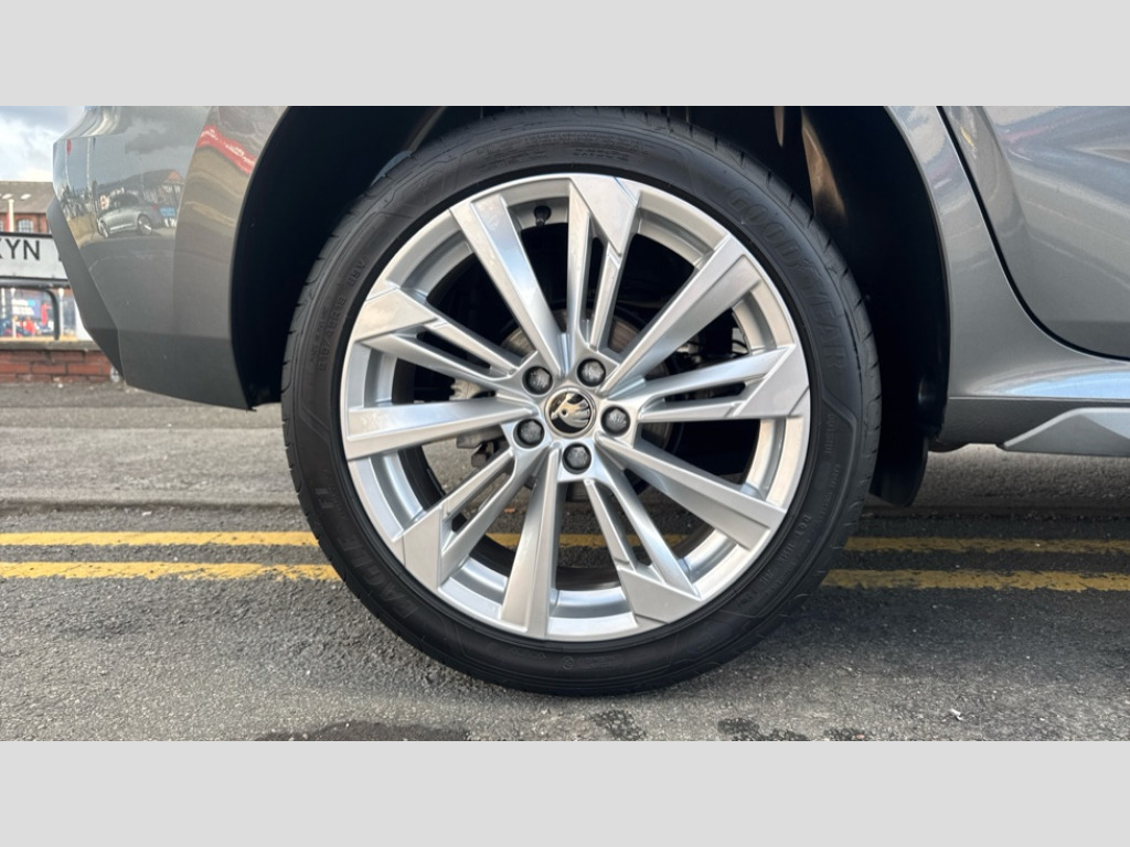 18" Fornax silver alloy wheels Advanced driver attention and drowsiness monitor, Bluetooth system, E-call, Front assist system, PAS, Rear parking sensors, Service indicator, Speed limiter, Traffic sign recognition, Virtual cockpit with 10.25" display, Voice control system, Wireless smartlink, 4 USB C ports, 8 Speakers, 9.2" Skoda navigation display, DAB Digital radio, Auto dimming rear view mirror, Automatic headlight control with coming home and leaving home feature, Body colour bumpers, Body colour door mirrors and handles, Chrome grille surround, Chrome roof rails with chrome window surround, Front and rear electric windows, Heated rear window, LED daytime running lights, LED high beam, LED low beam, LED third brake light, Light sensors, Privacy glass, Rear side wing doors, Rear wiper, Ticket holder inside windscreen, 12V socket in luggage compartment, 3 seat bench in 2nd row, Accent black door inserts, Ambient lighting in white/red, Cargo elements, Chrome inner door handles, Copper hotstamping, Driver and passenger sun visors with vanity mirror, Dual zone climate control, Front and rear roof lights, Front centre armrest, Front head restraints, Glove compartment with illumination, Height adjustable driver seat, Height adjustable front passenger seat, Ice scraper, Inner circulation control with pollen filter, ISOFIX on front passenger seat, Isofix preparation for back seats, Leather gearknob and handbrake lever, Lodge cloth upholstery, Manual lumbar support for front seats, Net package and top tether hooks in boot space, Net under rear shelf, Overhead glasses storage compartment, Pocket on the back of both front seats include mobile phone pockets, Rake/reach adjustable steering wheel, Reading lights, Rear centre armrests, Single front passenger seat, Suedia grey decor inserts, Textile floor mats, Third rear headrest, Top tether for front passenger seat, Umbrella in driver's door, 3x3 point rear seatbelts, Airbags - driver and front passenger, Disc brakes, ESP, Extended and predictive pedestrian/cyclist protection, Front passenger airbag deactivation switch, Front side airbags with curtain airbags, Hill hold control, Manual leather parking brake, Manual rear child locks, One tone horn, Seatbelt reminder for driver an co-driver, Traction control, Tyre pressure monitor, Anti-theft alarm system with interior monitoring, backup horn, towing protection and remote central locking with SAFE system, Anti-theft wheel bolts, Electronic engine immobilizer