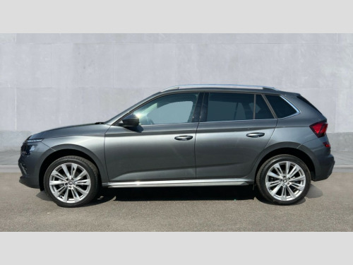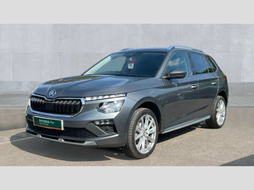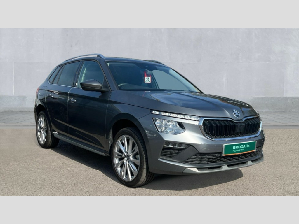 Skoda Kamiq 1.0 TSI SE L Edition 5dr DSG Advanced driver attention and drowsiness monitor, Bluetooth system, E-call, Front assist system, PAS, Rear parking sensors, Rear view camera, Service indicator, Speed limiter, Traffic sign recognition, Virtual cockpit with 10.25" display, Voice control system, Wireless smartlink, 4 USB C ports, 8 Speakers, 9.2" Skoda navigation display, DAB Digital radio, Auto dimming rear view mirror, Automatic headlight control with coming home and leaving home feature, Body colour bumpers, Body colour door mirrors and handles, Chrome grille surround, Chrome roof rails with chrome window surround, Front and rear electric windows, Heated rear window, LED daytime running lights, LED high beam, LED low beam, LED third brake light, Light sensors, Privacy glass, Rear side wing doors, Rear wiper, Ticket holder inside windscreen, 12V socket in luggage compartment, 3 seat bench in 2nd row, Accent black door inserts, Ambient lighting in white/red, Cargo elements, Chrome inner door handles, Copper hotstamping, Driver and passenger sun visors with vanity mirror, Dual zone climate control, Front and rear roof lights, Front centre armrest, Front head restraints, Glove compartment with illumination, Height adjustable driver seat, Height adjustable front passenger seat, Ice scraper, Inner circulation control with pollen filter, ISOFIX on front passenger seat, Isofix preparation for back seats, Leather gearknob and handbrake lever, Lodge cloth upholstery, Manual lumbar support for front seats, Net package and top tether hooks in boot space, Net under rear shelf, Overhead glasses storage compartment, Pocket on the back of both front seats include mobile phone pockets, Rake/reach adjustable steering wheel, Reading lights, Rear centre armrests, Single front passenger seat, Suedia grey decor inserts, Textile floor mats, Third rear headrest, Top tether for front passenger seat, Umbrella in driver's door, Convenience pack - Kamiq, 3x3 point rear seatbelts, Airbags - driver and front passenger, Disc brakes, ESP, Extended and predictive pedestrian/cyclist protection, Front passenger airbag deactivation switch, Front side airbags with curtain airbags, Hill hold control, Manual leather parking brake, Manual rear child locks, One tone horn, Seatbelt reminder for driver an co-driver, Traction control, Tyre pressure monitor, Anti-theft alarm system with interior monitoring, backup horn, towing protection and remote central locking with SAFE system, Anti-theft wheel bolts, Electronic engine immobilizer