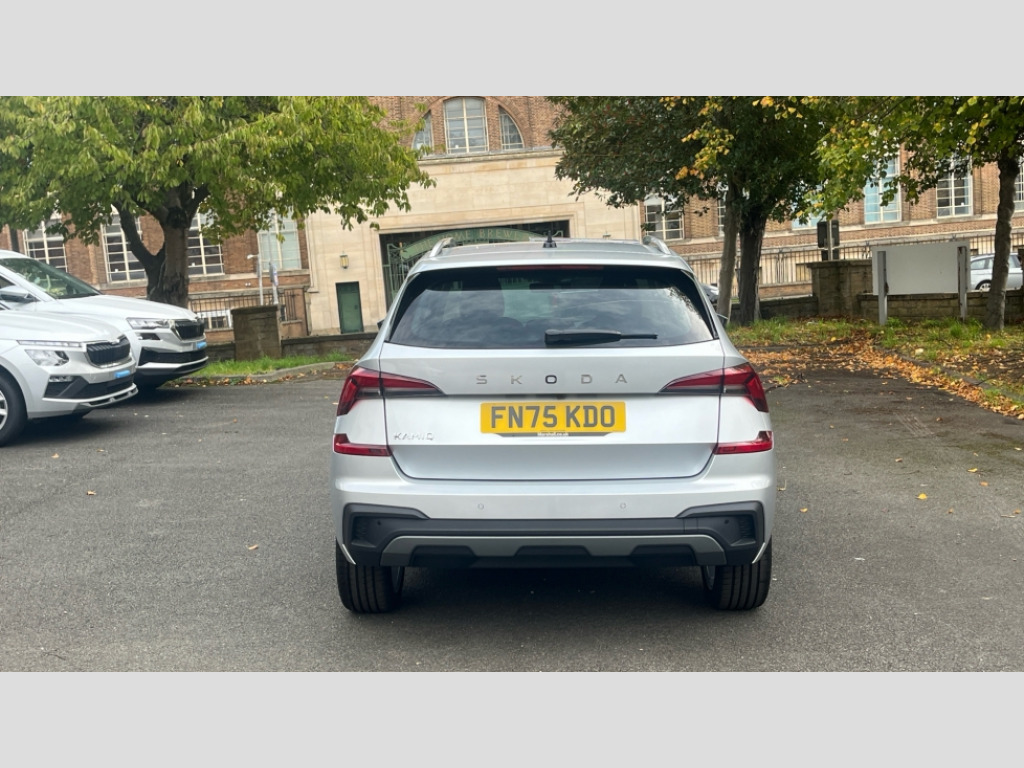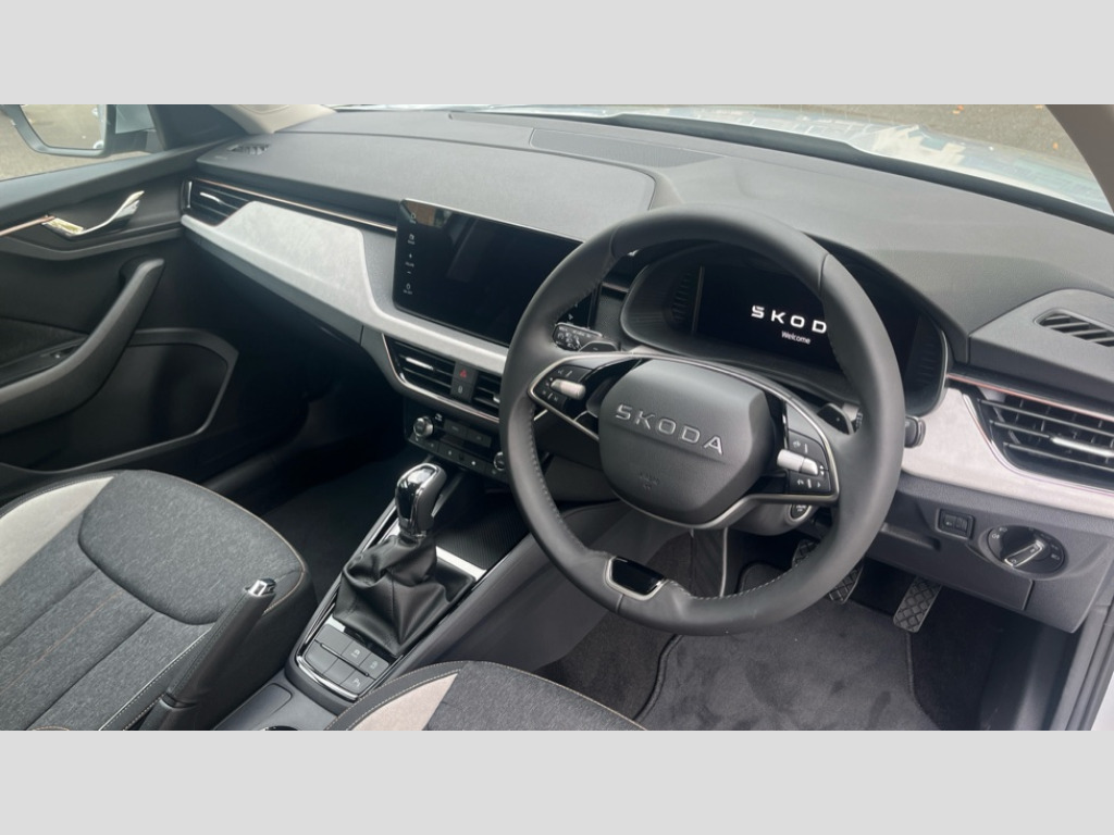 Wireless Smartlink Advanced driver attention and drowsiness monitor, Bluetooth system, E-call, Front assist system, PAS, Rear parking sensors, Rear view camera, Service indicator, Speed limiter, Traffic sign recognition, Virtual cockpit with 10.25" display, Voice control system, Wireless smartlink, 4 USB C ports, 8 Speakers, 9.2" Skoda navigation display, DAB Digital radio, Auto dimming rear view mirror, Automatic headlight control with coming home and leaving home feature, Body colour bumpers, Body colour door mirrors and handles, Chrome grille surround, Chrome roof rails with chrome window surround, Front and rear electric windows, Heated rear window, LED daytime running lights, LED high beam, LED low beam, LED third brake light, Light sensors, Privacy glass, Rear side wing doors, Rear wiper, Ticket holder inside windscreen, 12V socket in luggage compartment, 3 seat bench in 2nd row, Accent black door inserts, Ambient lighting in white/red, Cargo elements, Chrome inner door handles, Copper hotstamping, Driver and passenger sun visors with vanity mirror, Dual zone climate control, Front and rear roof lights, Front centre armrest, Front head restraints, Glove compartment with illumination, Height adjustable driver seat, Height adjustable front passenger seat, Ice scraper, Inner circulation control with pollen filter, ISOFIX on front passenger seat, Isofix preparation for back seats, Leather gearknob and handbrake lever, Lodge cloth upholstery, Manual lumbar support for front seats, Net package and top tether hooks in boot space, Net under rear shelf, Overhead glasses storage compartment, Pocket on the back of both front seats include mobile phone pockets, Rake/reach adjustable steering wheel, Reading lights, Rear centre armrests, Single front passenger seat, Suedia grey decor inserts, Textile floor mats, Third rear headrest, Top tether for front passenger seat, Umbrella in driver's door, Convenience pack - Kamiq, 3x3 point rear seatbelts, Airbags - driver and front passenger, Disc brakes, ESP, Extended and predictive pedestrian/cyclist protection, Front passenger airbag deactivation switch, Front side airbags with curtain airbags, Hill hold control, Manual leather parking brake, Manual rear child locks, One tone horn, Seatbelt reminder for driver an co-driver, Traction control, Tyre pressure monitor, Anti-theft alarm system with interior monitoring, backup horn, towing protection and remote central locking with SAFE system, Anti-theft wheel bolts, Electronic engine immobilizer