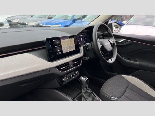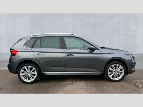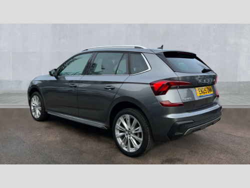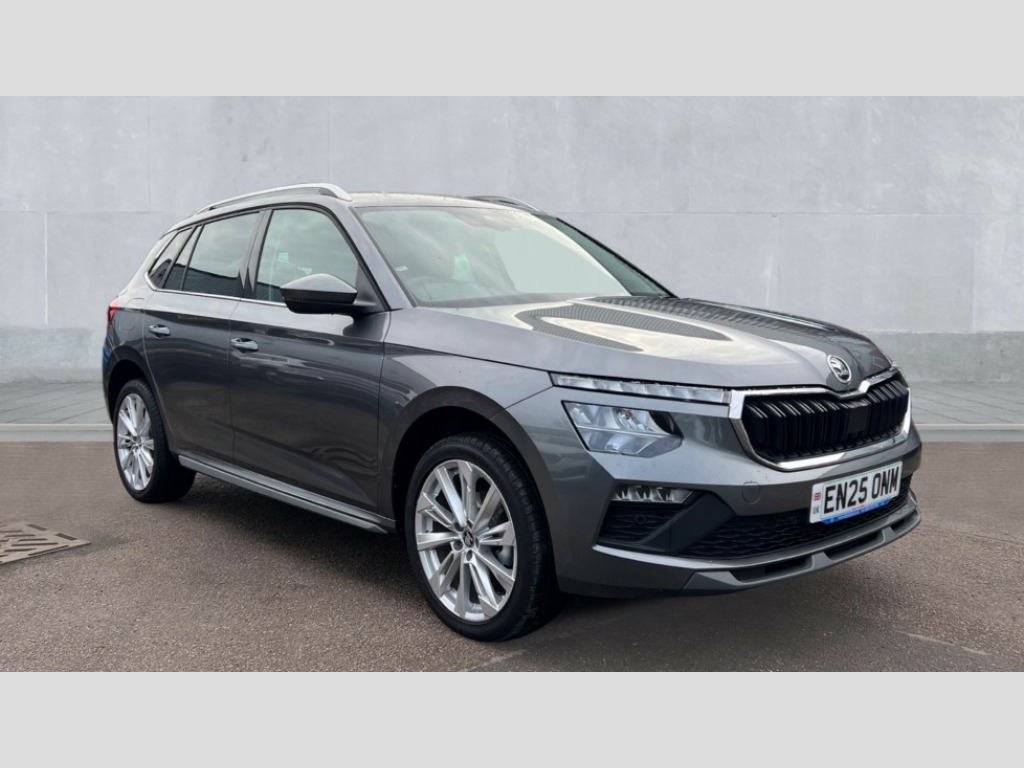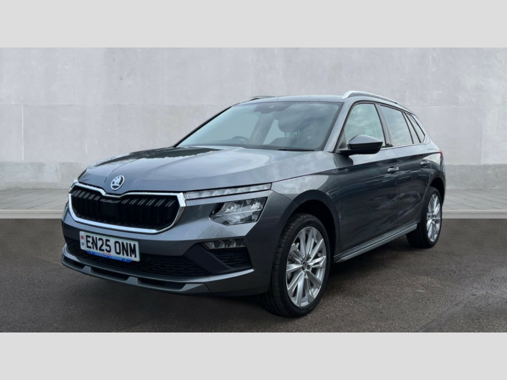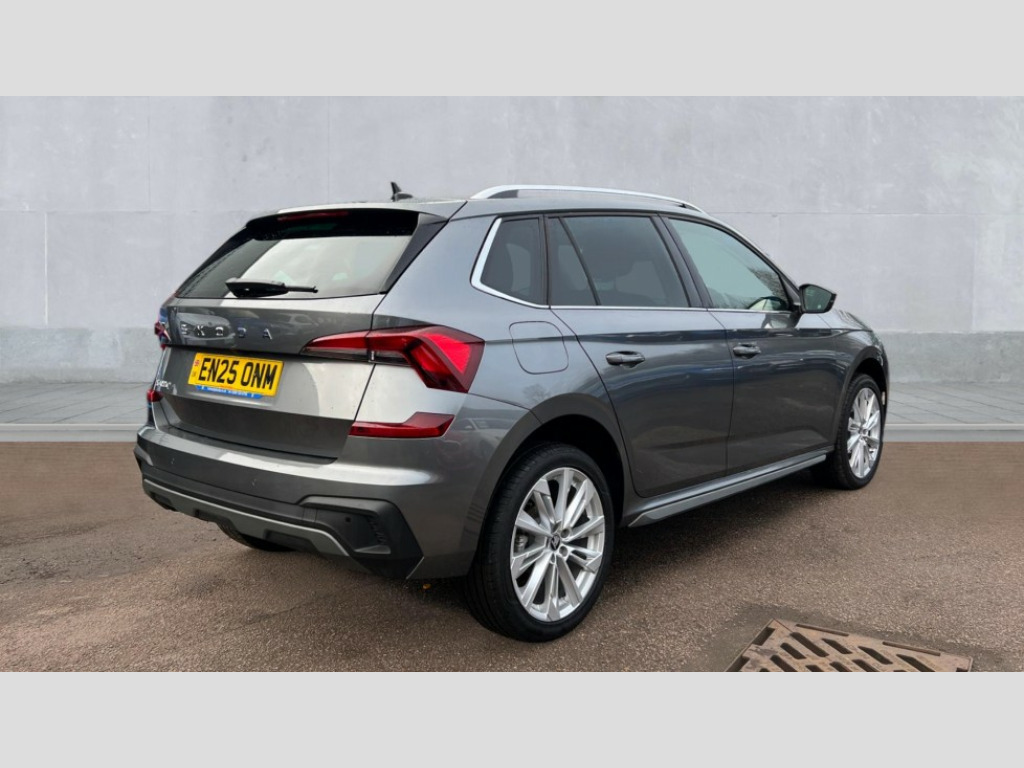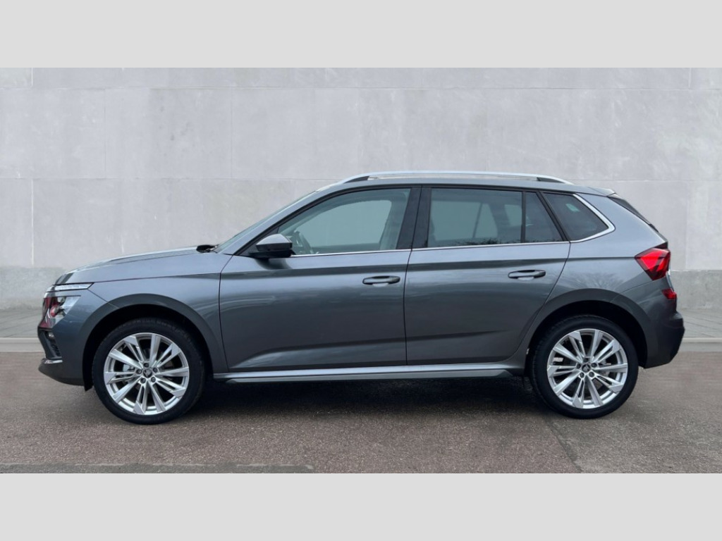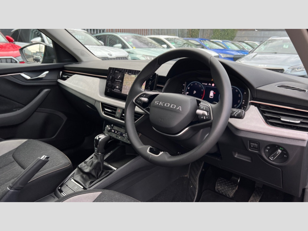 Skoda Kamiq 1.0 TSI SE L Edition 5dr DSG Advanced driver attention and drowsiness monitor, Bluetooth system, E-call, Front assist system, PAS, Rear parking sensors, Rear view camera, Service indicator, Speed limiter, Traffic sign recognition, Virtual cockpit with 10.25" display, Voice control system, Wireless smartlink, 4 USB C ports, 8 Speakers, 9.2" Skoda navigation display, DAB Digital radio, Auto dimming rear view mirror, Automatic headlight control with coming home and leaving home feature, Body colour bumpers, Body colour door mirrors and handles, Chrome grille surround, Chrome roof rails with chrome window surround, Front and rear electric windows, Heated rear window, LED daytime running lights, LED high beam, LED low beam, LED third brake light, Light sensors, Privacy glass, Rear side wing doors, Rear wiper, Ticket holder inside windscreen, 12V socket in luggage compartment, 3 seat bench in 2nd row, Accent black door inserts, Ambient lighting in white/red, Cargo elements, Chrome inner door handles, Copper hotstamping, Driver and passenger sun visors with vanity mirror, Dual zone climate control, Front and rear roof lights, Front centre armrest, Front head restraints, Glove compartment with illumination, Height adjustable driver seat, Height adjustable front passenger seat, Ice scraper, Inner circulation control with pollen filter, ISOFIX on front passenger seat, Isofix preparation for back seats, Leather gearknob and handbrake lever, Lodge cloth upholstery, Manual lumbar support for front seats, Net package and top tether hooks in boot space, Net under rear shelf, Overhead glasses storage compartment, Pocket on the back of both front seats include mobile phone pockets, Rake/reach adjustable steering wheel, Reading lights, Rear centre armrests, Single front passenger seat, Suedia grey decor inserts, Textile floor mats, Third rear headrest, Top tether for front passenger seat, Umbrella in driver's door, Convenience pack - Kamiq, 3x3 point rear seatbelts, Airbags - driver and front passenger, Disc brakes, ESP, Extended and predictive pedestrian/cyclist protection, Front passenger airbag deactivation switch, Front side airbags with curtain airbags, Hill hold control, Manual leather parking brake, Manual rear child locks, One tone horn, Seatbelt reminder for driver an co-driver, Traction control, Tyre pressure monitor, Anti-theft alarm system with interior monitoring, backup horn, towing protection and remote central locking with SAFE system, Anti-theft wheel bolts, Electronic engine immobilizer