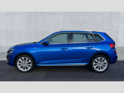 Skoda Kamiq 1.0 TSI SE L Edition 5dr DSG Advanced driver attention and drowsiness monitor, Bluetooth system, E-call, Front assist system, PAS, Rear parking sensors, Rear view camera, Service indicator, Speed limiter, Traffic sign recognition, Virtual cockpit with 10.25" display, Voice control system, Wireless smartlink, 4 USB C ports, 8 Speakers, 9.2" Skoda navigation display, DAB Digital radio, Auto dimming rear view mirror, Automatic headlight control with coming home and leaving home feature, Body colour bumpers, Body colour door mirrors and handles, Chrome grille surround, Chrome roof rails with chrome window surround, Front and rear electric windows, Heated rear window, LED daytime running lights, LED high beam, LED low beam, LED third brake light, Light sensors, Privacy glass, Rear side wing doors, Rear wiper, Ticket holder inside windscreen, 12V socket in luggage compartment, 3 seat bench in 2nd row, Accent black door inserts, Ambient lighting in white/red, Cargo elements, Chrome inner door handles, Copper hotstamping, Driver and passenger sun visors with vanity mirror, Dual zone climate control, Front and rear roof lights, Front centre armrest, Front head restraints, Glove compartment with illumination, Height adjustable driver seat, Height adjustable front passenger seat, Ice scraper, Inner circulation control with pollen filter, ISOFIX on front passenger seat, Isofix preparation for back seats, Leather gearknob and handbrake lever, Lodge cloth upholstery, Manual lumbar support for front seats, Net package and top tether hooks in boot space, Net under rear shelf, Overhead glasses storage compartment, Pocket on the back of both front seats include mobile phone pockets, Rake/reach adjustable steering wheel, Reading lights, Rear centre armrests, Single front passenger seat, Suedia grey decor inserts, Textile floor mats, Third rear headrest, Top tether for front passenger seat, Umbrella in driver's door, Convenience pack - Kamiq, 3x3 point rear seatbelts, Airbags - driver and front passenger, Disc brakes, ESP, Extended and predictive pedestrian/cyclist protection, Front passenger airbag deactivation switch, Front side airbags with curtain airbags, Hill hold control, Manual leather parking brake, Manual rear child locks, One tone horn, Seatbelt reminder for driver an co-driver, Traction control, Tyre pressure monitor, Anti-theft alarm system with interior monitoring, backup horn, towing protection and remote central locking with SAFE system, Anti-theft wheel bolts, Electronic engine immobilizer