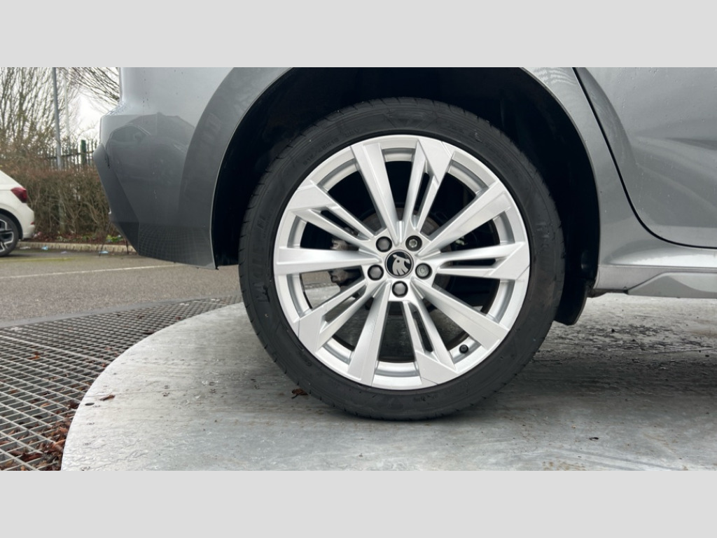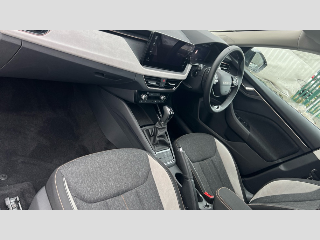 Skoda Kamiq 1.0 TSI SE L Edition 5dr DSG Advanced driver attention and drowsiness monitor, Bluetooth system, E-call, Front assist system, PAS, Rear parking sensors, Rear view camera, Service indicator, Speed limiter, Traffic sign recognition, Virtual cockpit with 10.25" display, Voice control system, Wireless smartlink, 4 USB C ports, 8 Speakers, 9.2" Skoda navigation display, DAB Digital radio, Auto dimming rear view mirror, Automatic headlight control with coming home and leaving home feature, Body colour bumpers, Body colour door mirrors and handles, Chrome grille surround, Chrome roof rails with chrome window surround, Front and rear electric windows, Heated rear window, LED daytime running lights, LED high beam, LED low beam, LED third brake light, Light sensors, Privacy glass, Rear side wing doors, Rear wiper, Ticket holder inside windscreen, 12V socket in luggage compartment, 3 seat bench in 2nd row, Accent black door inserts, Ambient lighting in white/red, Cargo elements, Chrome inner door handles, Copper hotstamping, Driver and passenger sun visors with vanity mirror, Dual zone climate control, Front and rear roof lights, Front centre armrest, Front head restraints, Glove compartment with illumination, Height adjustable driver seat, Height adjustable front passenger seat, Ice scraper, Inner circulation control with pollen filter, ISOFIX on front passenger seat, Isofix preparation for back seats, Leather gearknob and handbrake lever, Lodge cloth upholstery, Manual lumbar support for front seats, Net package and top tether hooks in boot space, Net under rear shelf, Overhead glasses storage compartment, Pocket on the back of both front seats include mobile phone pockets, Rake/reach adjustable steering wheel, Reading lights, Rear centre armrests, Single front passenger seat, Suedia grey decor inserts, Textile floor mats, Third rear headrest, Top tether for front passenger seat, Umbrella in driver's door, Convenience pack - Kamiq, 3x3 point rear seatbelts, Airbags - driver and front passenger, Disc brakes, ESP, Extended and predictive pedestrian/cyclist protection, Front passenger airbag deactivation switch, Front side airbags with curtain airbags, Hill hold control, Manual leather parking brake, Manual rear child locks, One tone horn, Seatbelt reminder for driver an co-driver, Traction control, Tyre pressure monitor, Anti-theft alarm system with interior monitoring, backup horn, towing protection and remote central locking with SAFE system, Anti-theft wheel bolts, Electronic engine immobilizer