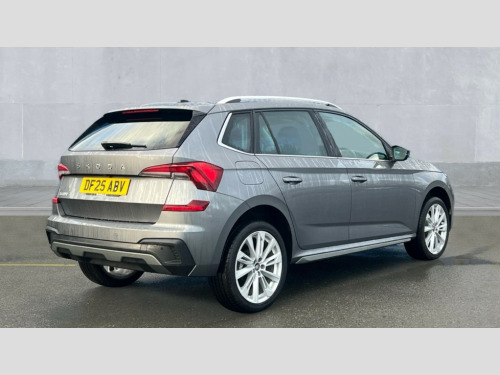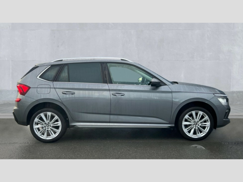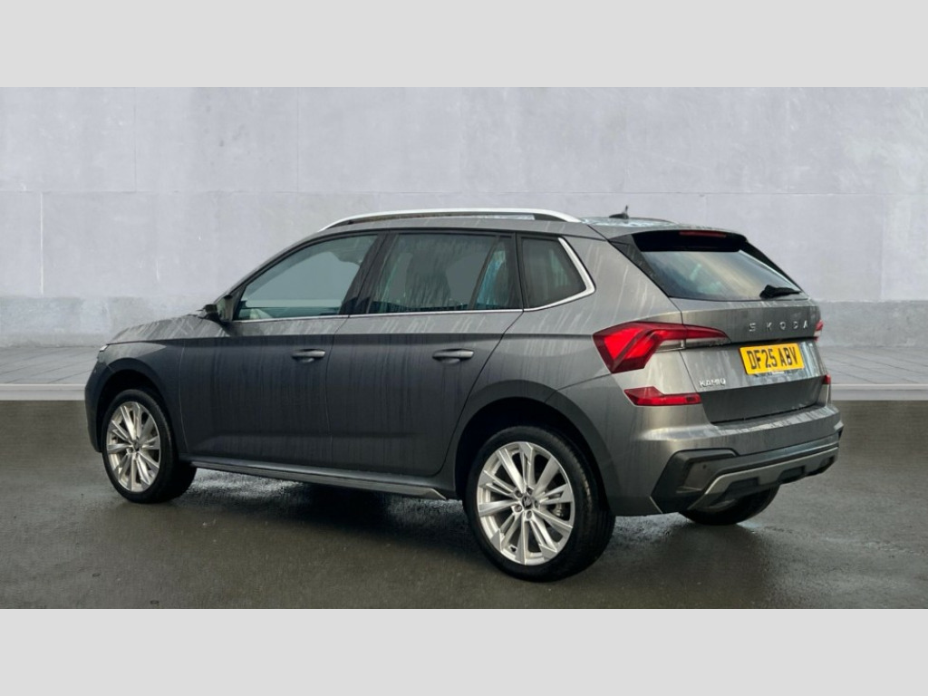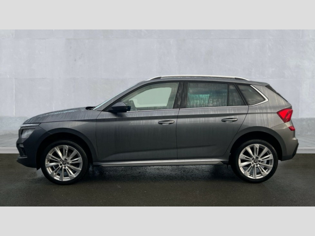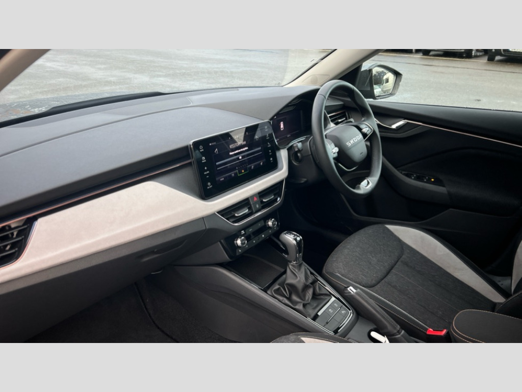 Skoda Kamiq 1.0 TSI SE L Edition 5dr DSG Advanced driver attention and drowsiness monitor, Bluetooth system, E-call, Front assist system, PAS, Rear parking sensors, Rear view camera, Service indicator, Speed limiter, Traffic sign recognition, Virtual cockpit with 10.25" display, Voice control system, Wireless smartlink, 4 USB C ports, 8 Speakers, 9.2" Skoda navigation display, DAB Digital radio, Auto dimming rear view mirror, Automatic headlight control with coming home and leaving home feature, Body colour bumpers, Body colour door mirrors and handles, Chrome grille surround, Chrome roof rails with chrome window surround, Front and rear electric windows, Heated rear window, LED daytime running lights, LED high beam, LED low beam, LED third brake light, Light sensors, Privacy glass, Rear side wing doors, Rear wiper, Ticket holder inside windscreen, 12V socket in luggage compartment, 3 seat bench in 2nd row, Accent black door inserts, Ambient lighting in white/red, Cargo elements, Chrome inner door handles, Copper hotstamping, Driver and passenger sun visors with vanity mirror, Dual zone climate control, Front and rear roof lights, Front centre armrest, Front head restraints, Glove compartment with illumination, Height adjustable driver seat, Height adjustable front passenger seat, Ice scraper, Inner circulation control with pollen filter, ISOFIX on front passenger seat, Isofix preparation for back seats, Leather gearknob and handbrake lever, Lodge cloth upholstery, Manual lumbar support for front seats, Net package and top tether hooks in boot space, Net under rear shelf, Overhead glasses storage compartment, Pocket on the back of both front seats include mobile phone pockets, Rake/reach adjustable steering wheel, Reading lights, Rear centre armrests, Single front passenger seat, Suedia grey decor inserts, Textile floor mats, Third rear headrest, Top tether for front passenger seat, Umbrella in driver's door, Convenience pack - Kamiq, 3x3 point rear seatbelts, Airbags - driver and front passenger, Disc brakes, ESP, Extended and predictive pedestrian/cyclist protection, Front passenger airbag deactivation switch, Front side airbags with curtain airbags, Hill hold control, Manual leather parking brake, Manual rear child locks, One tone horn, Seatbelt reminder for driver an co-driver, Traction control, Tyre pressure monitor, Anti-theft alarm system with interior monitoring, backup horn, towing protection and remote central locking with SAFE system, Anti-theft wheel bolts, Electronic engine immobilizer