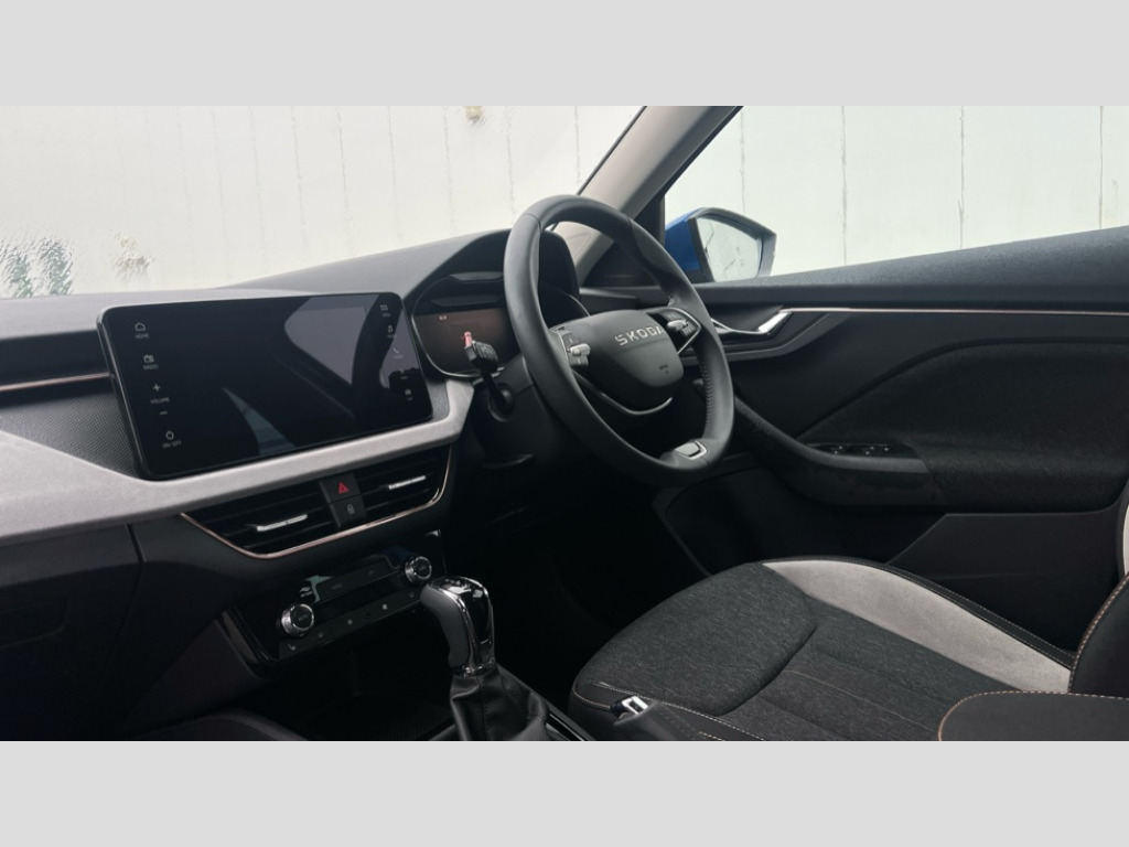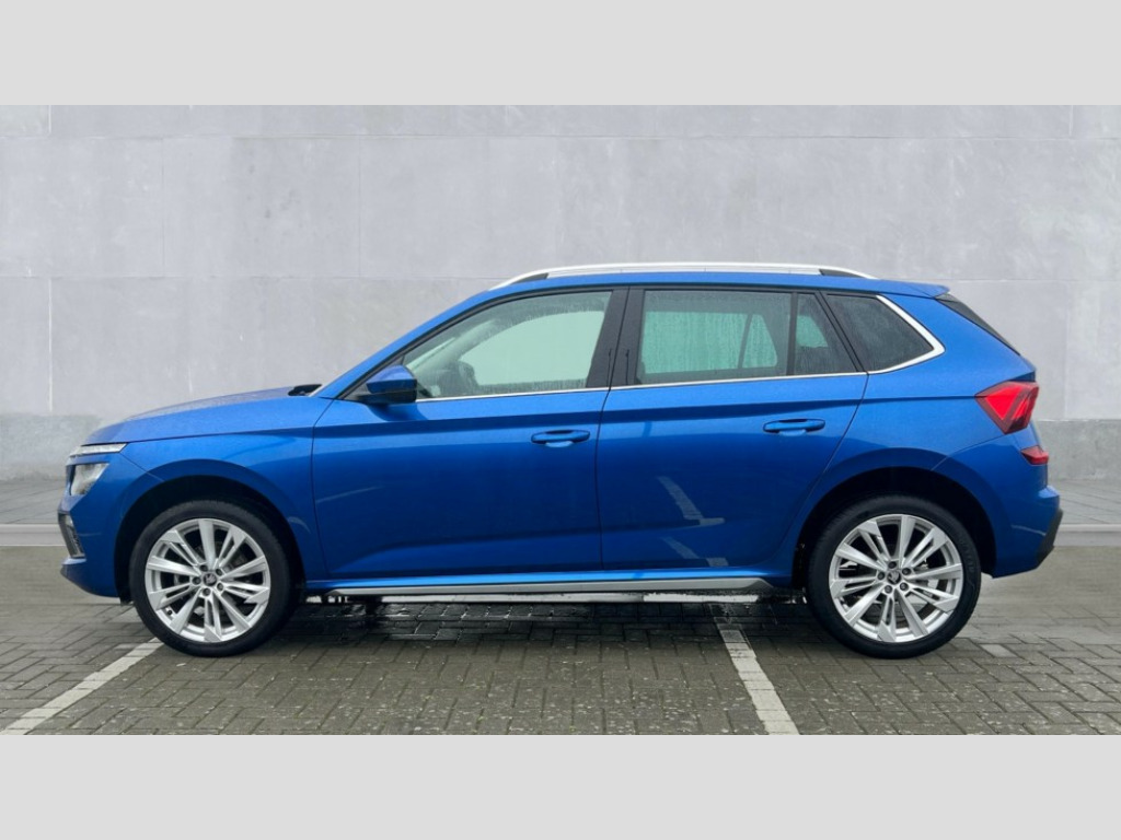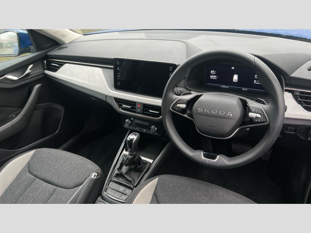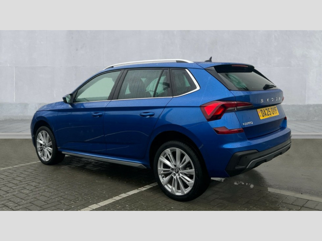 Skoda Kamiq 1.0 TSI SE L Edition 5dr DSG Advanced driver attention and drowsiness monitor, Bluetooth system, E-call, Front assist system, PAS, Rear parking sensors, Rear view camera, Service indicator, Speed limiter, Traffic sign recognition, Virtual cockpit with 10.25" display, Voice control system, Wireless smartlink, 4 USB C ports, 8 Speakers, 9.2" Skoda navigation display, DAB Digital radio, Auto dimming rear view mirror, Automatic headlight control with coming home and leaving home feature, Body colour bumpers, Body colour door mirrors and handles, Chrome grille surround, Chrome roof rails with chrome window surround, Front and rear electric windows, Heated rear window, LED daytime running lights, LED high beam, LED low beam, LED third brake light, Light sensors, Privacy glass, Rear side wing doors, Rear wiper, Ticket holder inside windscreen, 12V socket in luggage compartment, 3 seat bench in 2nd row, Accent black door inserts, Ambient lighting in white/red, Cargo elements, Chrome inner door handles, Copper hotstamping, Driver and passenger sun visors with vanity mirror, Dual zone climate control, Front and rear roof lights, Front centre armrest, Front head restraints, Glove compartment with illumination, Height adjustable driver seat, Height adjustable front passenger seat, Ice scraper, Inner circulation control with pollen filter, ISOFIX on front passenger seat, Isofix preparation for back seats, Leather gearknob and handbrake lever, Lodge cloth upholstery, Manual lumbar support for front seats, Net package and top tether hooks in boot space, Net under rear shelf, Overhead glasses storage compartment, Pocket on the back of both front seats include mobile phone pockets, Rake/reach adjustable steering wheel, Reading lights, Rear centre armrests, Single front passenger seat, Suedia grey decor inserts, Textile floor mats, Third rear headrest, Top tether for front passenger seat, Umbrella in driver's door, Convenience pack - Kamiq, 3x3 point rear seatbelts, Airbags - driver and front passenger, Disc brakes, ESP, Extended and predictive pedestrian/cyclist protection, Front passenger airbag deactivation switch, Front side airbags with curtain airbags, Hill hold control, Manual leather parking brake, Manual rear child locks, One tone horn, Seatbelt reminder for driver an co-driver, Traction control, Tyre pressure monitor, Anti-theft alarm system with interior monitoring, backup horn, towing protection and remote central locking with SAFE system, Anti-theft wheel bolts, Electronic engine immobilizer